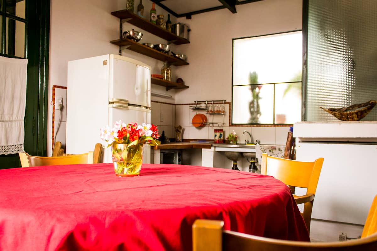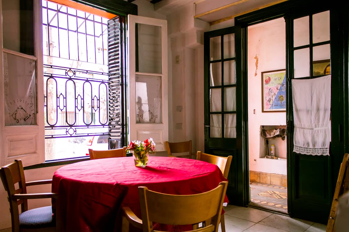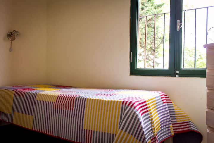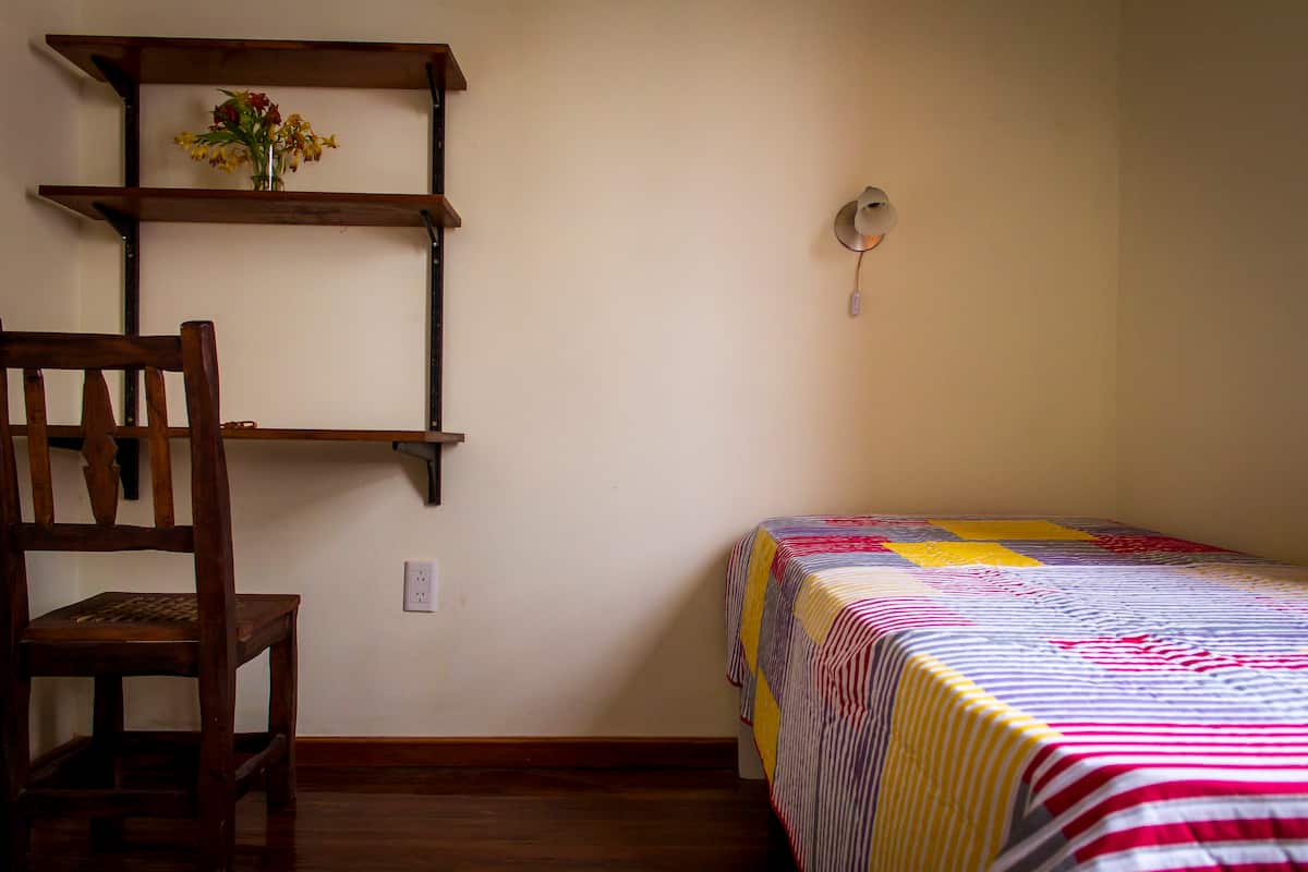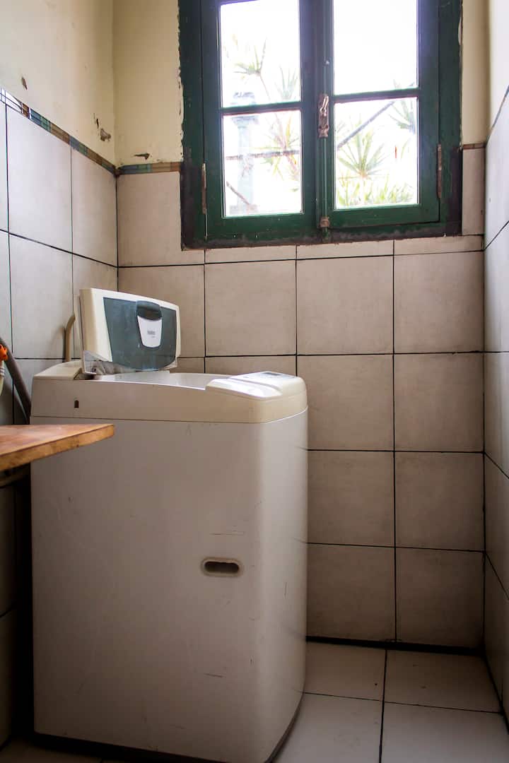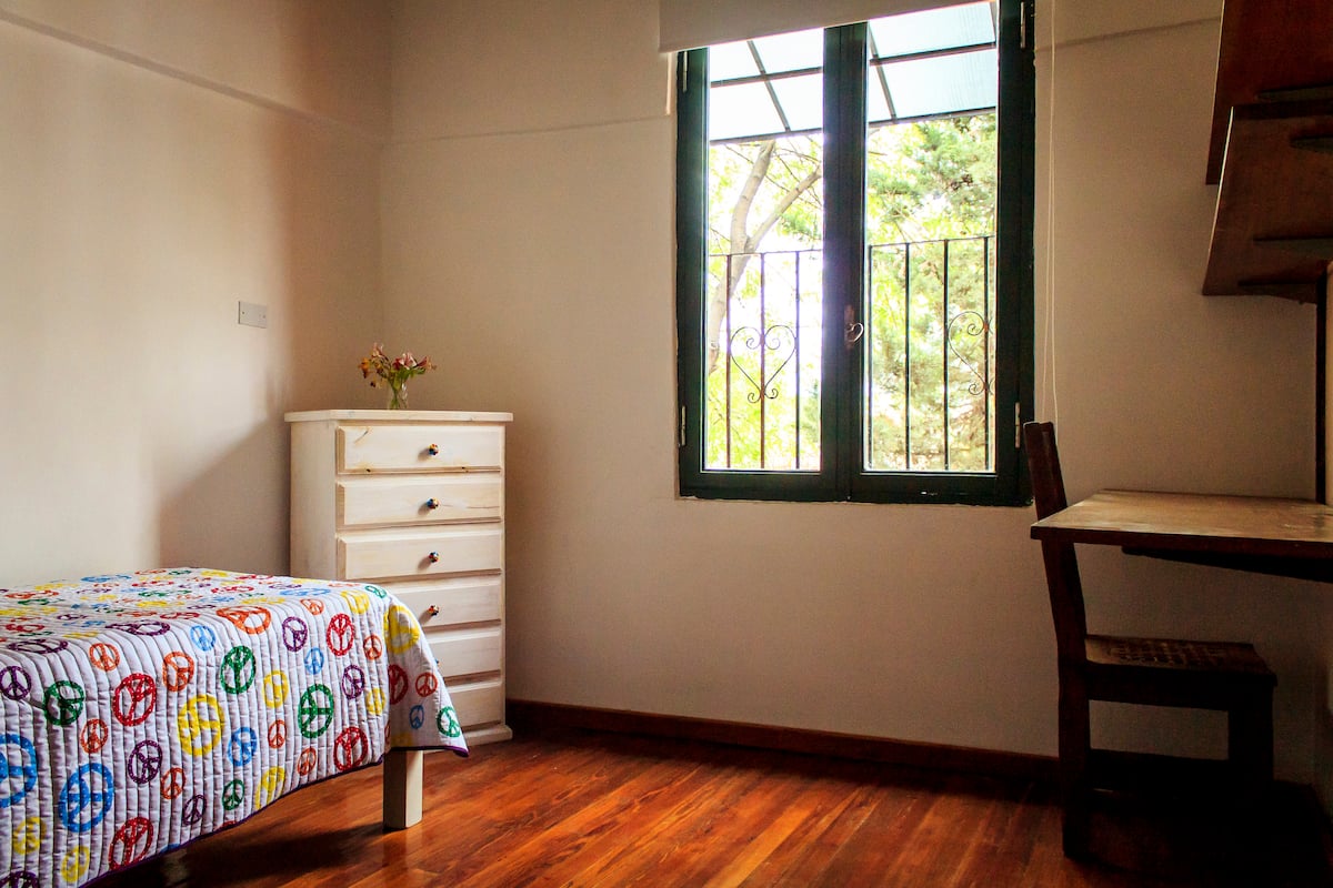 Habitación con baño privado en una casa grande en Villa del Parque. Tiene cama y escritorio, y cuenta con sábanas, mantas y toallas. La publicación corresponde a 1 habitación; la cocina, el living, el comedor y el lavadero son compartidos, y hay acceso a un rooftop. Incluye WiFi, calefactores eléctricos y agua caliente.