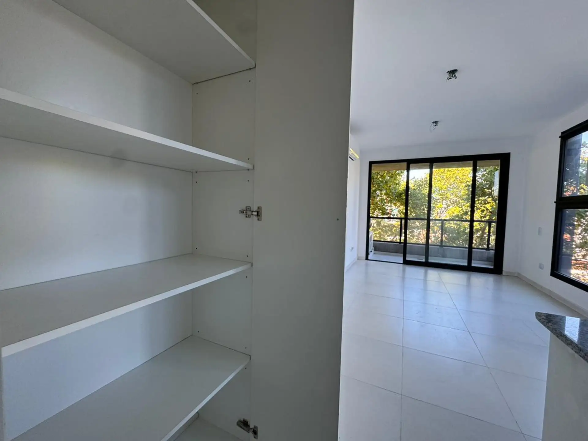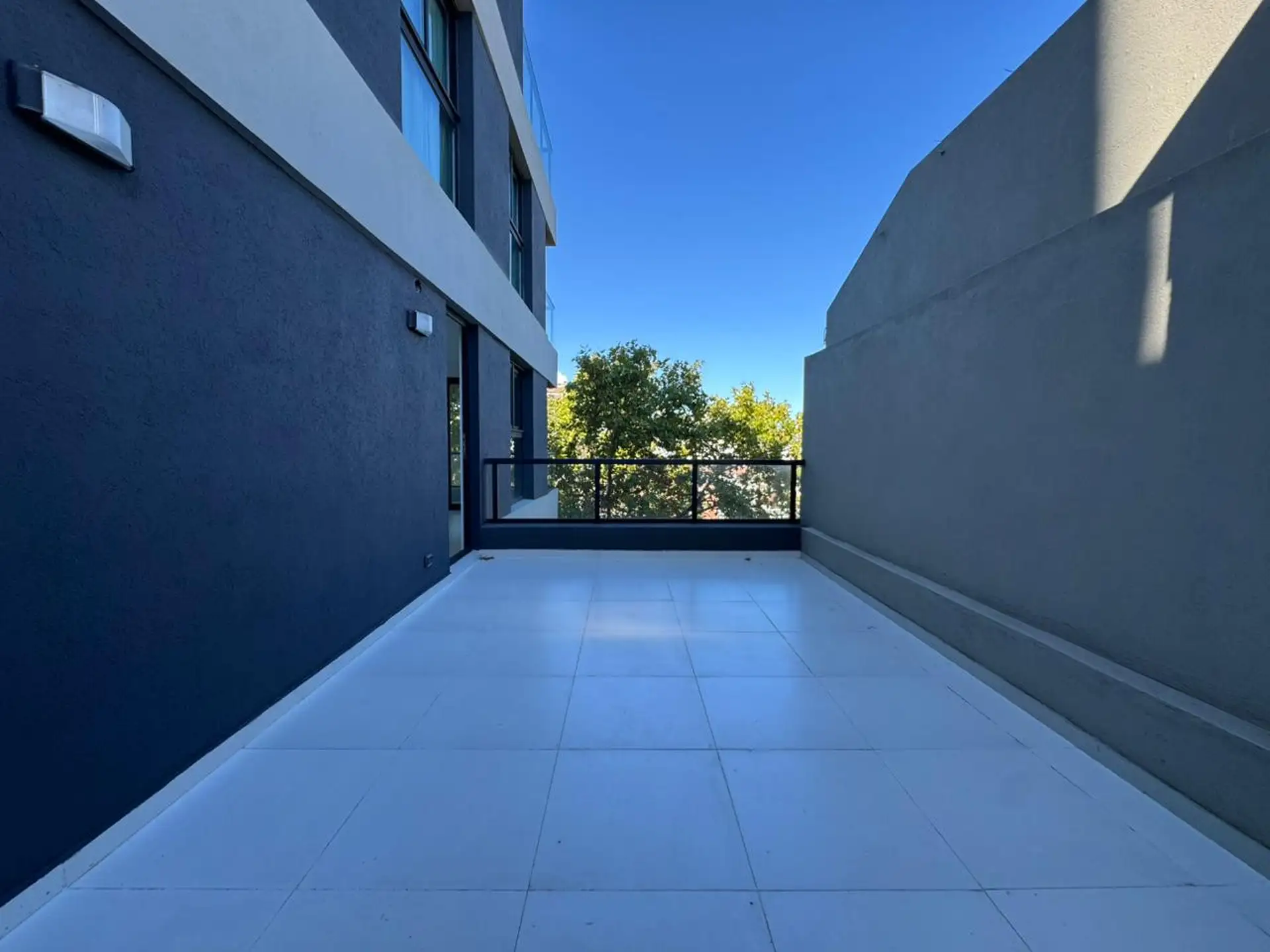 Departamento monoambiente en Villa del Parque. Cuenta con 25 m² cubiertos, 3,52 m² semicubiertos y 19,27 m² descubiertos, con terraza al lateral y balcón corrido al frente. El ambiente tiene vista al frente, cocina integrada con muebles bajo mesada y baño completo. La superficie definitiva queda sujeta a planos de mensura.