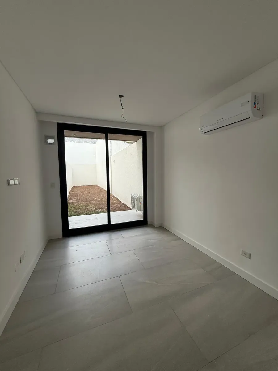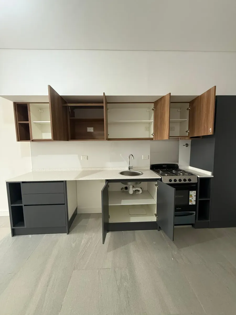 Departamento de 2 ambientes en planta baja, a estrenar, con jardín propio de 40 m² en Villa del Parque. El living comedor tiene salida directa al jardín. Cocina integrada con horno a gas, dormitorio con placard completo, baño completo y termotanque eléctrico. Cuenta con aire acondicionado en living y dormitorio. Ubicado a 4 cuadras de la estación de tren y del centro comercial de Cuenca.