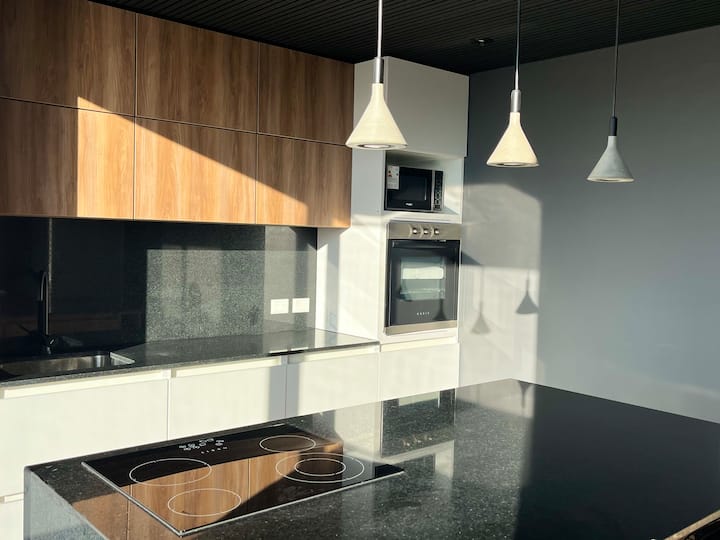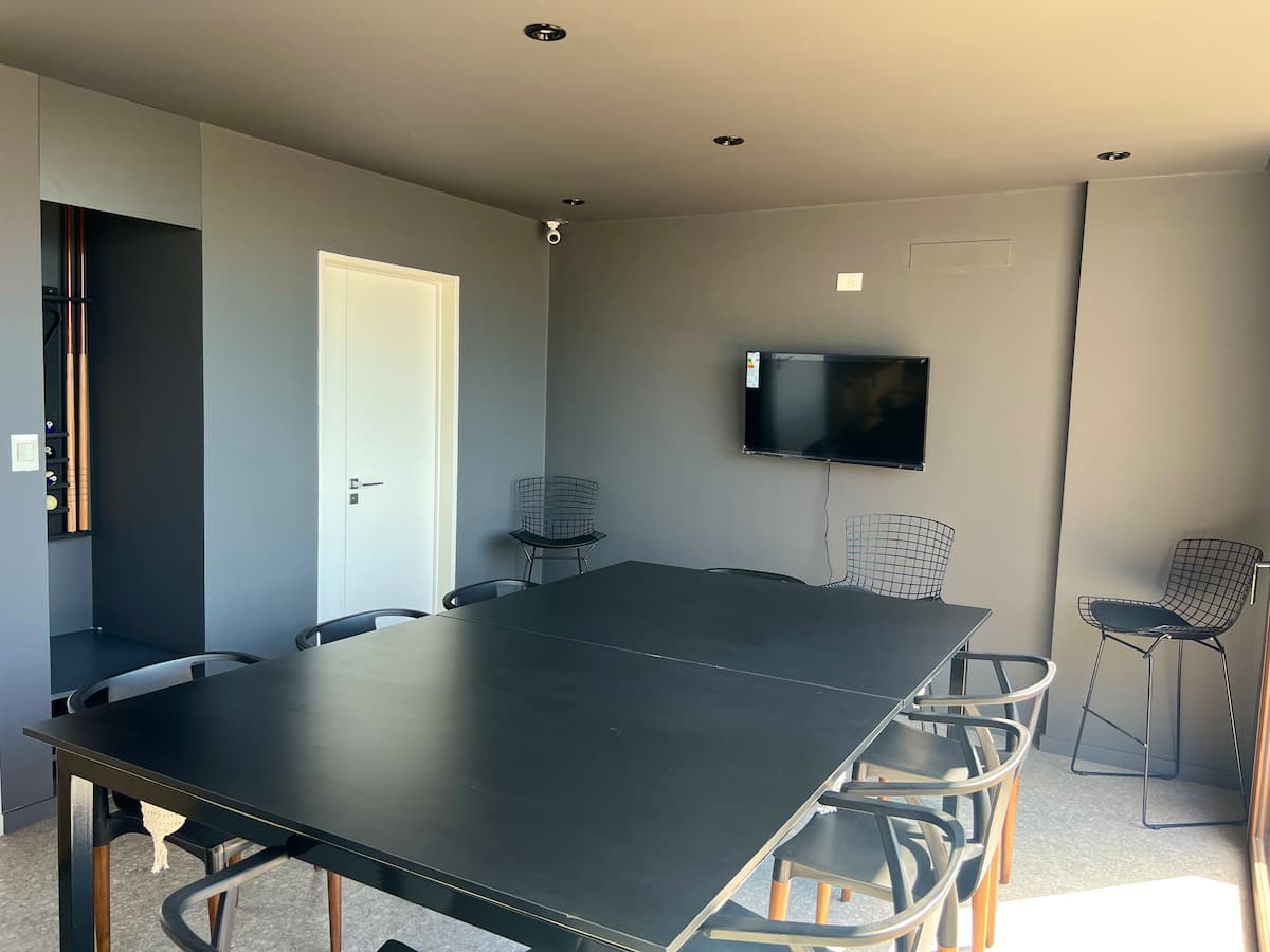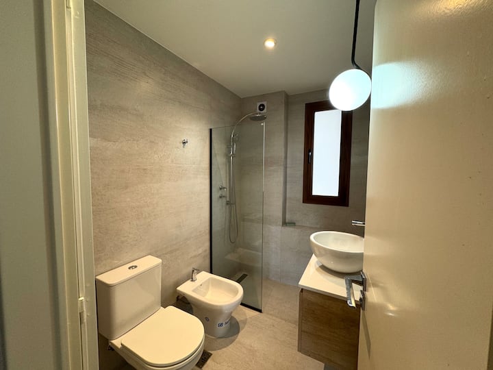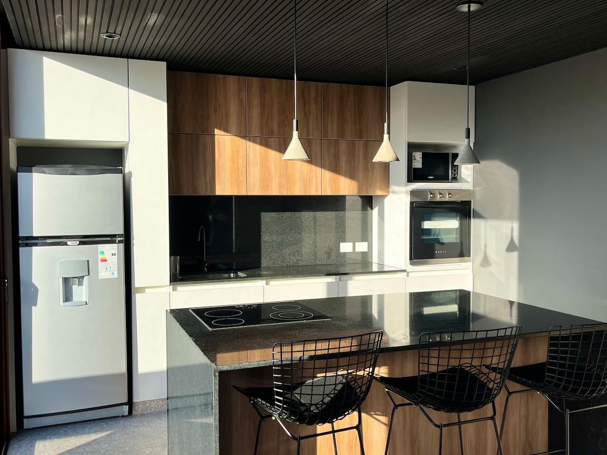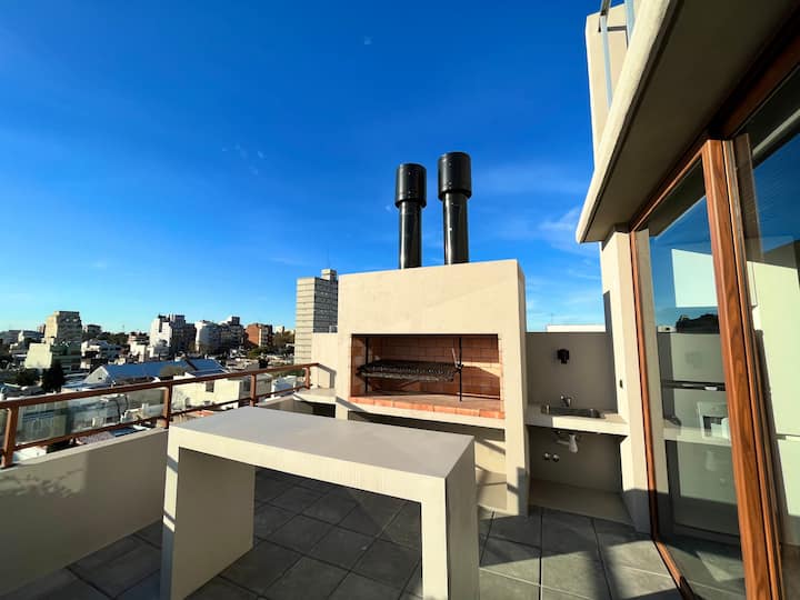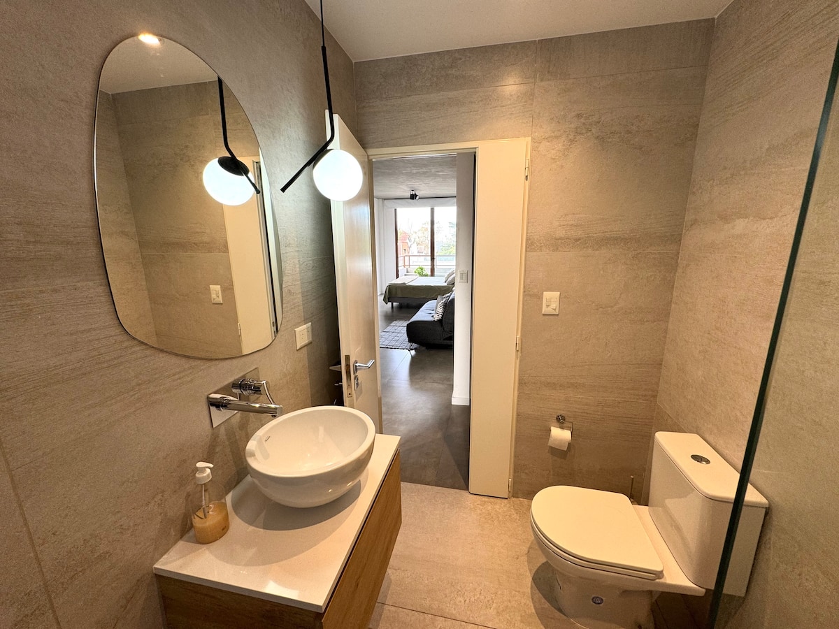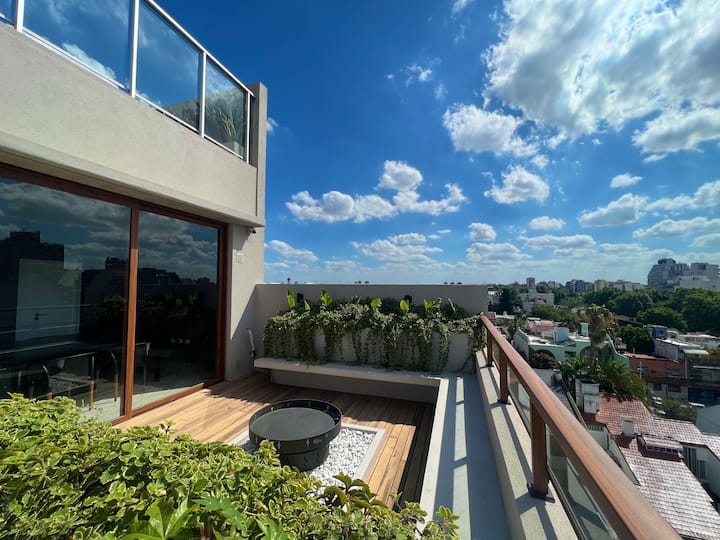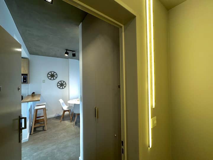 Departamento monoambiente de edificio nuevo en Villa Devoto, con balcón y vista abierta. Cocina equipada con barra desayunadora, horno, heladera y pava eléctrica. Cuenta con cama queen (160x200 cm), sofá cama, TV Smart de 42”, WiFi, aire acondicionado frío/calor y placard. El edificio dispone de laundry, pileta y SUM; el SUM solo se ofrece para estancias de 2 semanas o más, con costo por turno de USD 50 y con reserva previa.