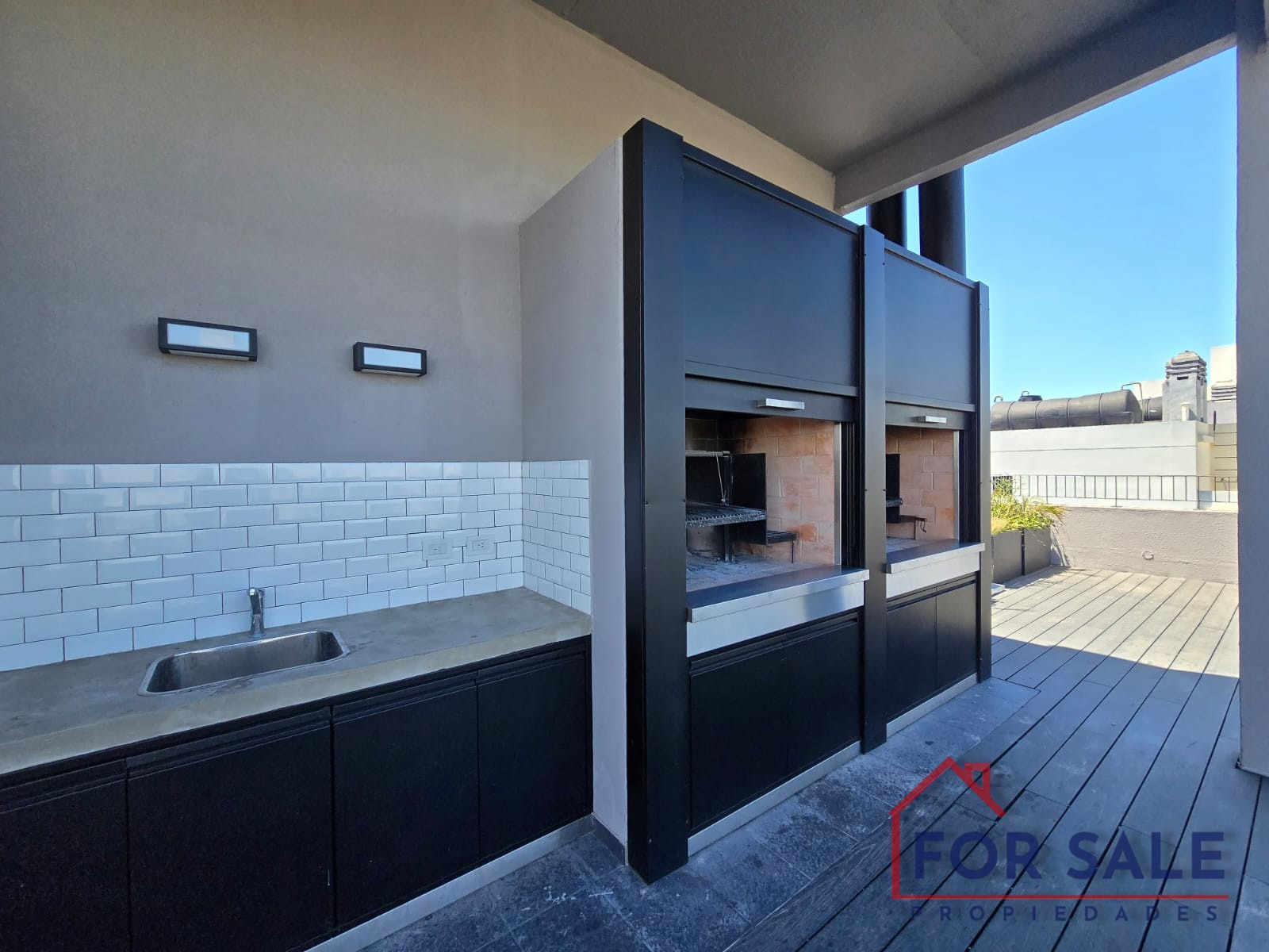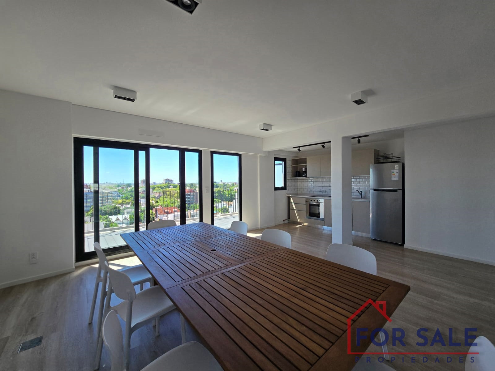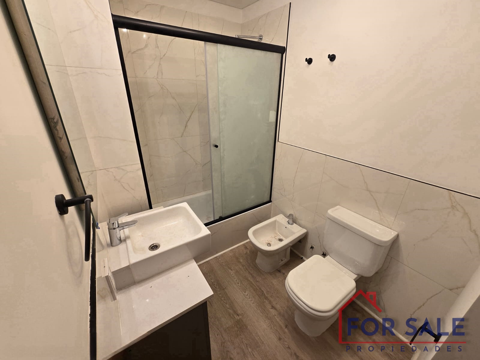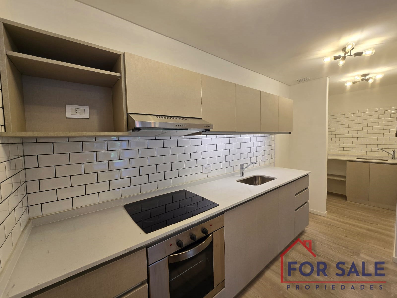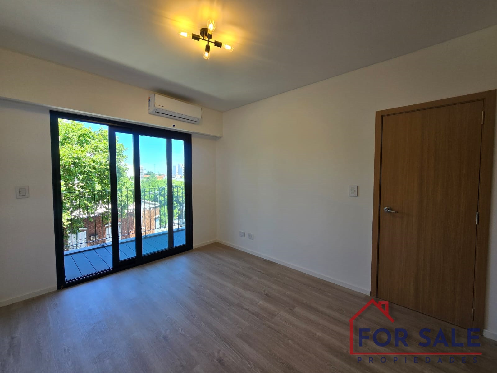 Departamento de 1 dormitorio en Villa Devoto, a estrenar, con 70 m² totales. Ingresa por un hall con toilette de recepción; cocina con muebles completos, barra desayunadora con almacenamiento, anafe eléctrico vitrificado, horno eléctrico empotrado, extractor y lavadero con pileta. El living comedor integra la cocina y cuenta con salida a balcón al frente, con vista abierta hacia Av. Francisco Beiró. El dormitorio en suite da al frente, tiene placard completo, salida al balcón y baño con bañera y