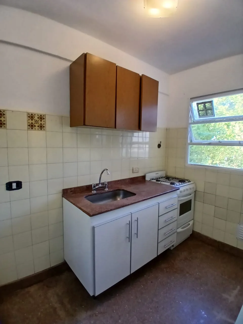 Departamento de 2 ambientes con 1 dormitorio y 3° piso lateral. Living-comedor de 4,50 x 3, dormitorio con placar de 3 x 3, baño completo con inodoro, bidet y lavabandería, y cocina con alacenas y bajo mesada de 3 x 1,60 con espacio para heladera. Balcón con lavadero incorporado y pisos de cerámica nuevos en living-comedor y dormitorio; paredes y techos pintados de blanco. Expensas: $90.000 actuales. Contrato por 2 años según DNU 70/2023 (vigente desde el 29/12/2023). Alquiler 1° trimestre: $600