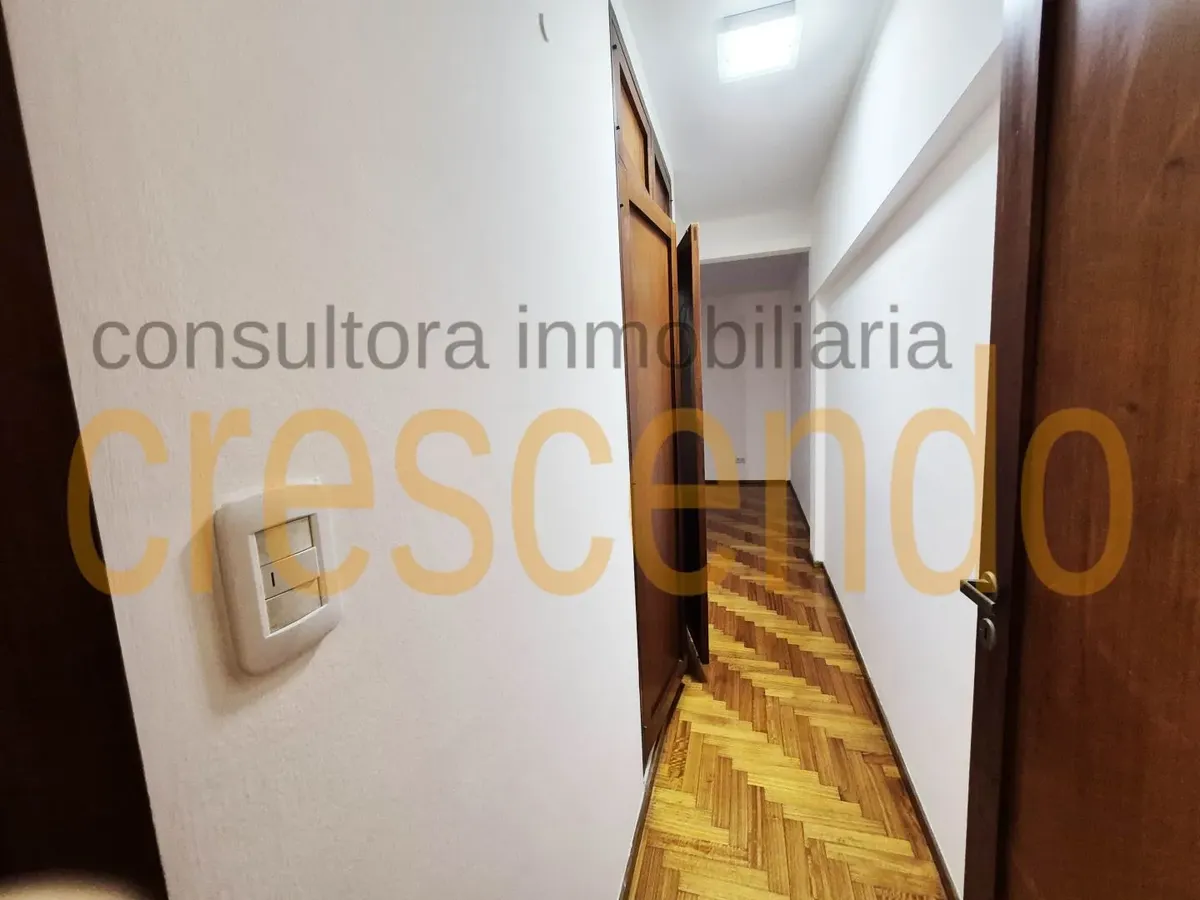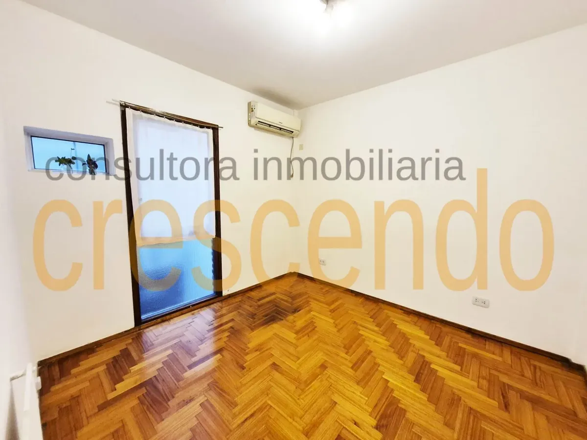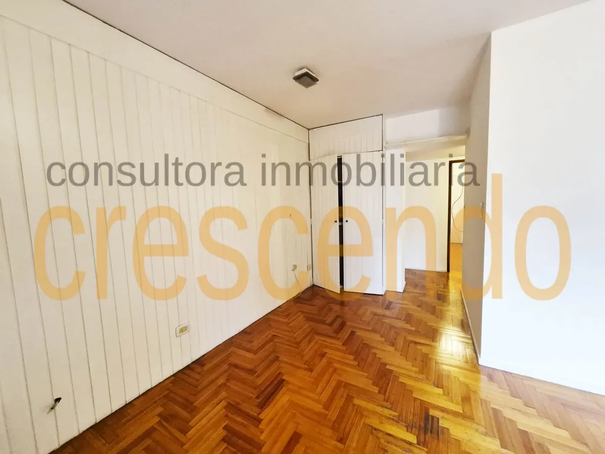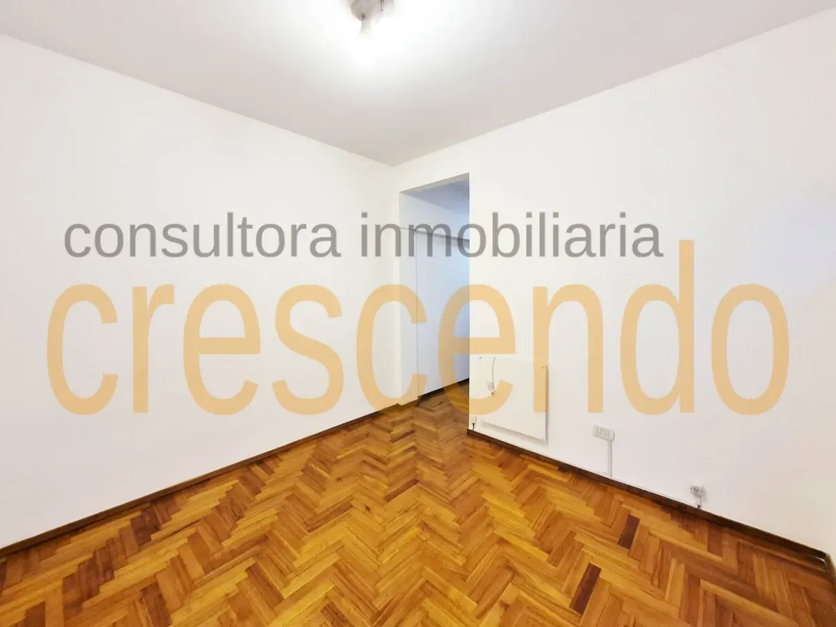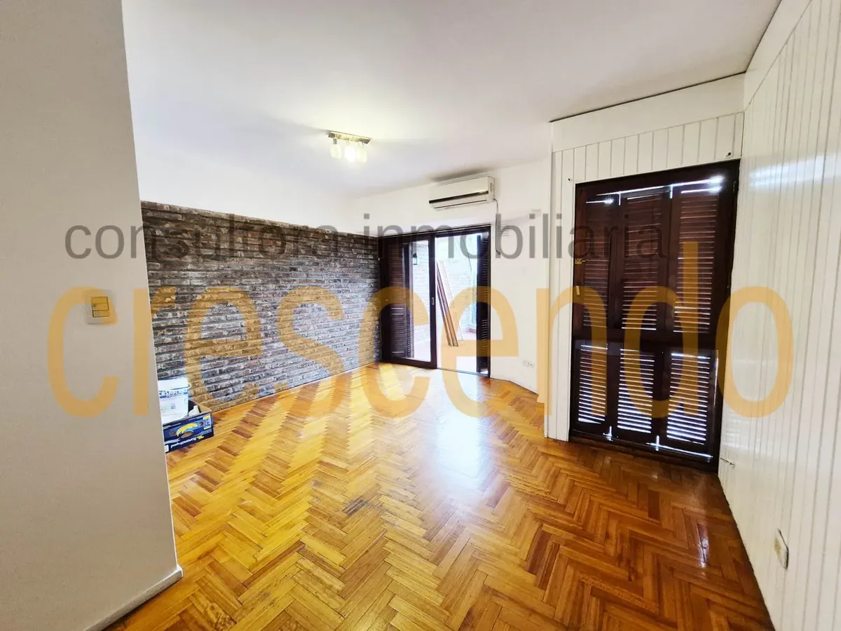 Departamento de 2 ambientes semipiso, al frente, con balcón terraza. Cuenta con living comedor con split frío-calor y placard, cocina independiente y dormitorio con split frío-calor, cambiador y placard integrado. Pisos de parquet plastificados, carpintería de madera lustrada; se entrega recién pintado. Expensas $120.000; no se admiten mascotas, con excepciones.