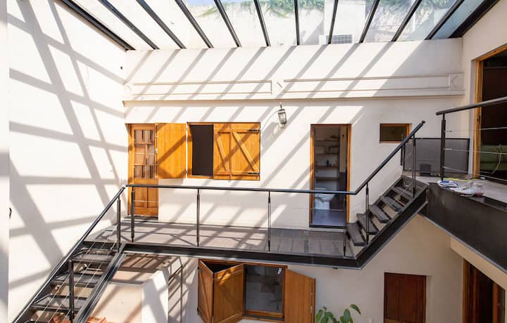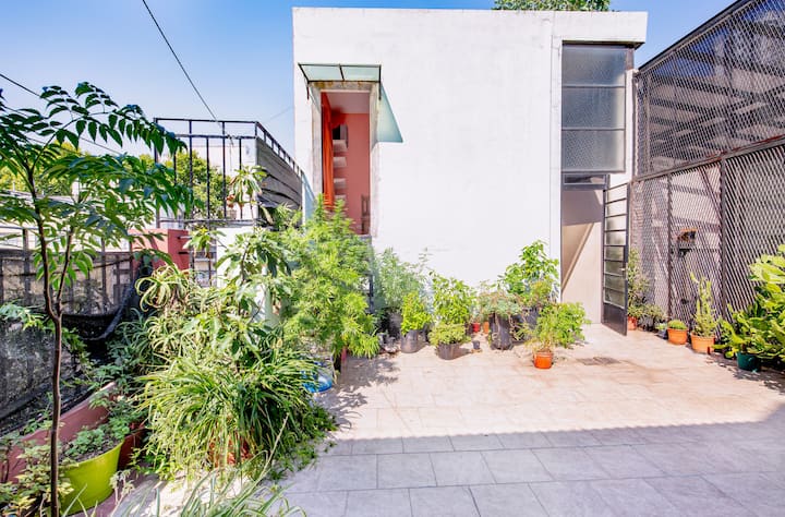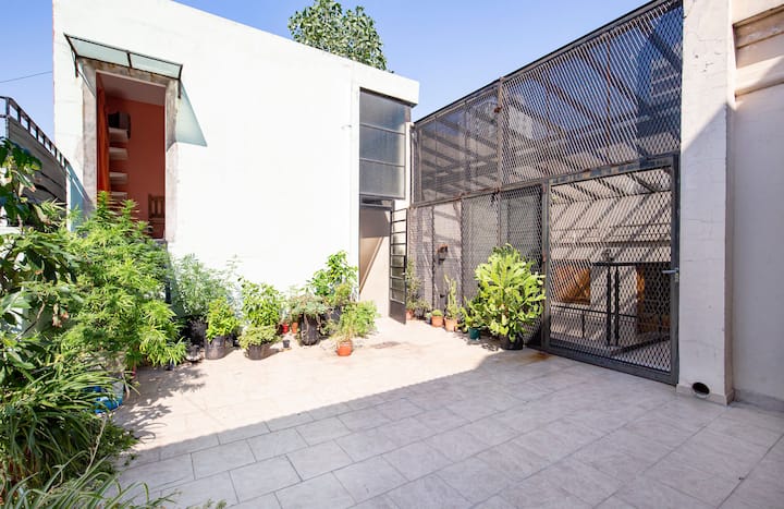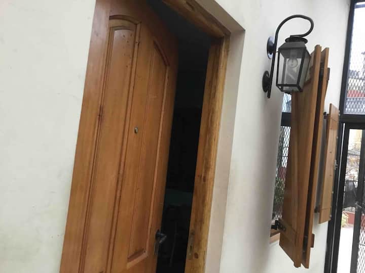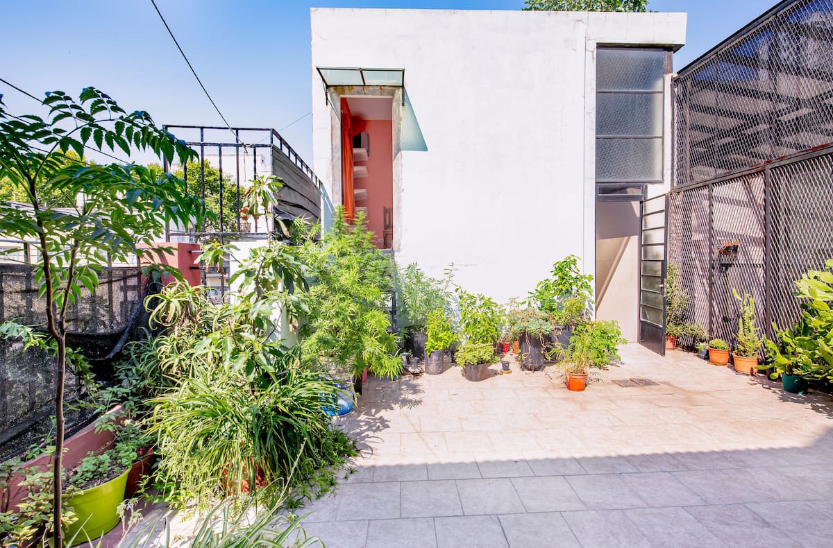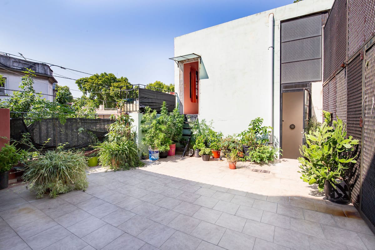 Departamento de 1 dormitorio en Villa General Mitre. El inmueble tiene terraza con plantas. Se describe como muy luminoso. Se menciona disponibilidad por teléfono y en persona durante la estadía.