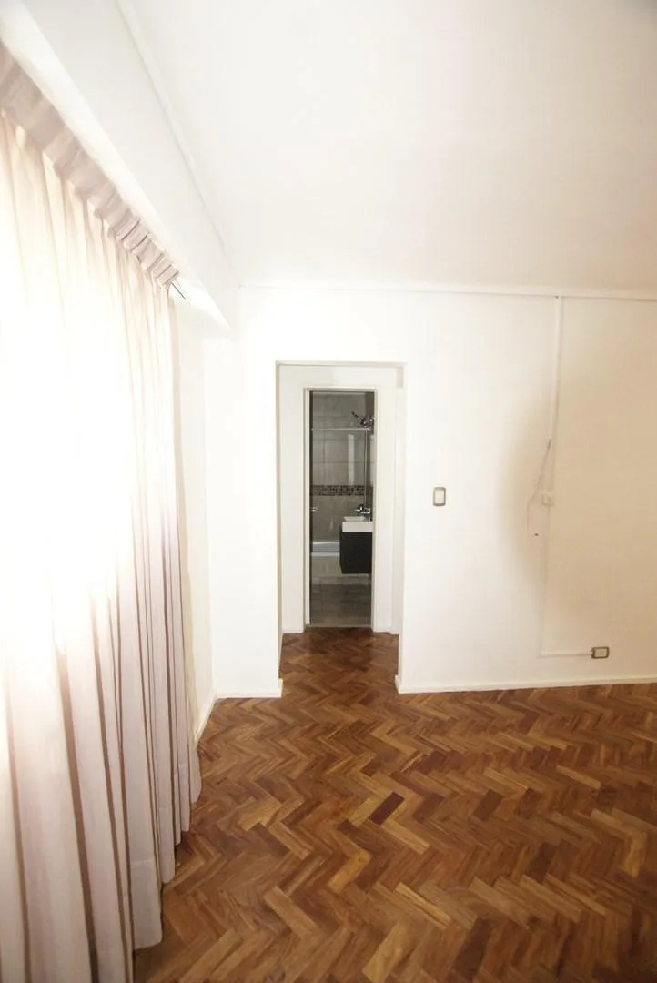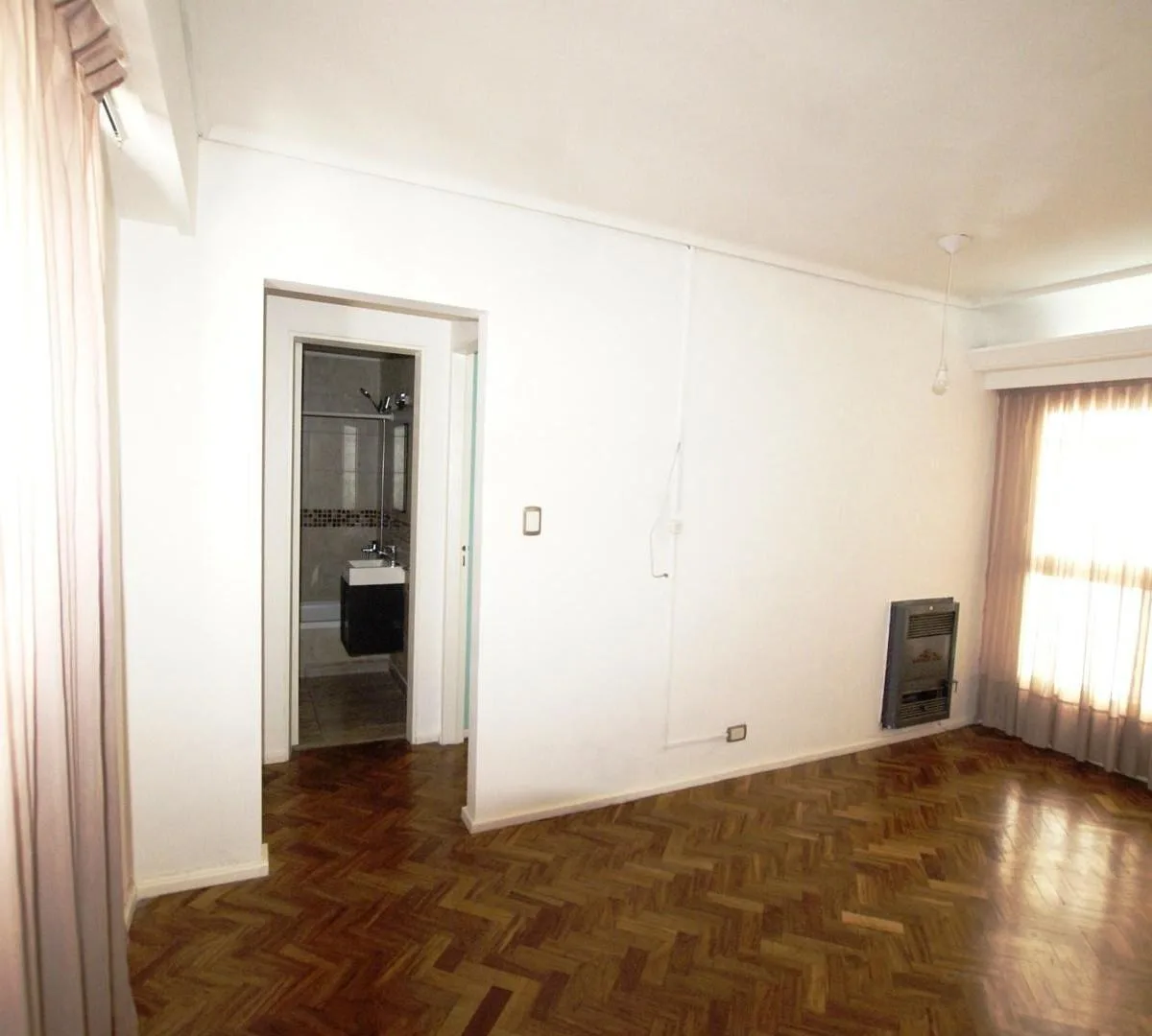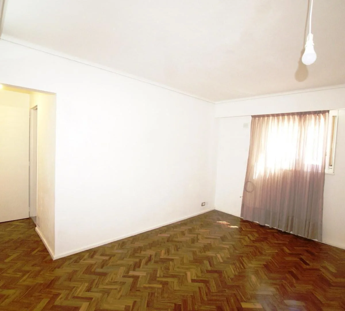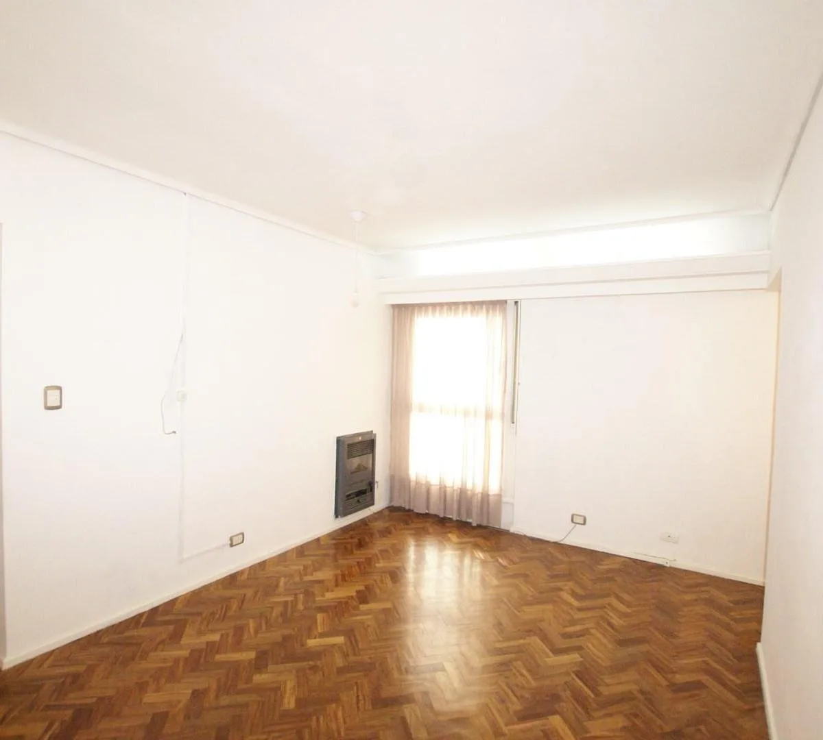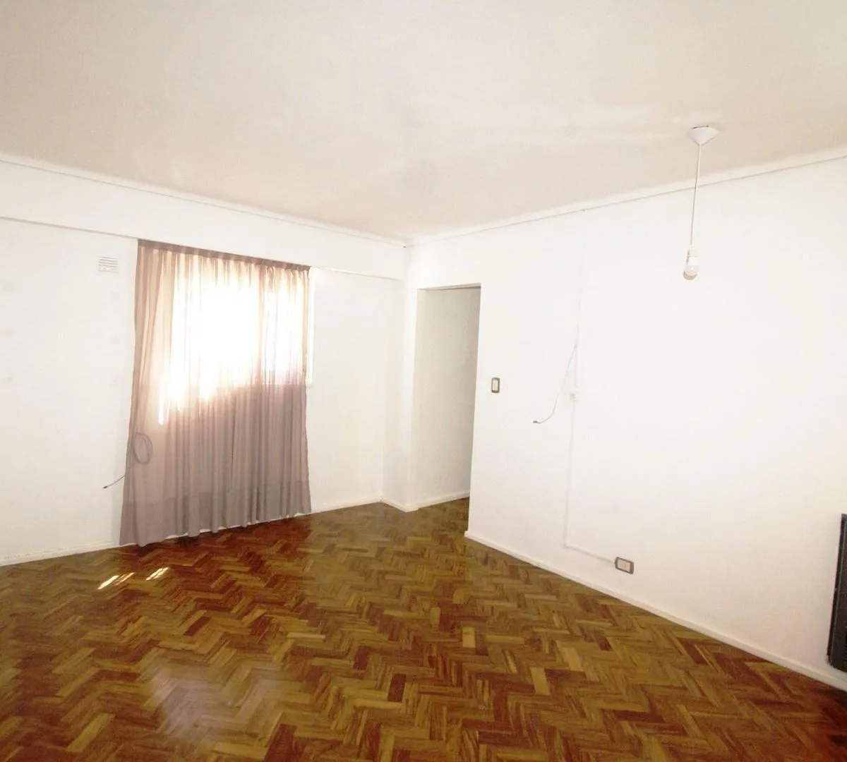 Departamento de 2 ambientes en alquiler a 1 cuadra de Plaza Irlanda, con hall de entrada. Living comedor de 4,85 x 3,36 m con pisos de parquet y 2 ventanas de aluminio enfrentadas, una al patio interno y otra en la medianera; cocina con muebles sobre y bajo mesada y espacio para lavarropas; baño completo con ventilación natural. Dormitorio de 2,70 x 3 m con placard, también con pisos de parquet. Aysa incluido en expensas. Requisitos: seguro de alquiler a confirmar, demostración de ingresos y dep