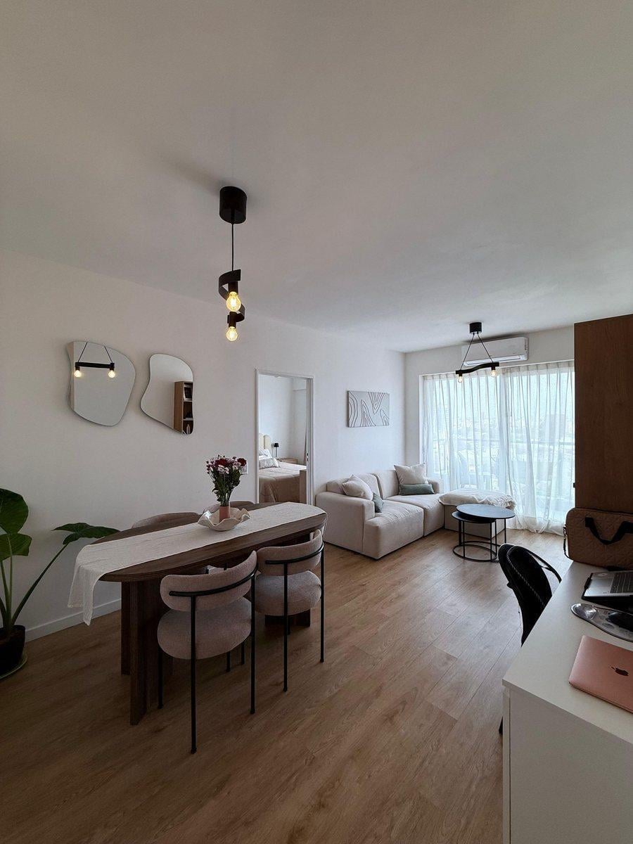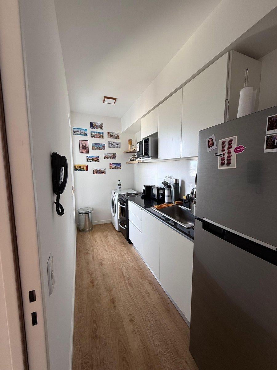Departamento de 2 ambientes de 53 m² en piso 12, con balcón y vista abierta. En edificio construido en 2015, con 48 m² cubiertos y 5 m² semicubiertos. Se entrega semi amoblado: heladera Samsung, lavarropas, artefactos de iluminación, cómoda con espejo en el dormitorio y rack en el living. Cuenta con cocina independiente, baño completo y toilette; torre con piscina y solarium, sector parrillas, gimnasio, sauna, SUM con vista panorámica y seguridad 24 horas.