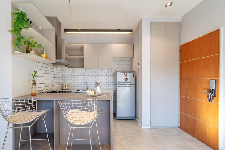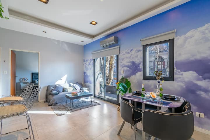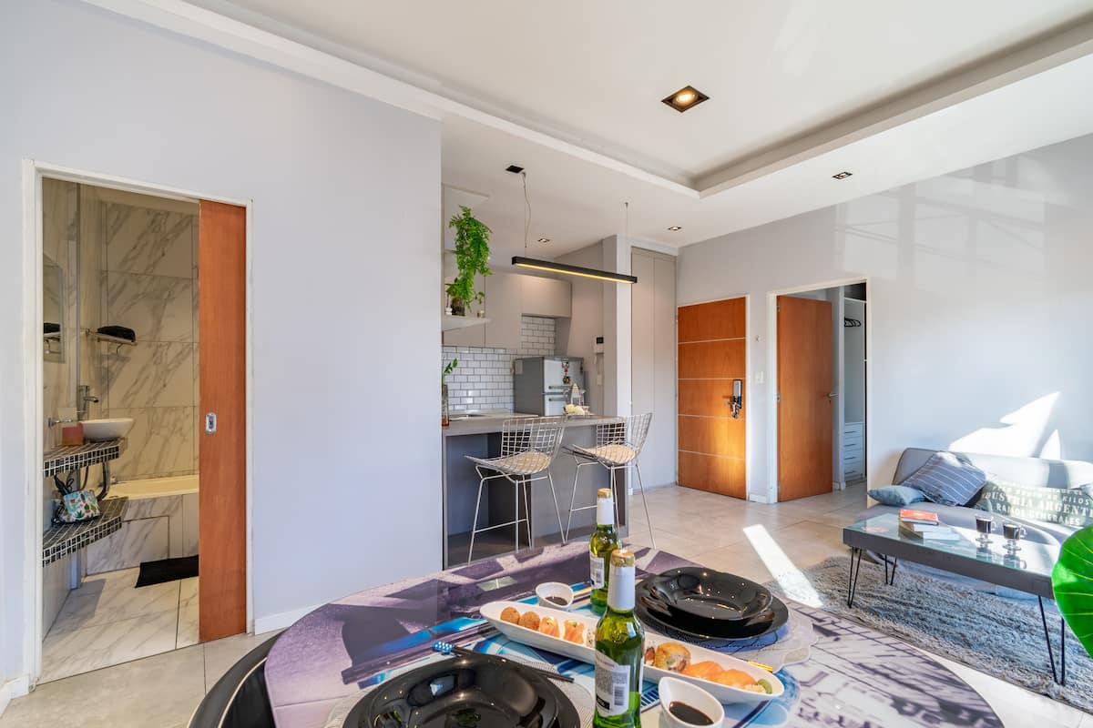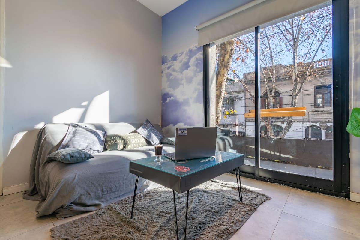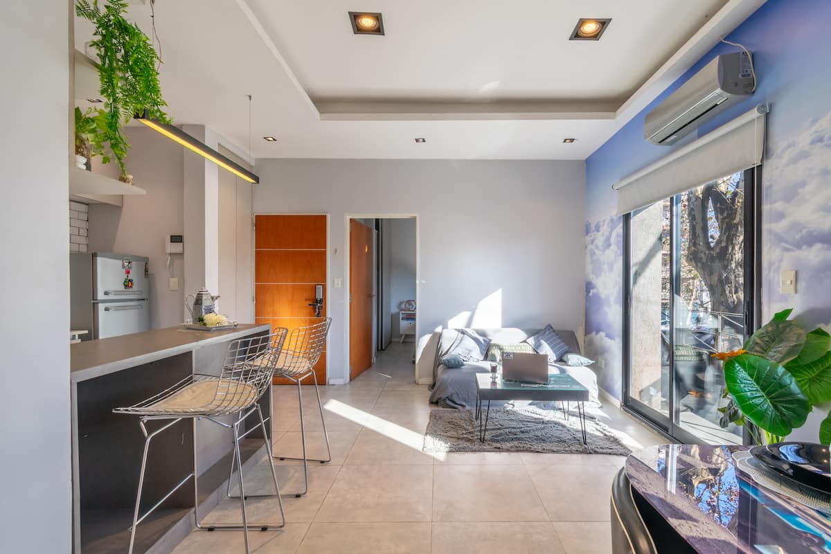 PH con cocina equipada y living. 1 dormitorio con acceso al balcón. Baño con jacuzzi. El aviso menciona buena ventilación y conexión a WiFi.