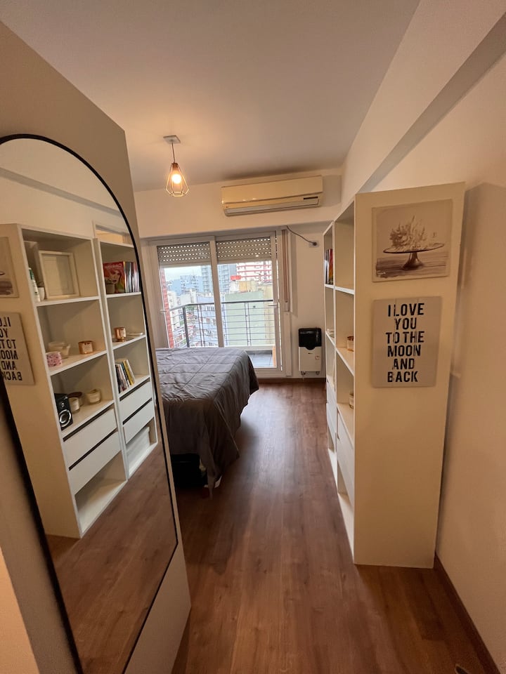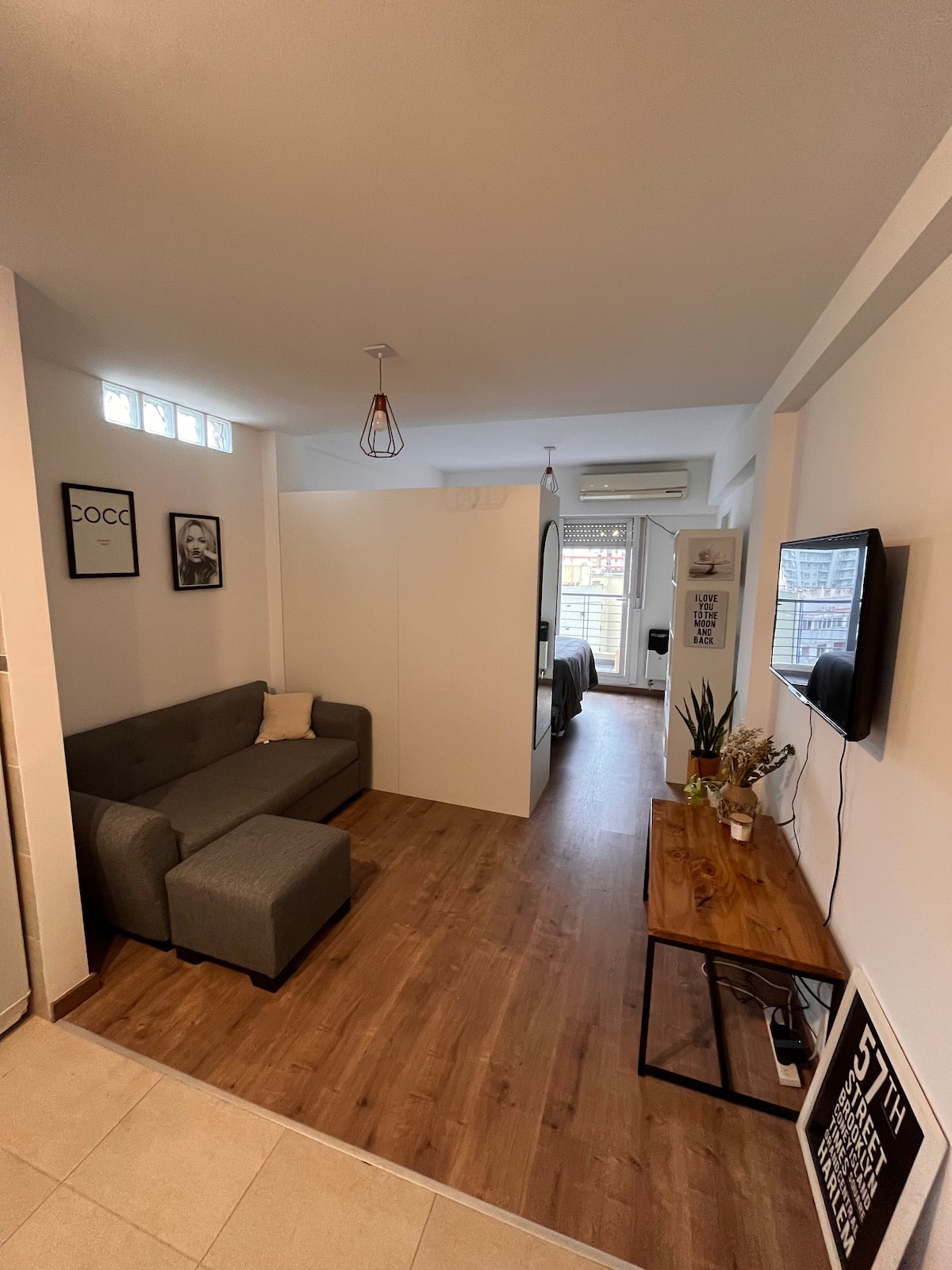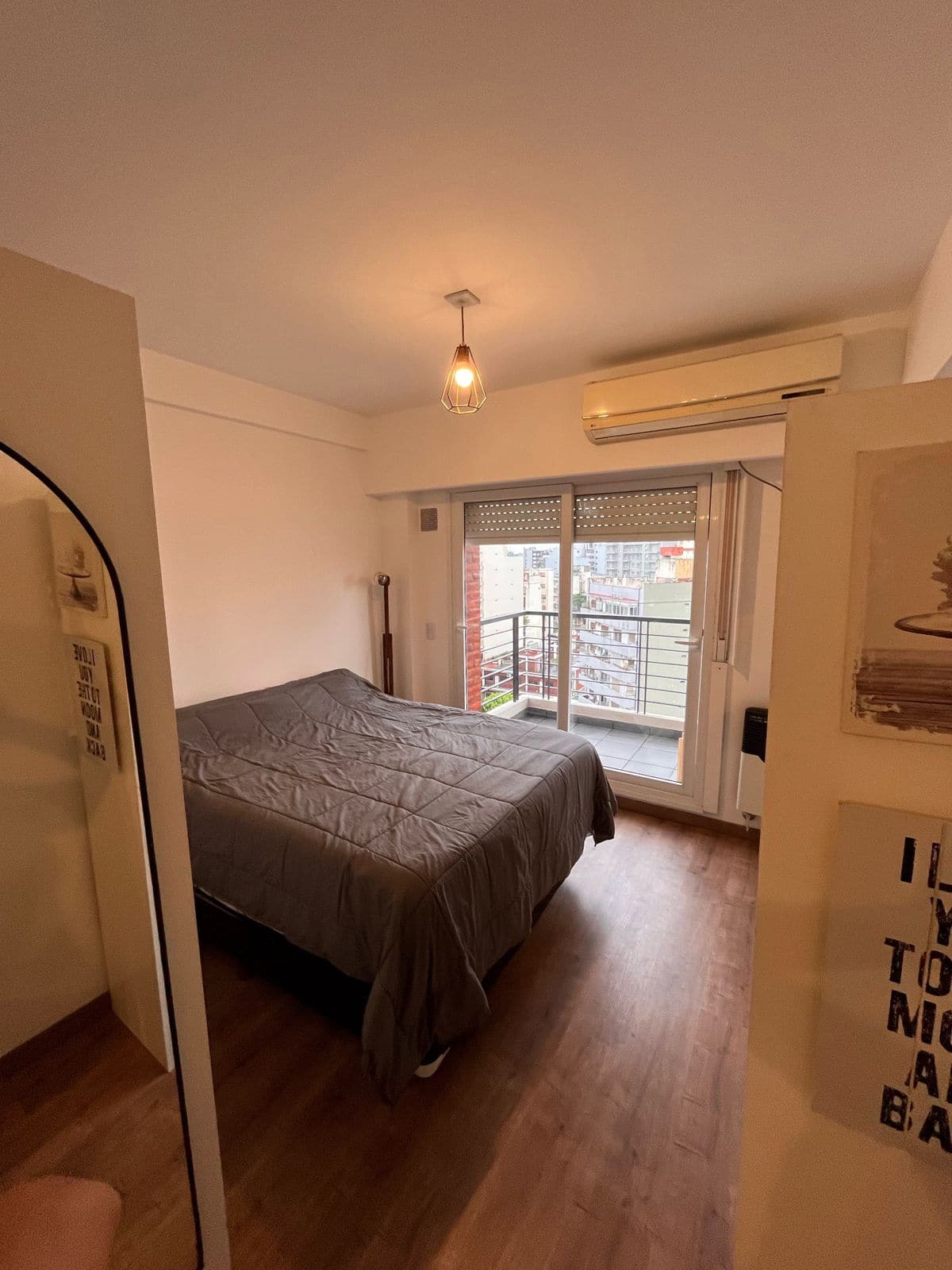 Departamento tipo estudio con 1 dormitorio, 1 baño y balcón con vista a 2 avenidas. Cuenta con cocina amplia. Está ubicado en la zona de Juan B. Justo y San Martín, con acceso a transporte y con personal de portería.
