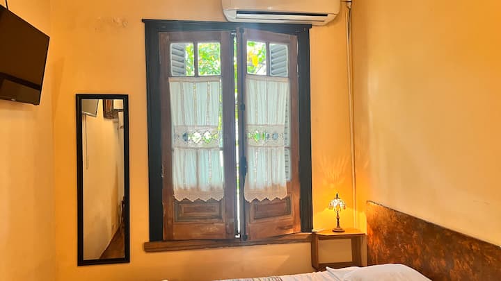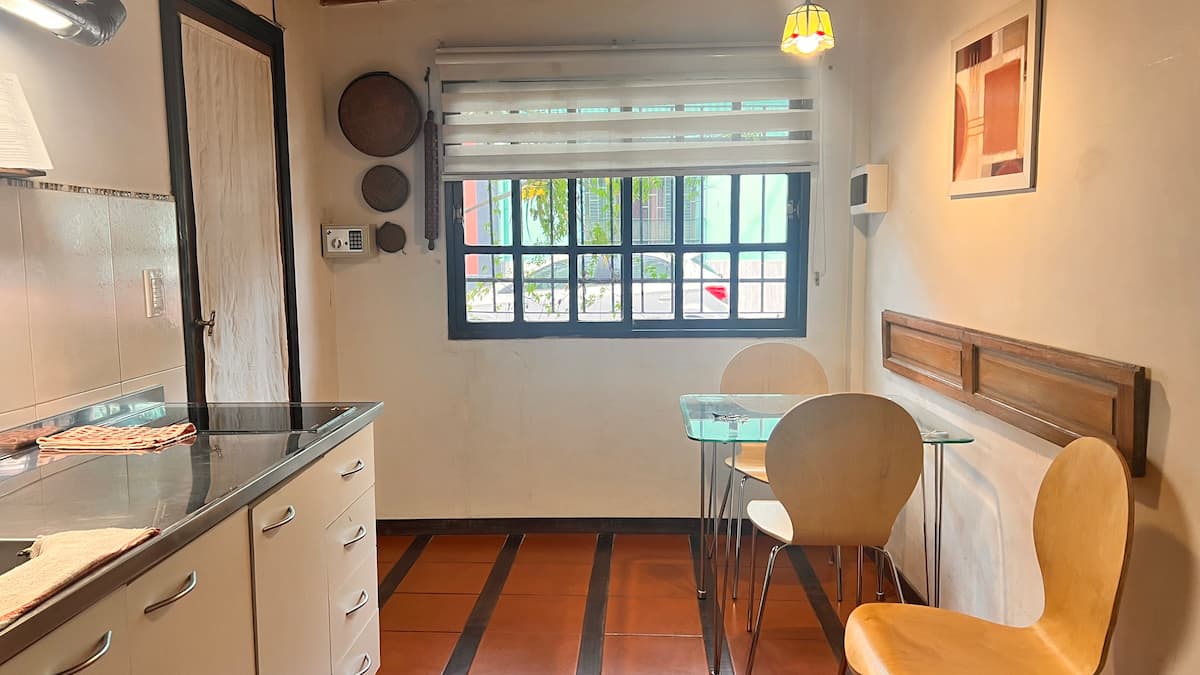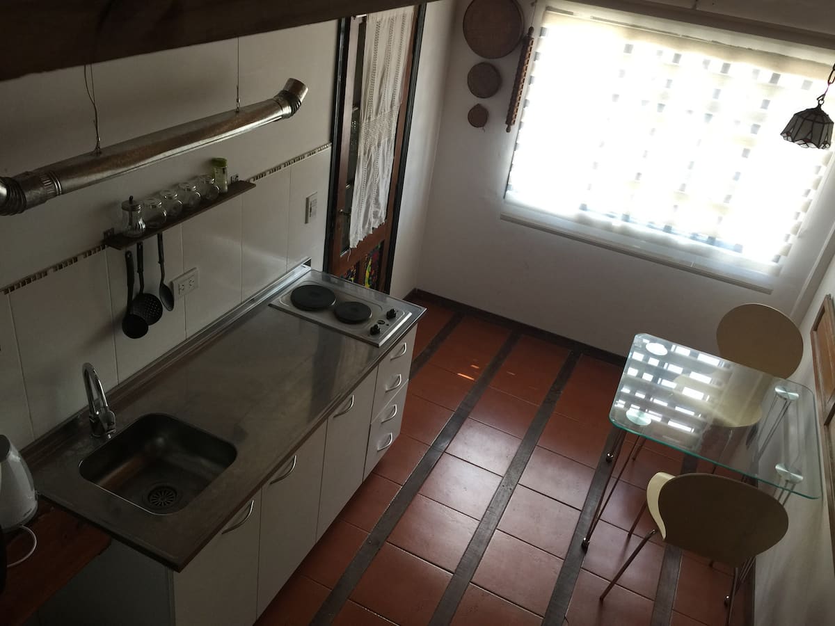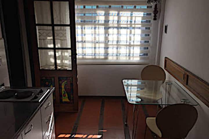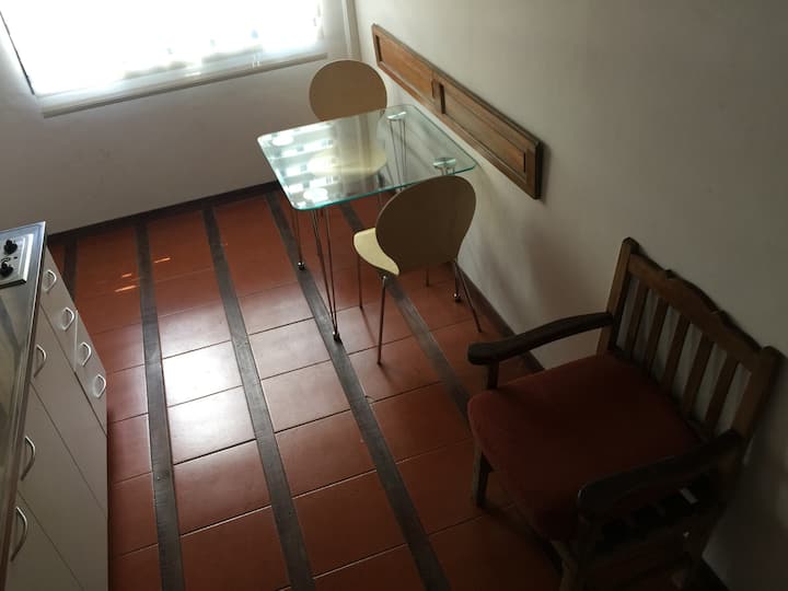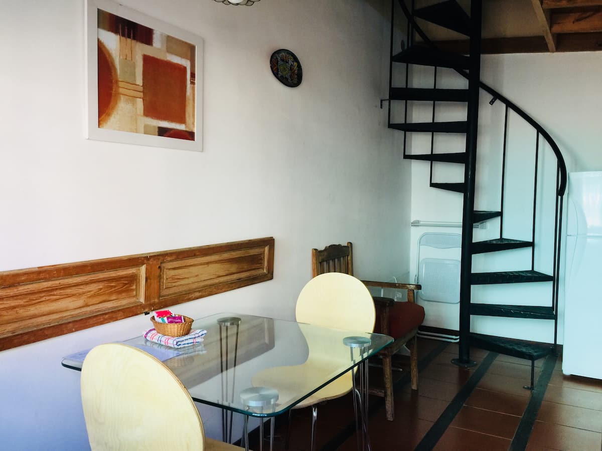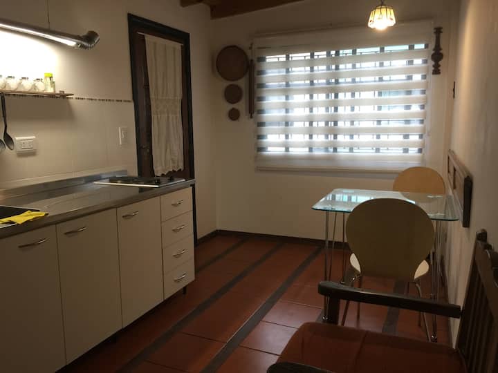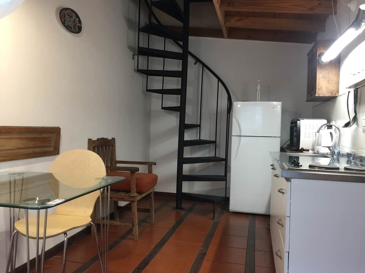 Departamento tipo dúplex en una casa baja sobre un pasaje, en Villa General Mitre. Tiene 1 dormitorio en planta superior al que se accede por escalera caracol. Incluye cocina con vajilla, utensilios, heladera y cocina eléctrica. Dispone de somier de 0,90 x 2 o 1,80 x 2, ropa blanca, WiFi de alta velocidad y Smart TV con cuenta de Netflix. Las calles de referencia son Camarones y Boedo.