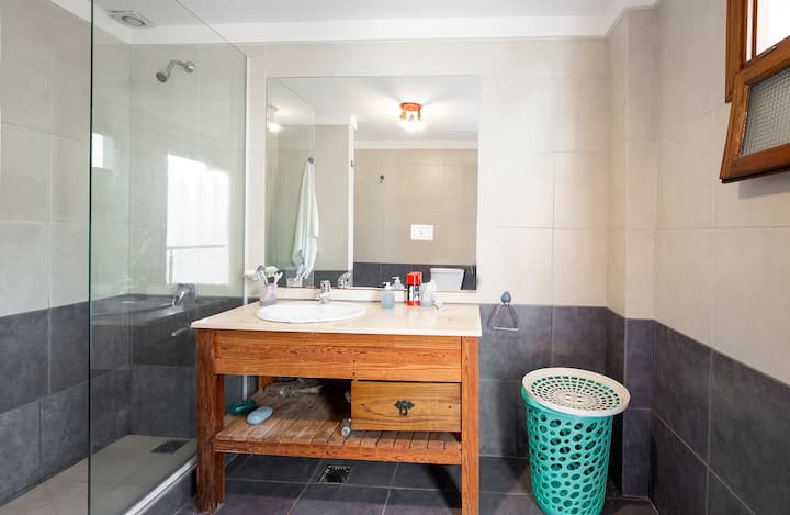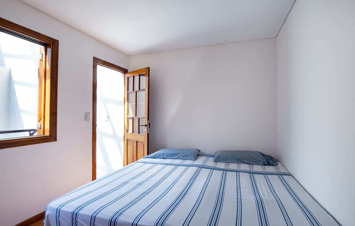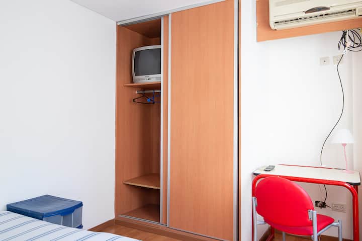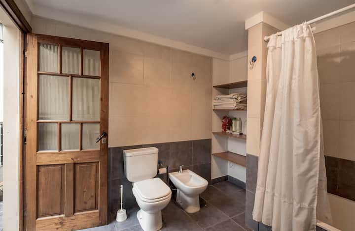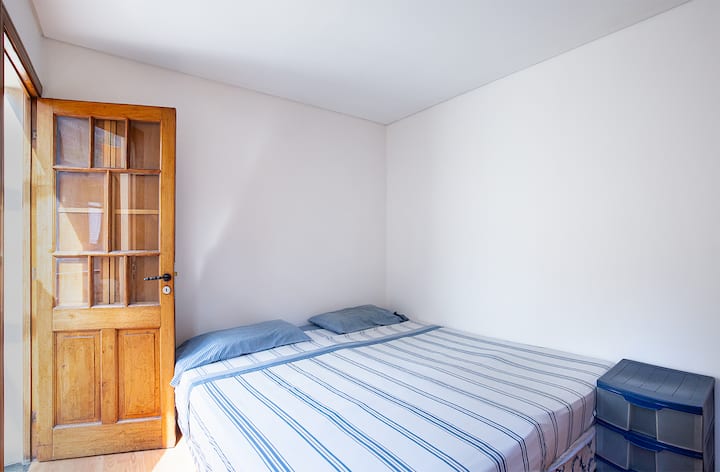 Habitación en departamento con 1 dormitorio. Hay 4 habitaciones disponibles, cada una con 2 camas; esta habitación tiene cama doble o opción de 2 camas de 1 plaza. El alojamiento cuenta con cocina equipada, café y té, y acceso a terraza con patio cubierto.