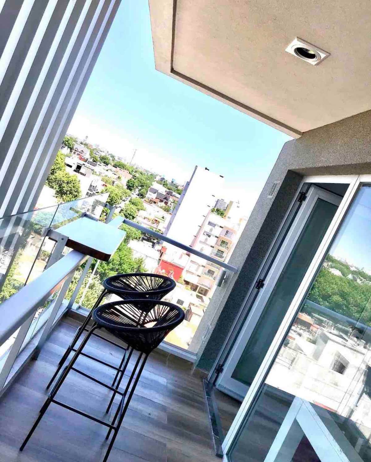 Loft en 7º piso con balcón al frente y jardín vertical en Villa Luro