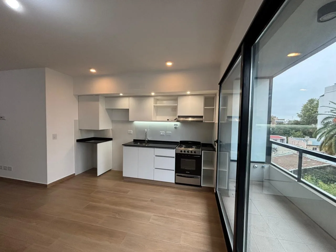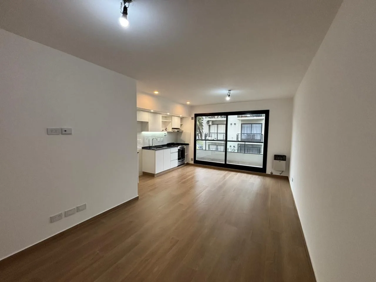 Departamento de 2 ambientes a estrenar de 1 dormitorio con placard, 1 baño completo con bañera y living comedor con cocina integrada. Cuenta con balcón al frente, artefacto de cocina, extractor, aire acondicionado y termotanque de 85 lts, además de conexión para lavarropas. Expensas $116.000 y alquiler $850.000. Requiere garantía propietaria y recibos de sueldo, o seguro de caución con recibos de sueldo.