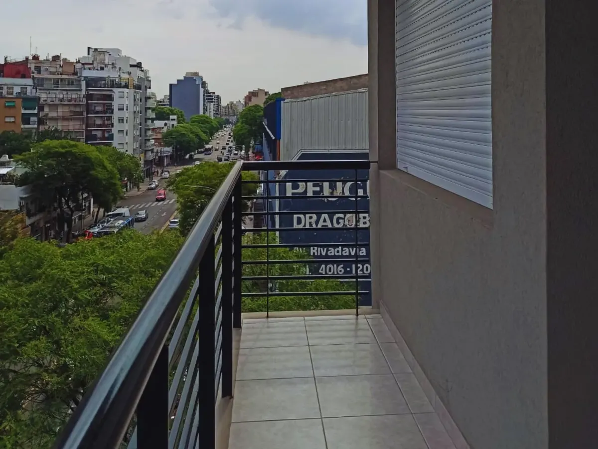Departamento de 2 ambientes a estrenar, en 6° piso al frente sobre Av. Rivadavia 9800, con balcón corrido. Tiene 52 m² totales y living comedor con cocina integrada y salida al balcón. Dormitorio con placard empotrado con interiores completos y baño completo con bañera. Edificio totalmente eléctrico, sin gas. Alquiler $770.000; expensas $194.000 e incluyen AySA y luz de obra. Depósito: 1 mes. Ajuste trimestral por IPC.