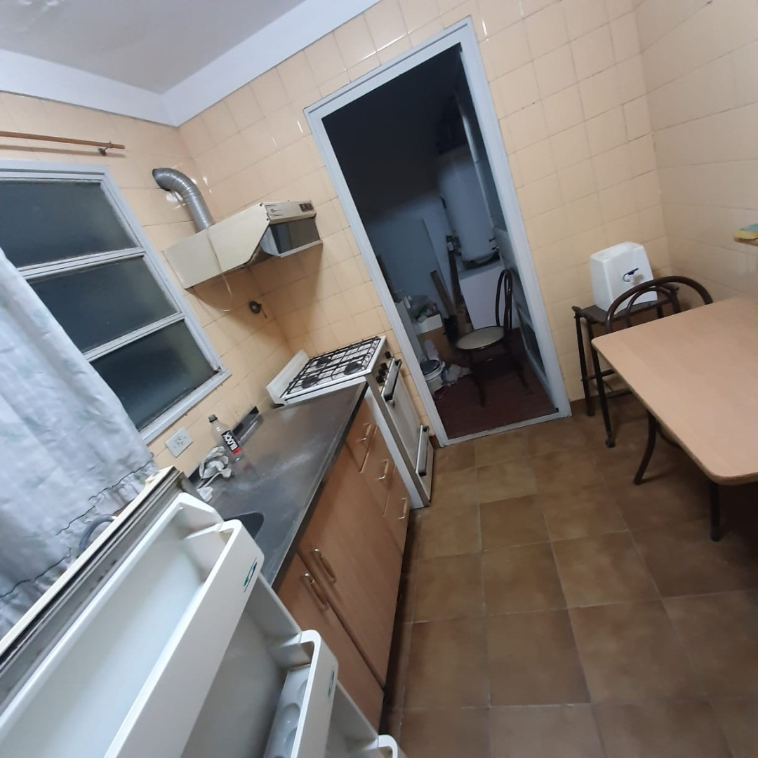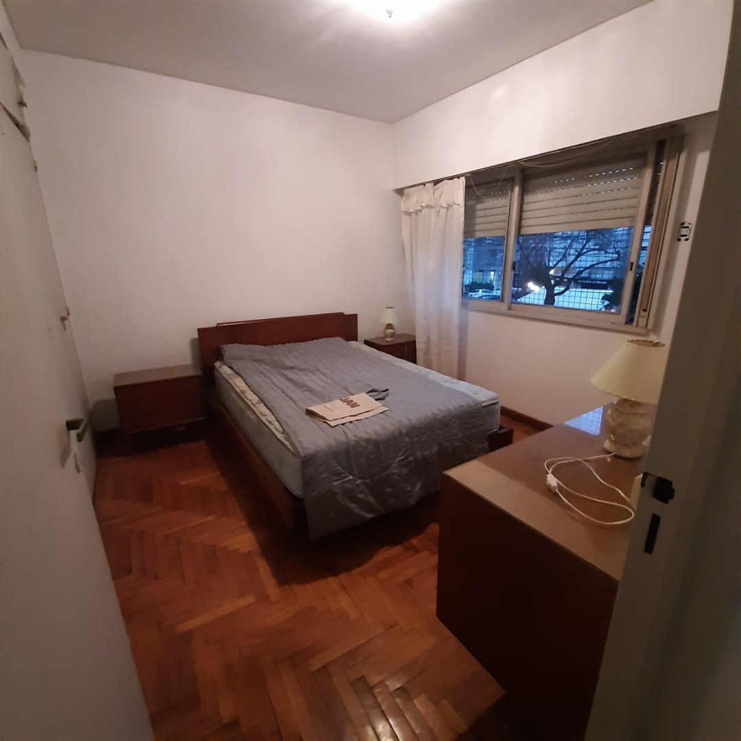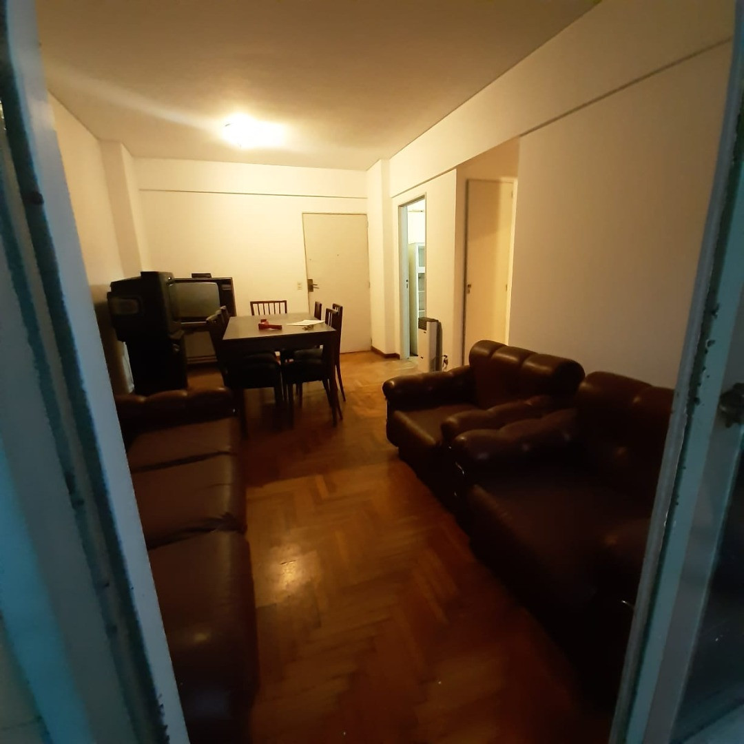 Departamento de 2 ambientes en Villa Luro. Cuenta con cocina independiente con heladera y lavadero con lavarropas, y living comedor con mesa, sillas y sillones. El dormitorio tiene cama y mesas de luz, y dispone de balcón a la calle al frente.