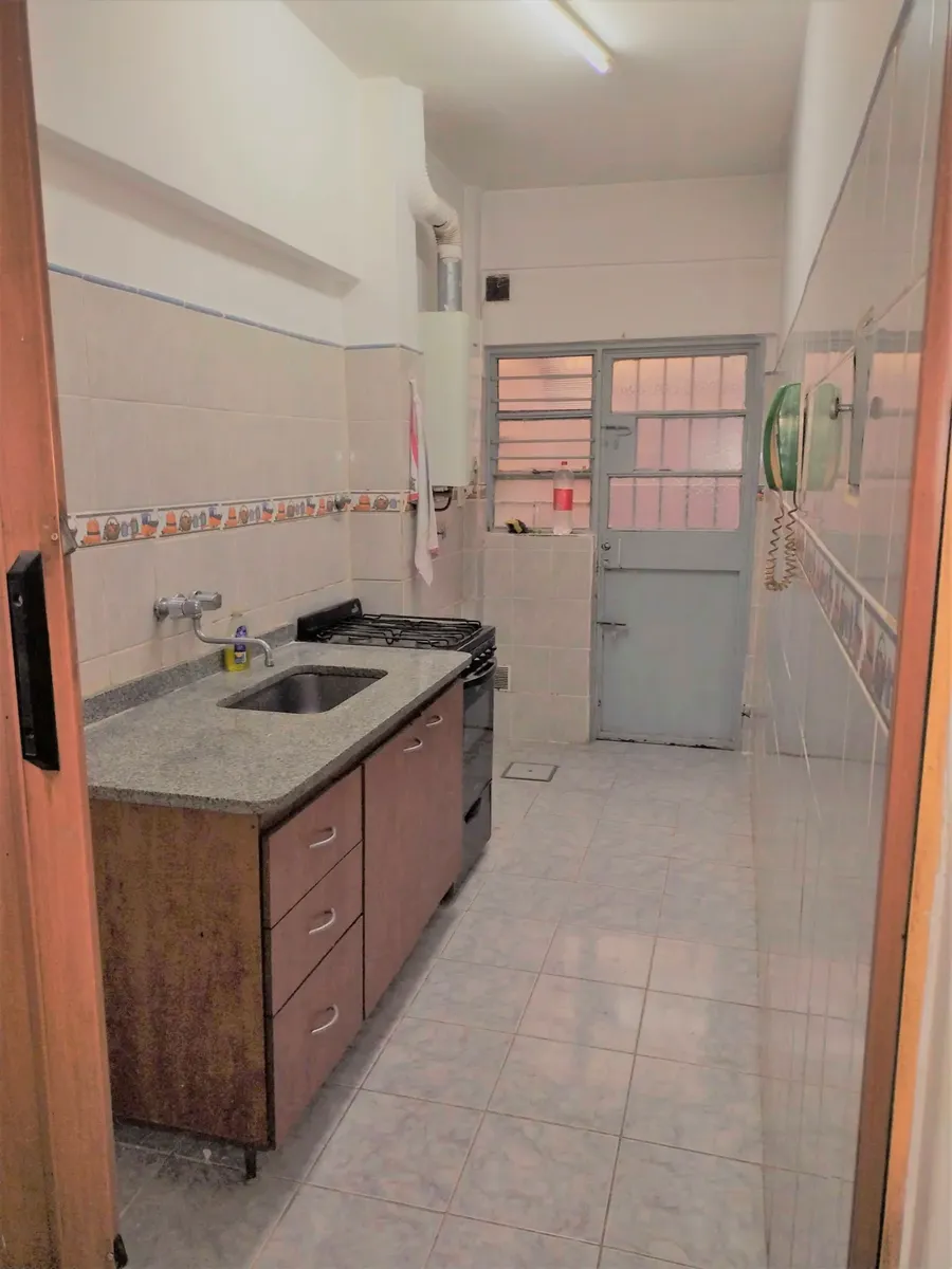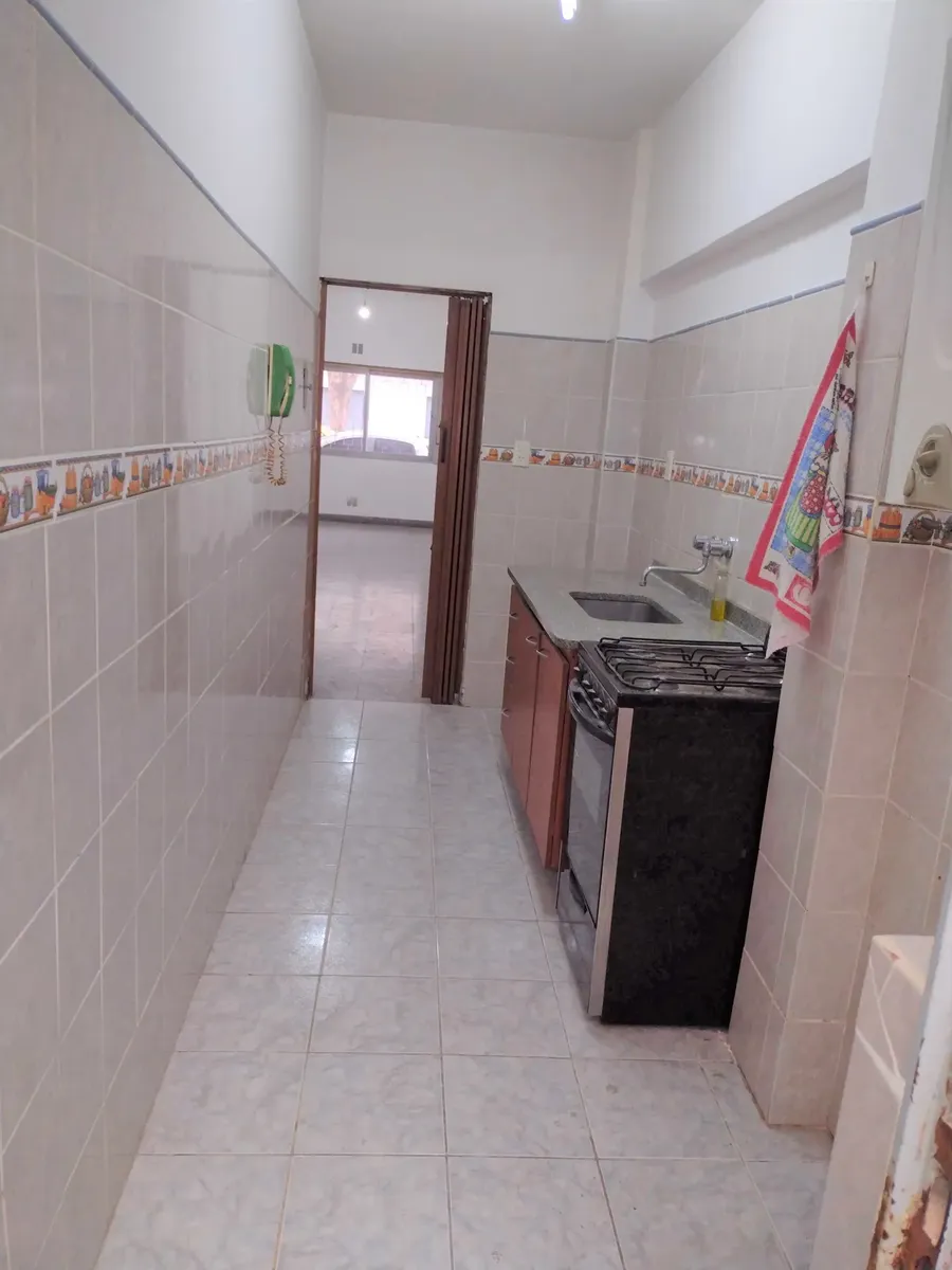 Departamento de 2 ambientes de 55 m² totales, en planta baja al frente, con patio. Cuenta con 1 dormitorio con placard y ventilador de techo, living comedor divisible y hall de distribución. Baño hecho a nuevo completo y cocina de 4 x 1,80 m con salida al patio, que mide 2,50 x 2,50 m e incluye techo de policarbonato corredizo y pileta para lavar. Dispone de persianas y rejas en ventanas al exterior. Ubicado a 2 cuadras de Av. Rivadavia 9600, sobre la calle Dante al 200.