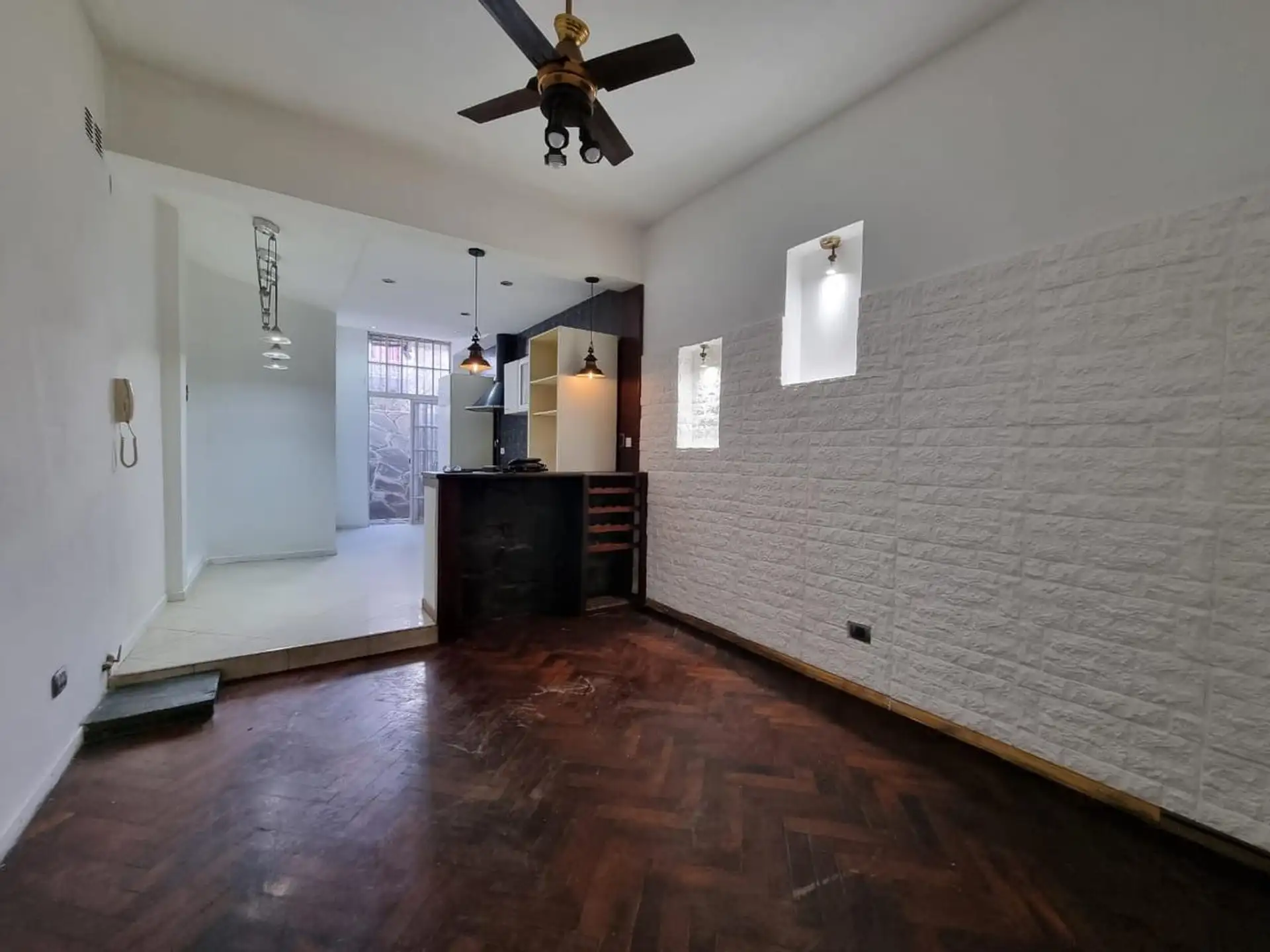 Departamento en planta baja con frente, en Villa Martelli. Al ingresar, cuenta con hall de recepción y living-comedor, con cocina comedor equipada con muebles bajo mesada, alacena y barra desayunador. Tiene 1 baño con doble bacha y ducha, patio con lavadero semi cubierto y termotanque. El dormitorio incluye ventilador de techo, piso de parquet, placard y baulera, y cuenta con luces dicroicas. Bajas expensas y ley 5115 accesible.