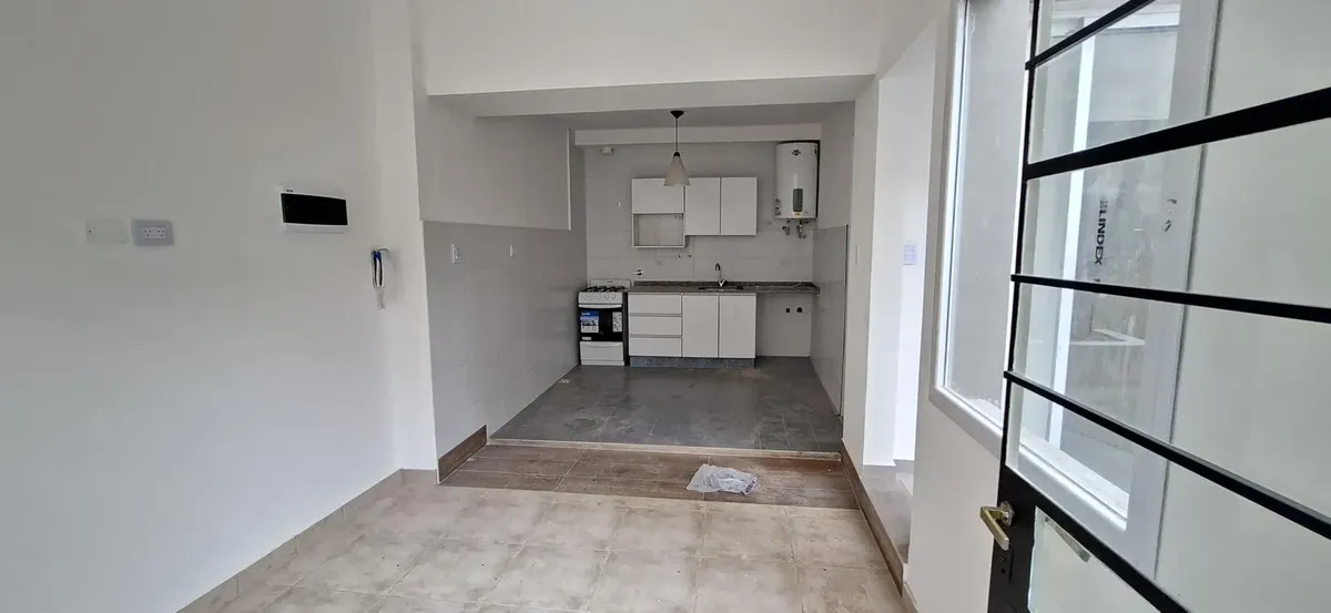 Departamento a estrenar en planta baja, realizado a nuevo. Cuenta con cocina living comedor integrada, 1 dormitorio y 1 baño completo. Incluye patio con parrilla. Se encuentra cerca de Av. Mitre y Gral Paz. Se aceptan mascotas. Requiere ingresos demostrables y ajuste trimestral por IPC, con contrato por 2 años. Las medidas son aproximadas.