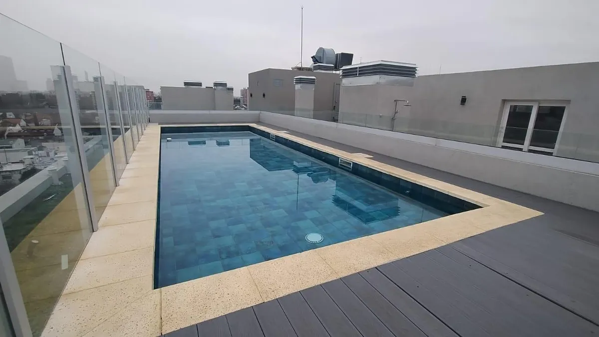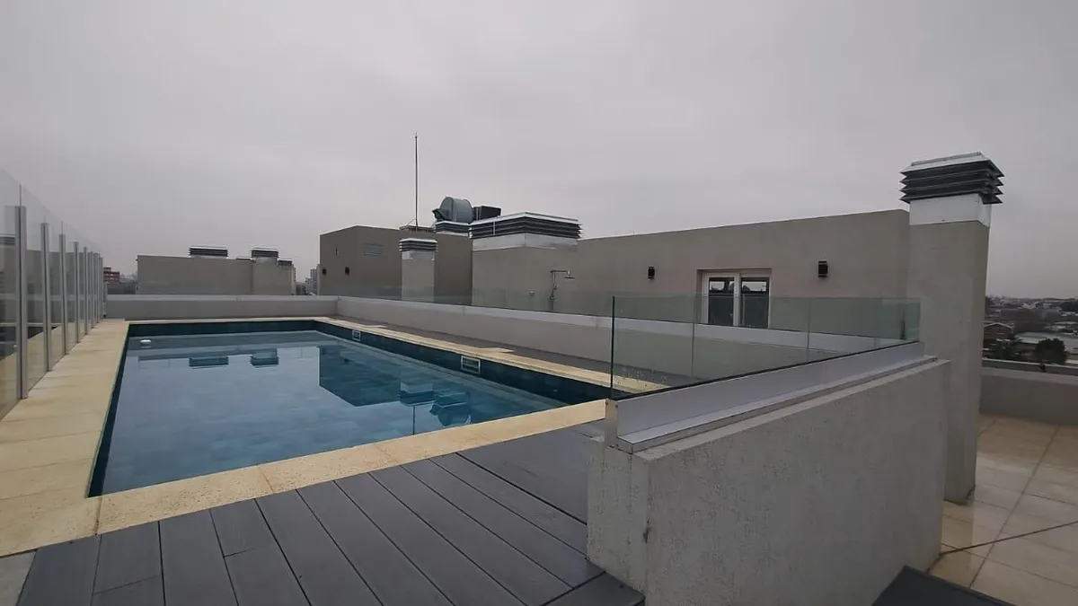 Departamento de 2 ambientes al frente, con balcón corrido, 1 dormitorio y cochera descubierta, en el complejo Campus Martelli. Cuenta con cocina con anafe eléctrico (sin horno), living-comedor con salida al balcón, baño completo y placard sin interiores. El edificio dispone de seguridad 24 h, piscina con solárium en el último piso, parrillas y SUM, gimnasio y laundry. Preinstalación para equipos de aire acondicionado (sin equipos incluidos).