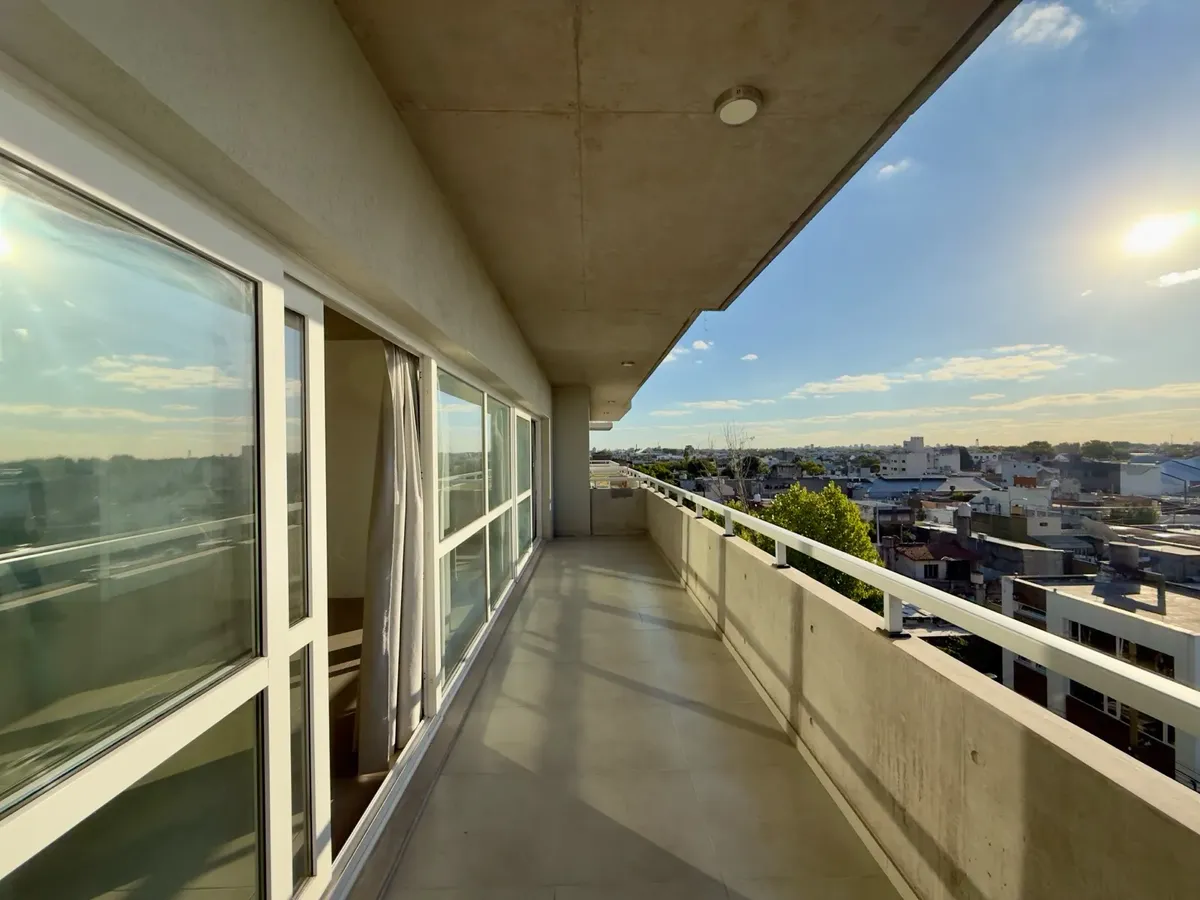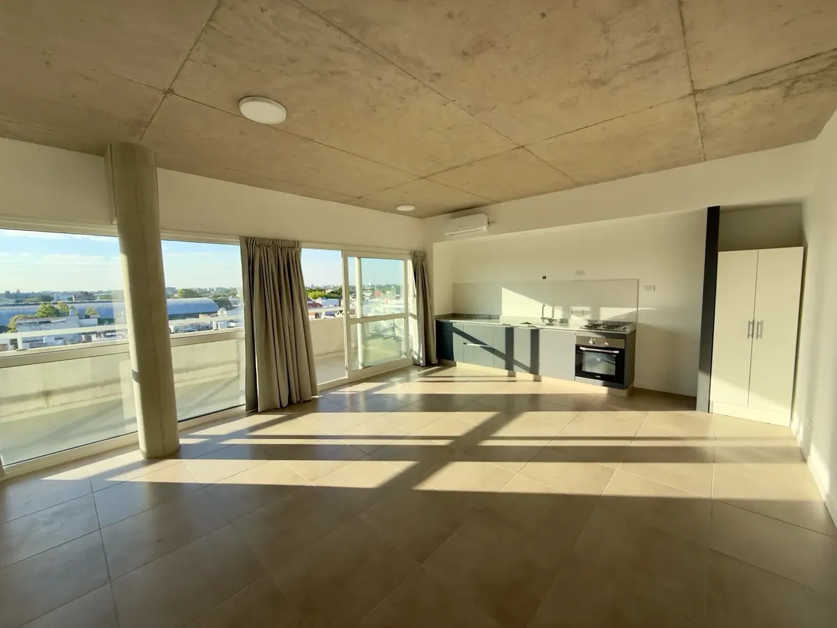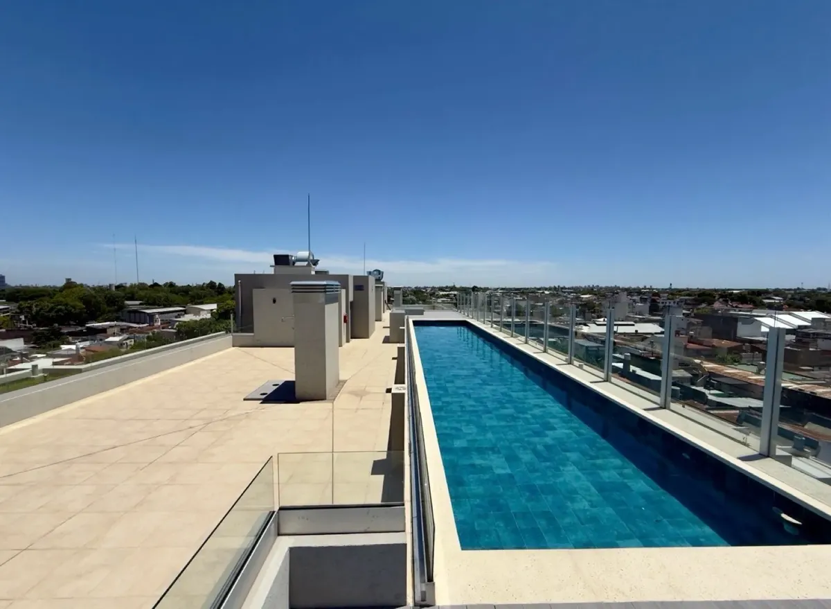 Apartamento de 2 ambientes com 70 m² totais, no complexo Campus Norte, em Villa Martelli/Vicente López. Possui living com cozinha integrada e saída para balcão-terraço corrido com vista aberta, além de janelas do tipo do piso ao teto. Inclui 1 quarto com armário até o teto, banheiro completo com banheira, cozinha com forno embutido e móveis planejados, 2 aparelhos de ar-condicionado instalados e black out. O condomínio tem segurança 24 horas, acesso controlado, 2 piscinas, áreas de churrasco, sa