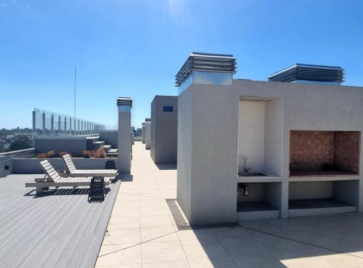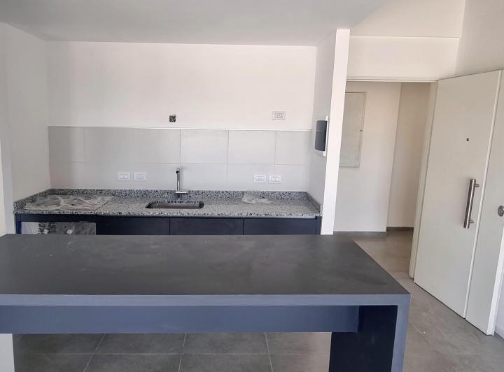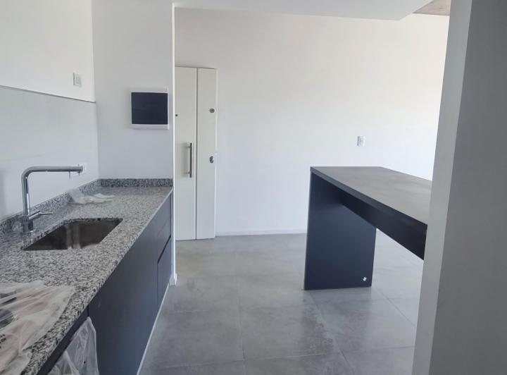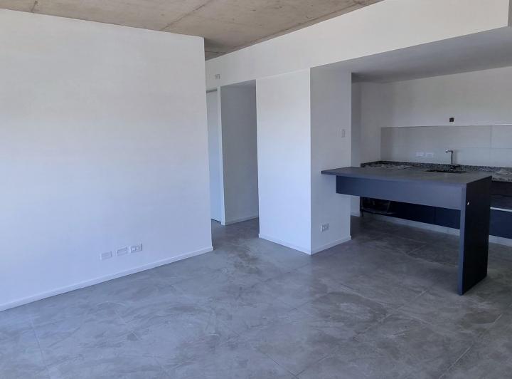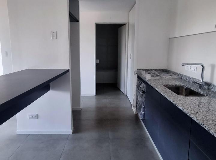 Departamento de 2 ambientes a estrenar con 1 dormitorio, living comedor y gran balcón. La unidad tiene salida a balcón corrido desde el living comedor y desde el dormitorio. Cocina con barra divisoria y baño completo. Incluye cochera. El edificio cuenta con seguridad 24 horas, 2 piletas en el último piso, solarium, SUM y 4 parrillas.