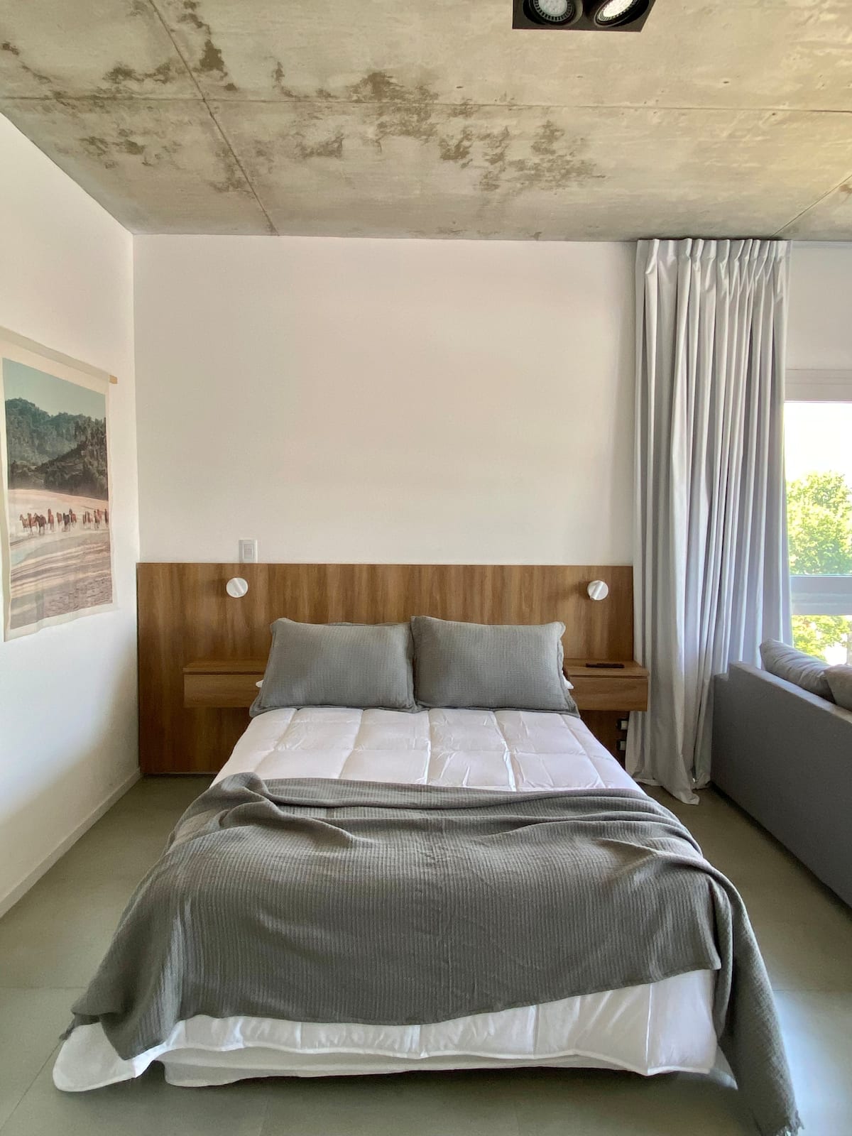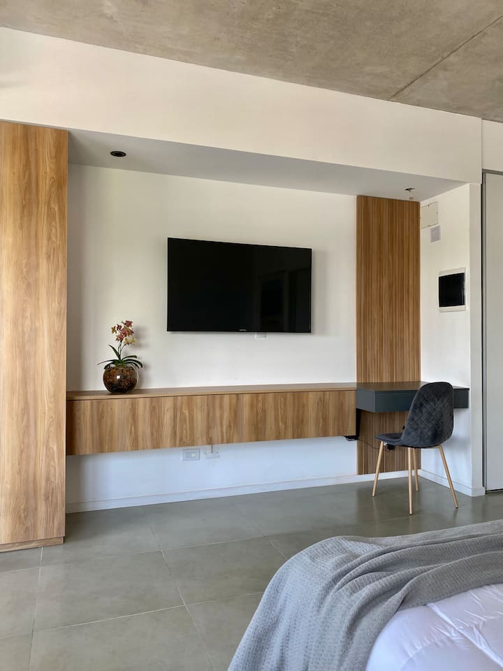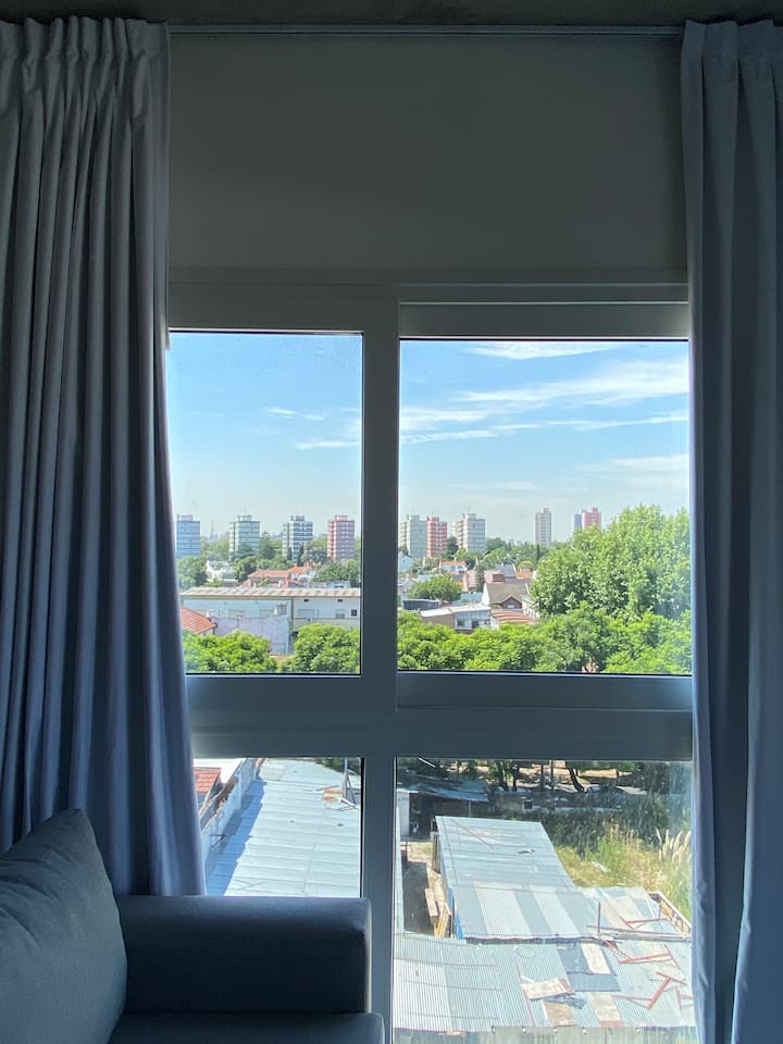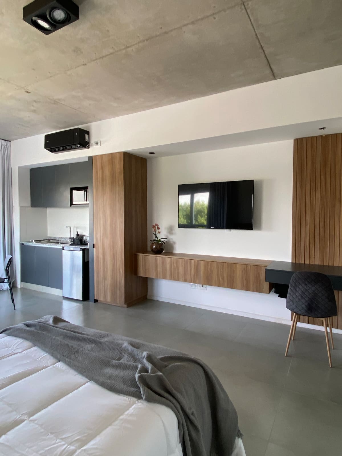 Departamento monoambiente de 1 ambiente con cochera en Villa Martelli, con balcón. Incluye cocina con heladera y microondas, vajilla y utensilios, cama y almohadas, escritorio, placard, aire acondicionado frío/calor y baño con ducha de mano. El alquiler incluye WiFi y TV y cuenta con seguridad 24 horas, 2 piletas, gimnasio, laundry, SUM y parrilla.