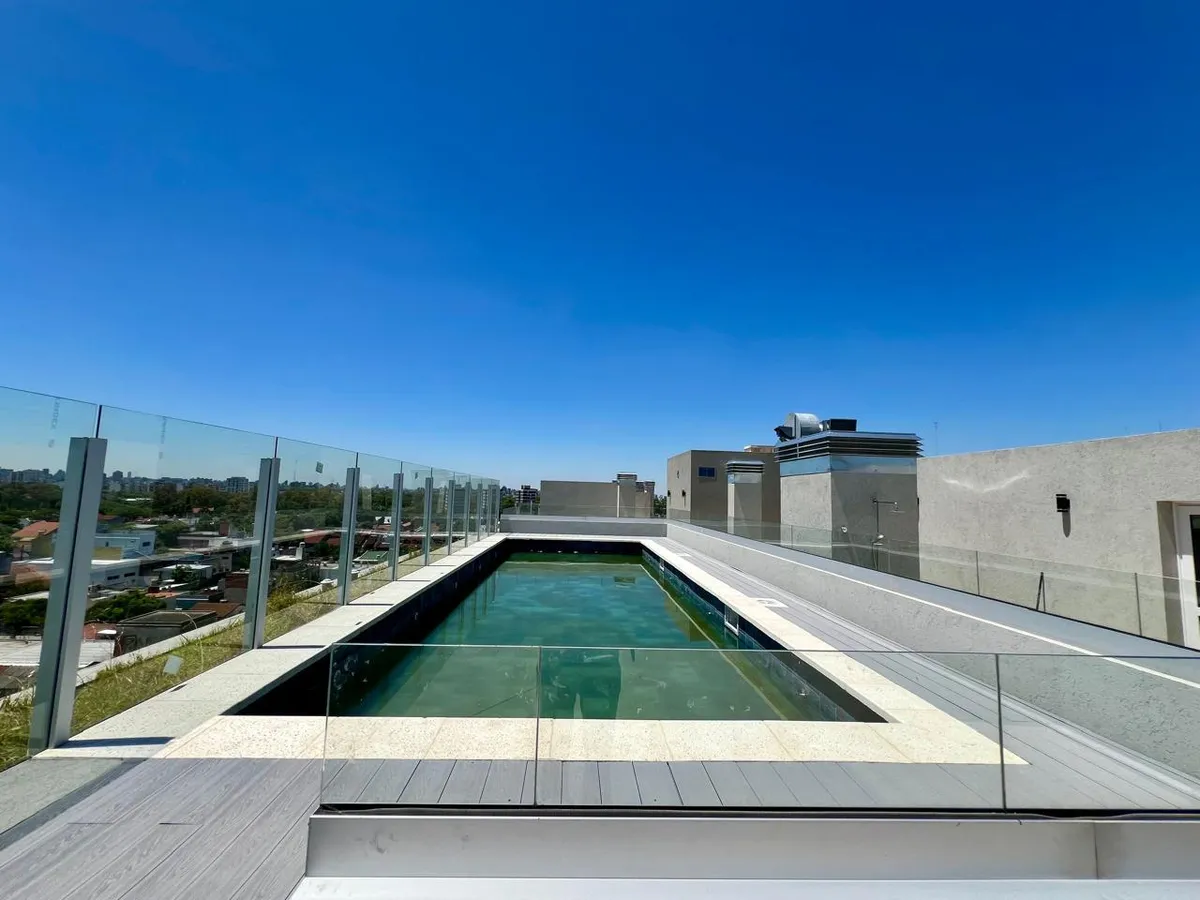 Departamento de 2 ambientes con balcón corrido, cocina independiente, living comedor, 1 dormitorio y 1 baño completo. Incluye aire acondicionado instalado en el living comedor y cortinas. Cochera cubierta en planta baja. El complejo cuenta con seguridad, piscina, SUM, parrilla, laundry y gimnasio. Depósito: U$S 600. Alquiler mensual: U$S 550 (1er año) y U$S 600 (2do año).