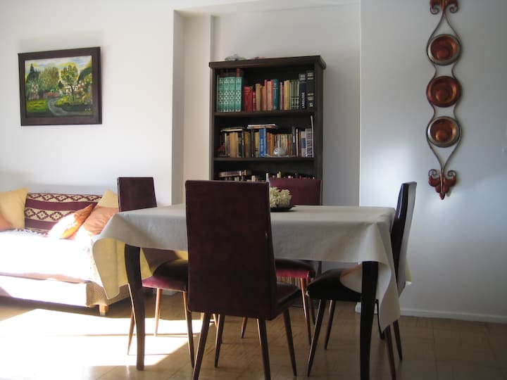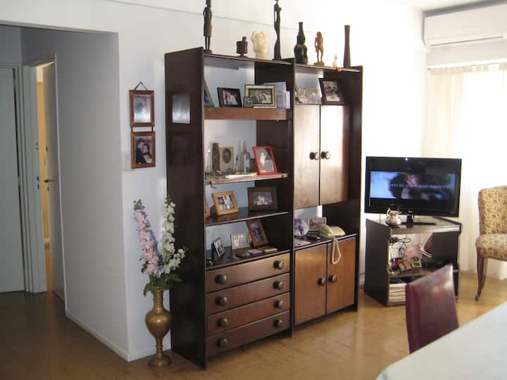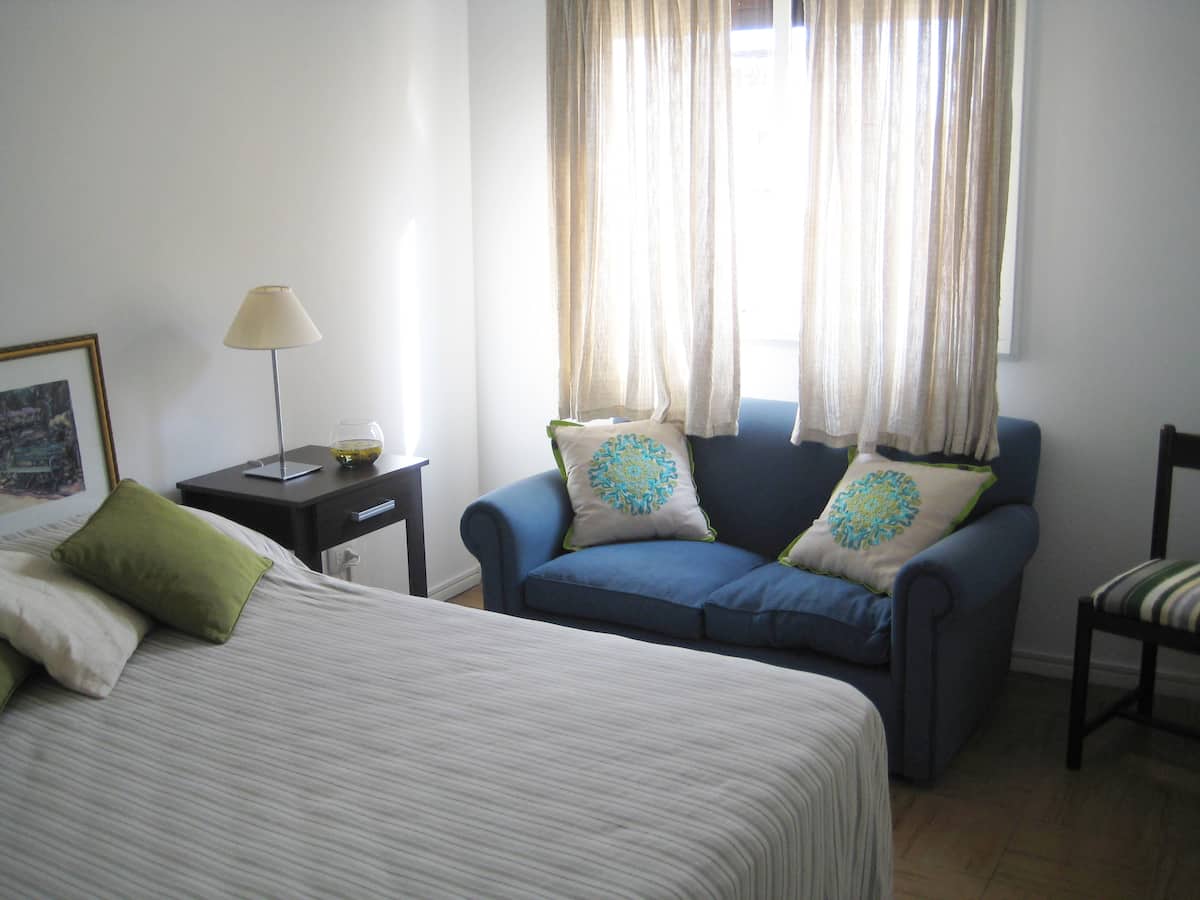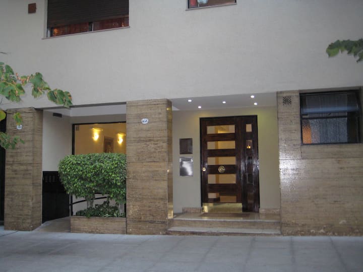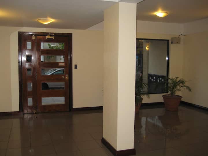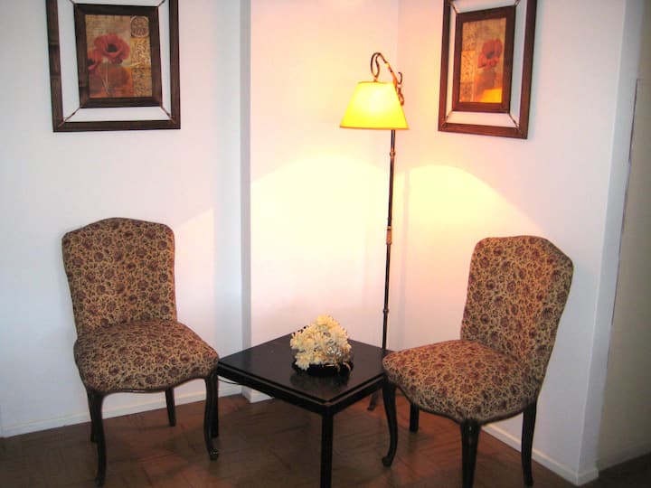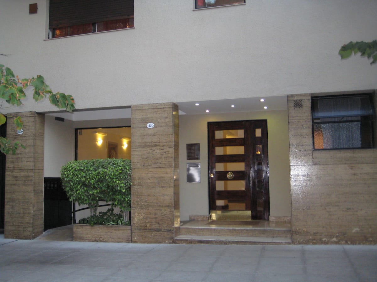 Departamento en Villa Ortúzar destinado a estadías. Incluye un dormitorio y 2 baños. Se menciona acceso fácil a transporte público y cercanía a Palermo Hollywood, Belgrano, Colegiales y Urquiza, con aproximadamente 40 minutos al centro de la ciudad. Entre otros detalles, se reporta seguridad con cámaras, guardia policial y portería eléctrica con detector de humo y detector de monóxido de carbono.