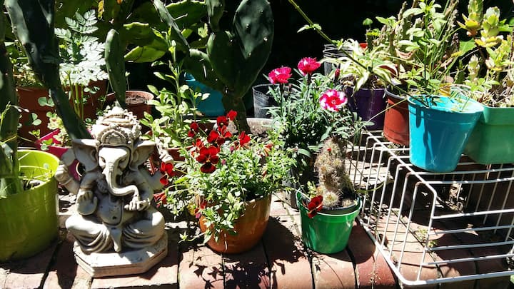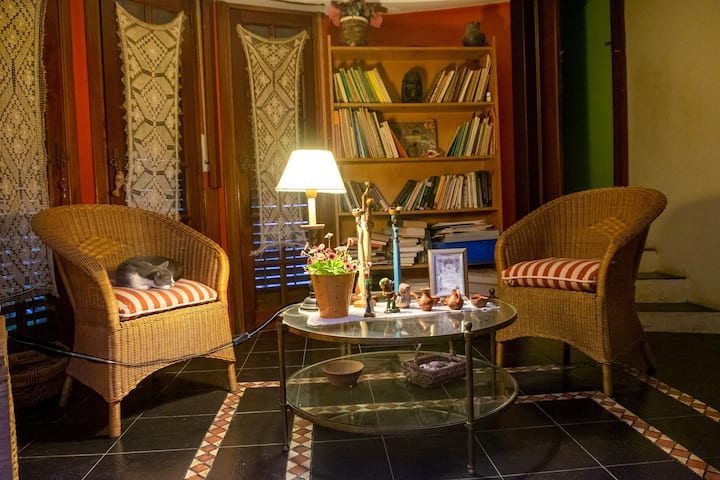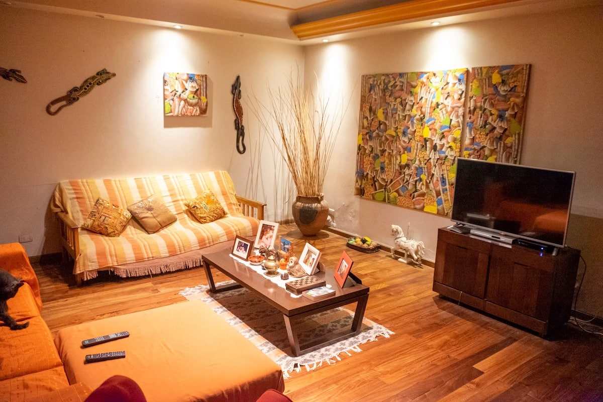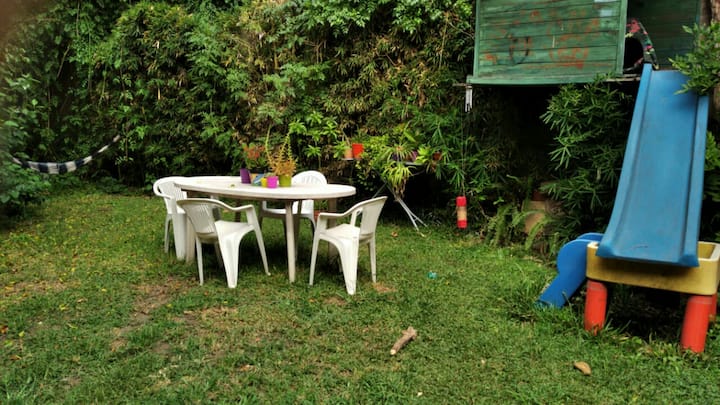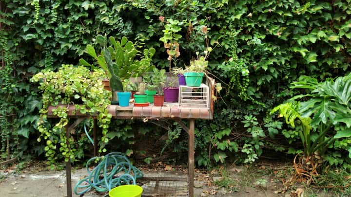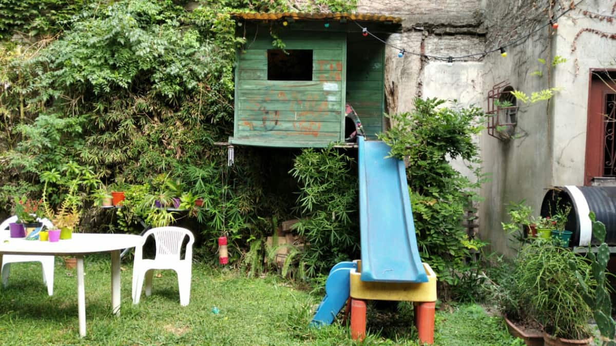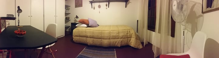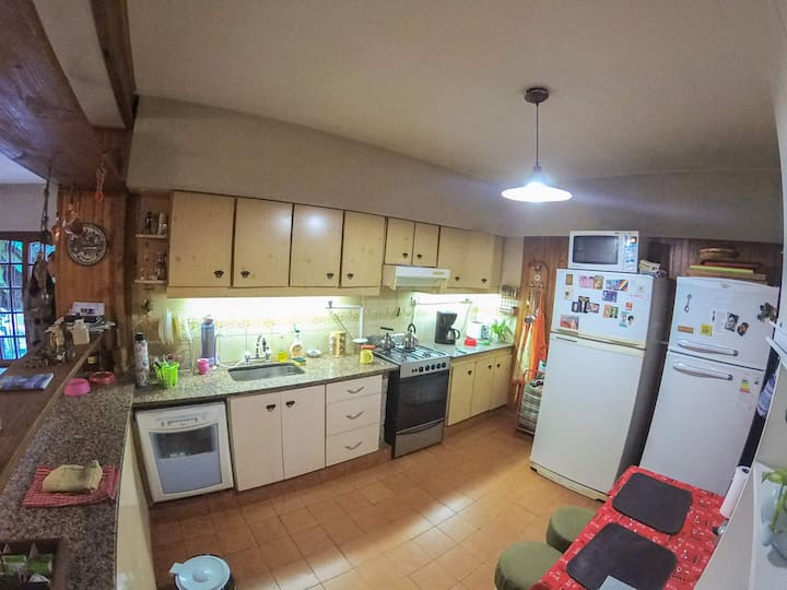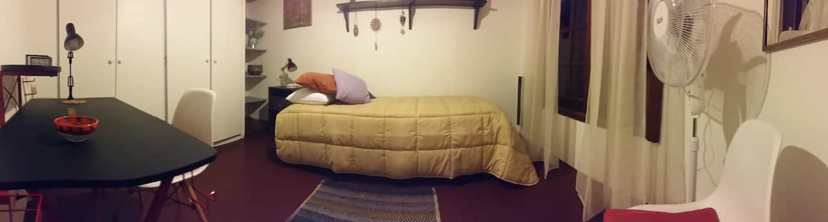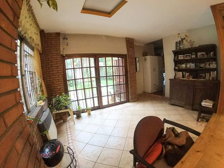 Departamento en Villa Ortúzar, ubicado en el 4° piso. El aviso describe una vivienda con 1 dormitorio y acceso compartido a áreas comunes como living, cocina comedor, jardín y lavadero. También menciona uso compartido de 2 baños y presencia de mascotas en el alojamiento.