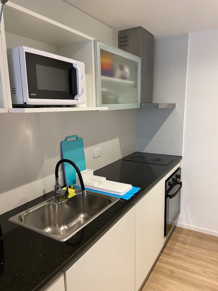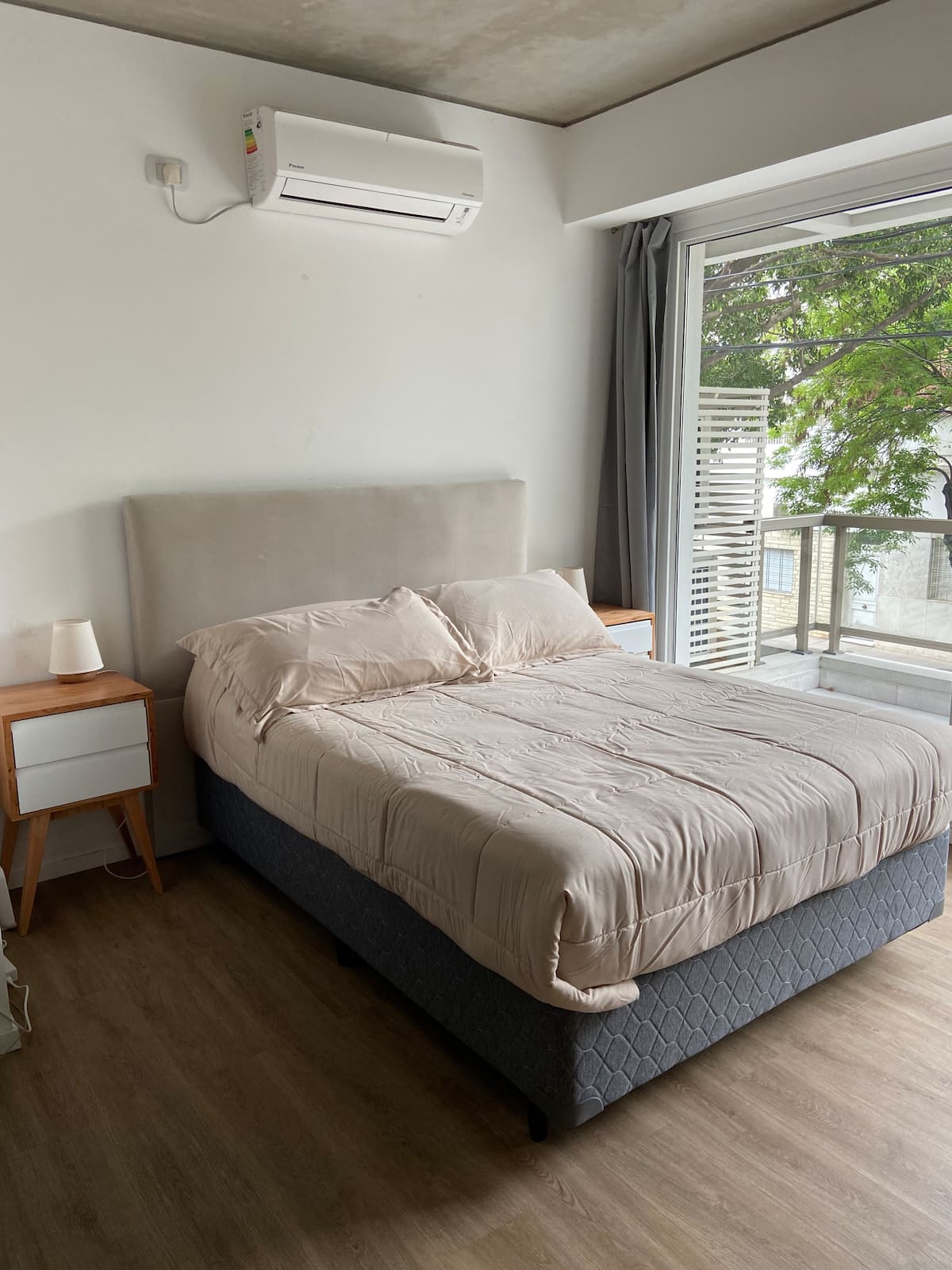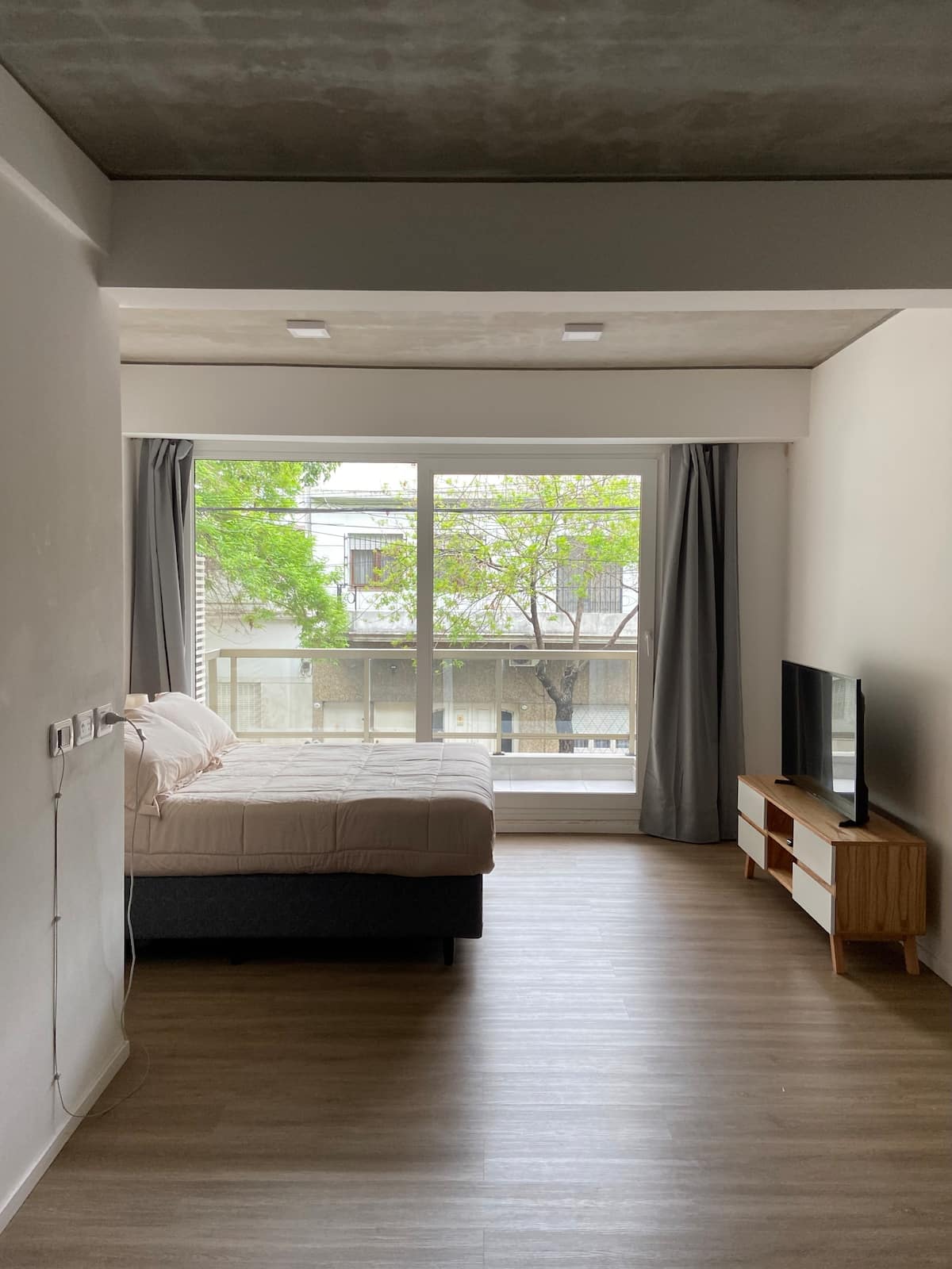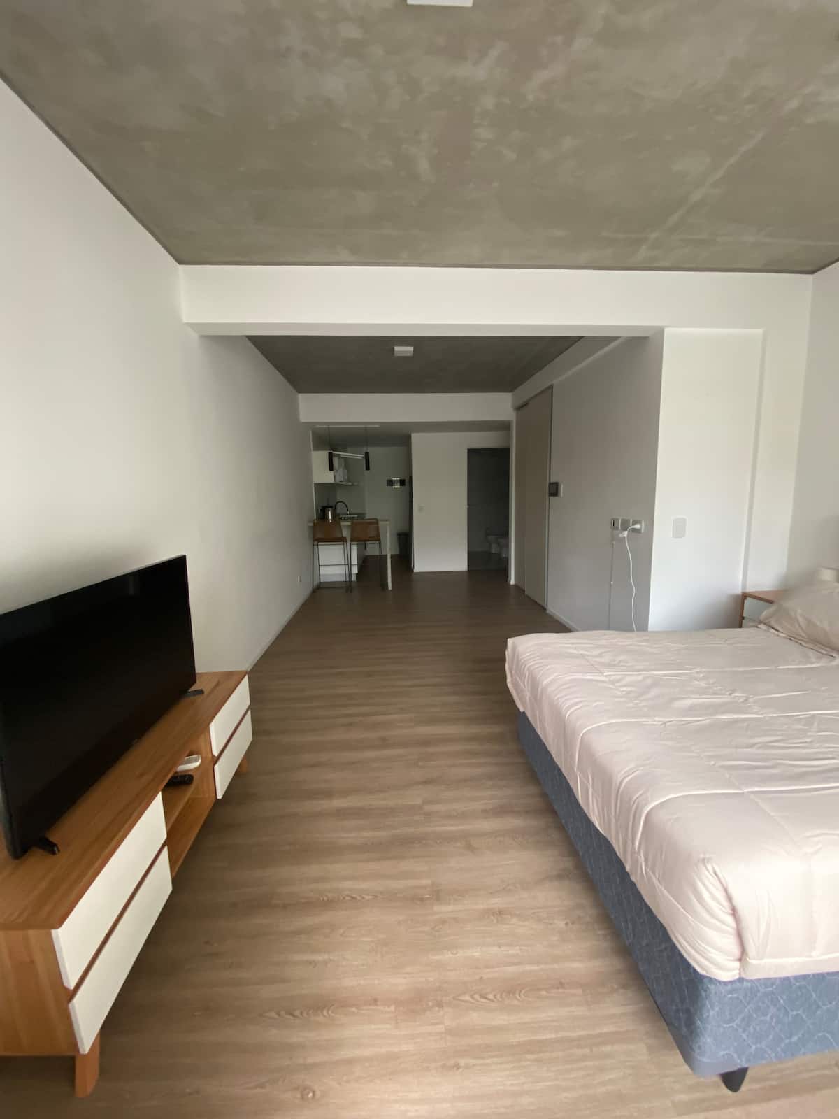 Monoambiente en un edificio moderno, con iluminación natural. Está equipado. A menos de 100 metros del Subte Línea B y con cercanía a Belgrano, Villa Urquiza, Movistar Arena y Av. Corrientes.
