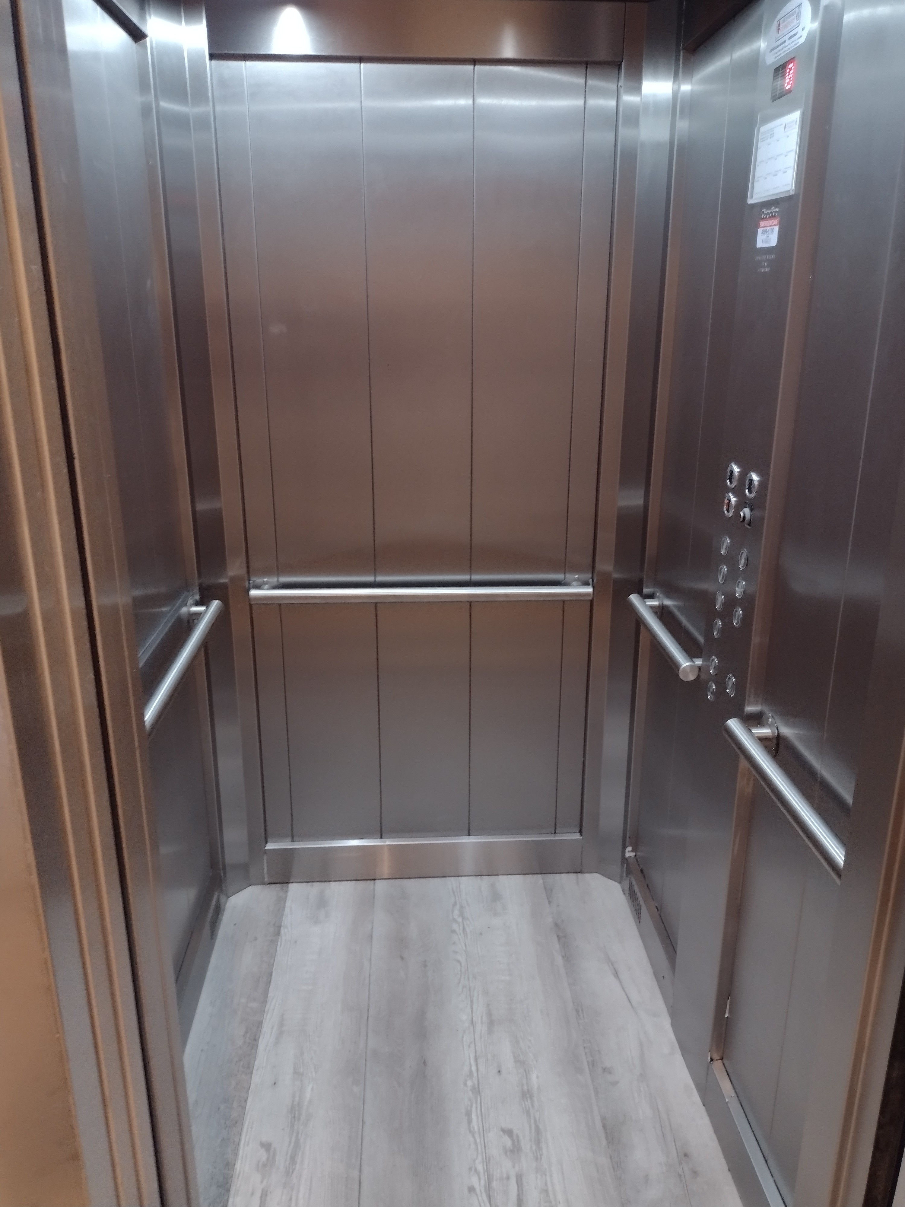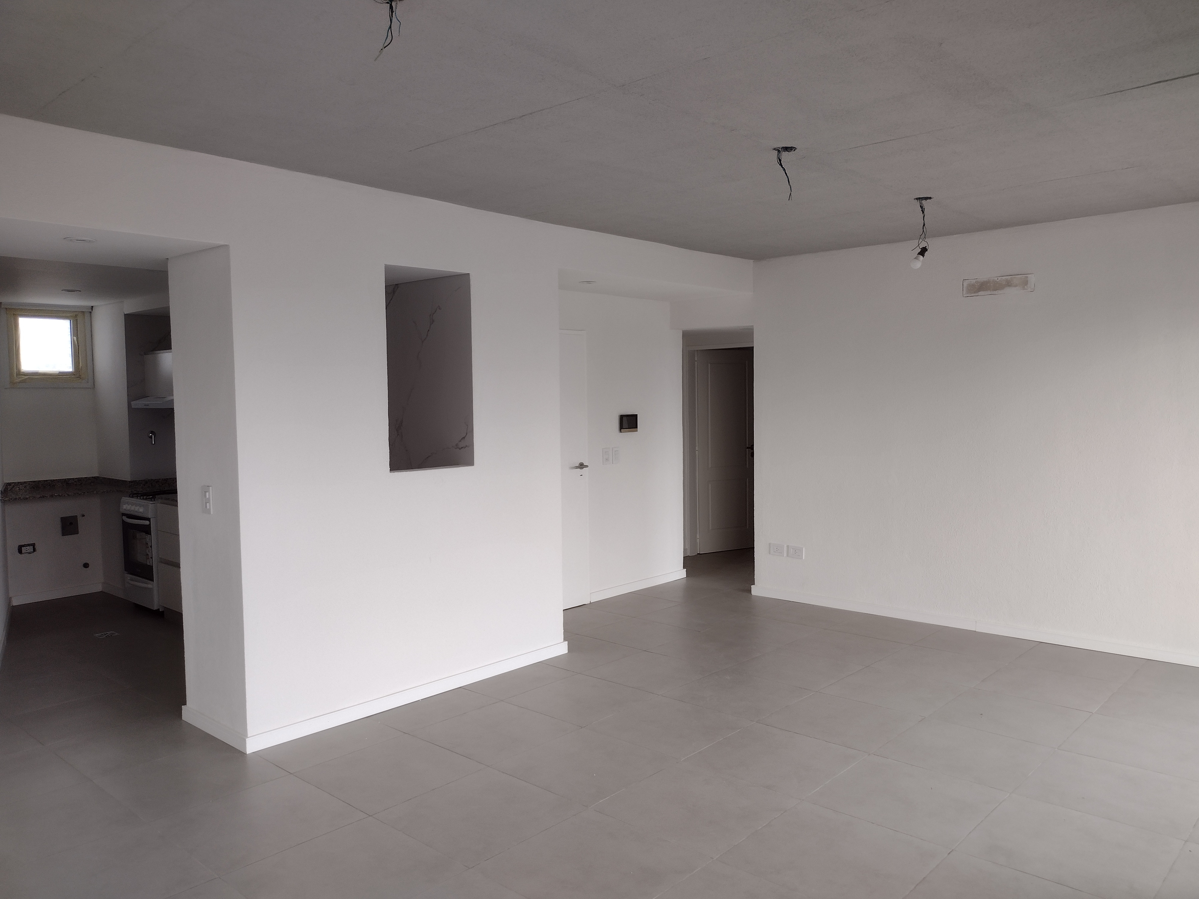 Departamento de 2 ambientes de 55 m², al frente, con 52 m² cubiertos y 3 m² semicubiertos. Piso con orientación para iluminación y ventilación, balcón con vista exterior y frente vidriado. Cuenta con habitación principal con placard, living/comedor, cocina con detector de gas, lavadero, alacena y bajo mesada, y baño completo con duchador y extractor. El edificio tiene 5 pisos, ascensor hasta el hall privado de cada unidad y servicios de luz, gas natural, agua y cloaca; hay cámaras de seguridad e
