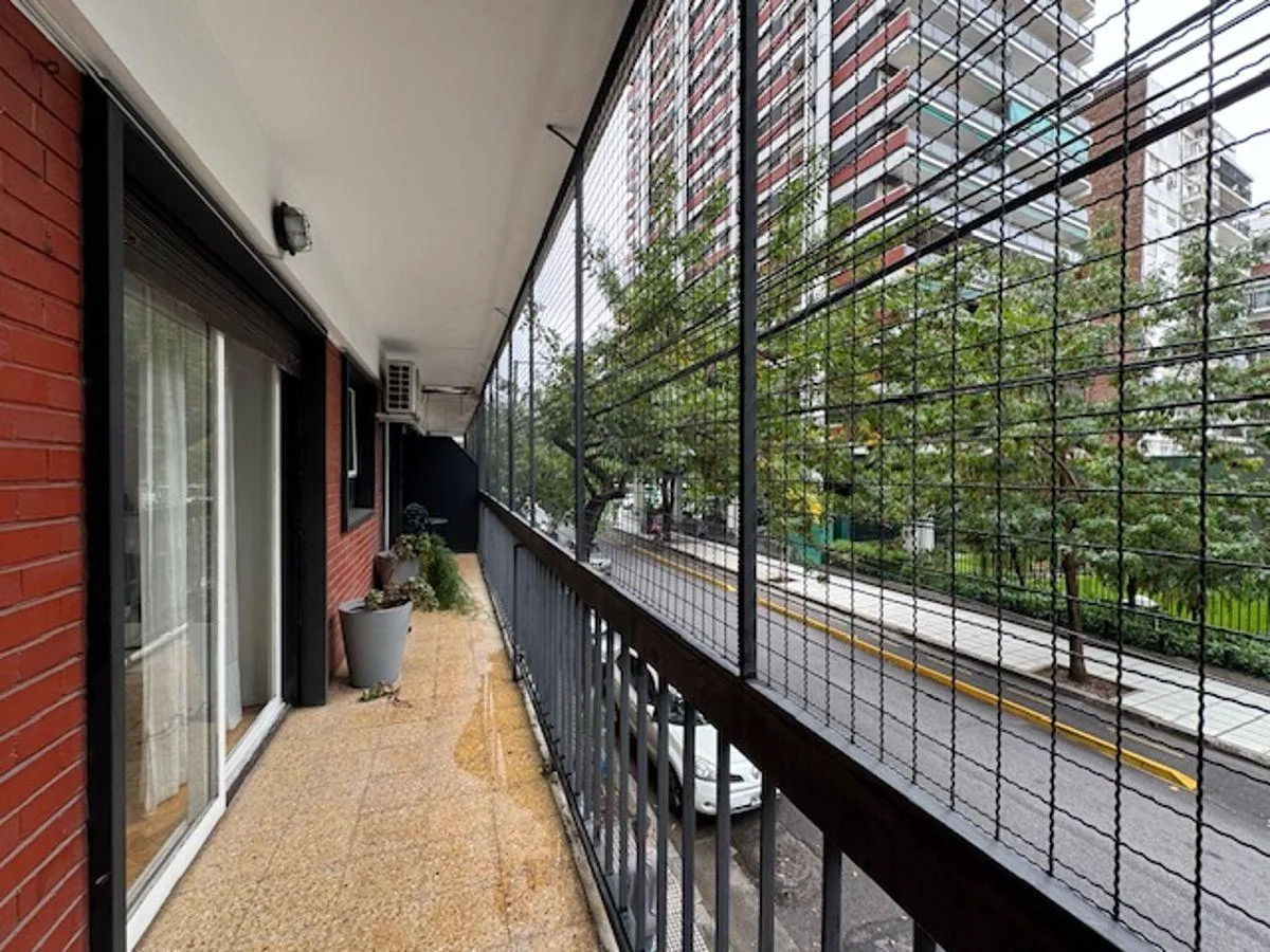 Departamento de 2 ambientes al frente en Palermo, amoblado y equipado. Cuenta con balcón corrido de 9x1, amplio living comedor con escritorio en L, dormitorio con placard y cocina totalmente equipada con heladera y lavarropas. Tiene baño completo con box de ducha y placard, pisos de parquet, aires acondicionados frío/calor y servicios centrales. El alquiler es fijo por 24 meses; las expensas pueden variar y/o ajustarse.