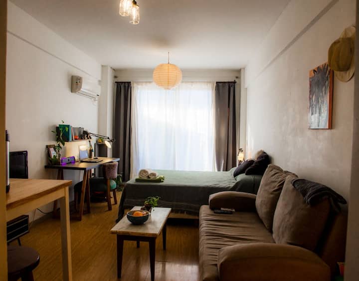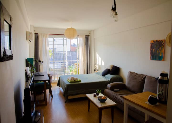 Departamento de 1 dormitorio en Villa Ortúzar. No se informan m², piso ni orientación. Cuenta con balcón y TV con Netflix. Se describe como silencioso y con conexión al centro.