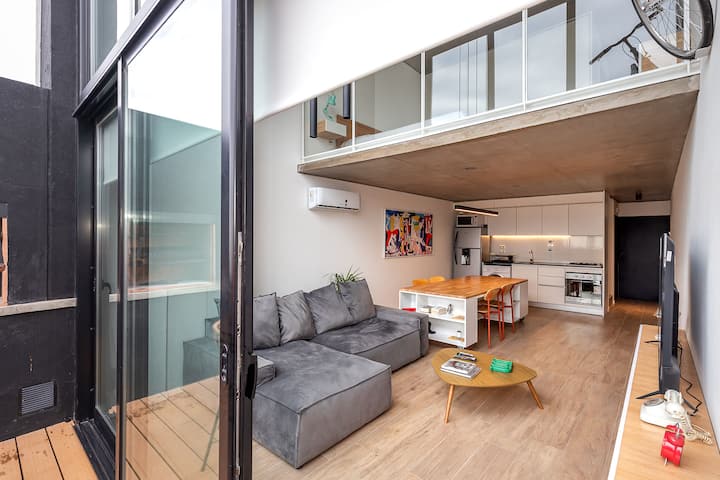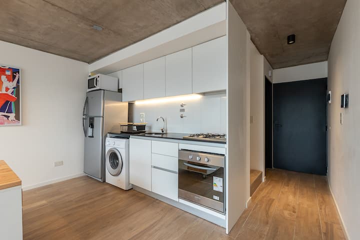 Loft en Villa Ortúzar, con 1 dormitorio y ventanas de gran tamaño. Cuenta con cocina equipada, área de trabajo y comedor, lavarropas dentro de la unidad y TV. Dispone de cama queen, Wi-Fi de alta velocidad, un baño completo y equipo de ropa de cama y toallas por huésped. El check-in es autogestionado luego de las 15:00. A 5 minutos caminando de la estación Subte “B”.