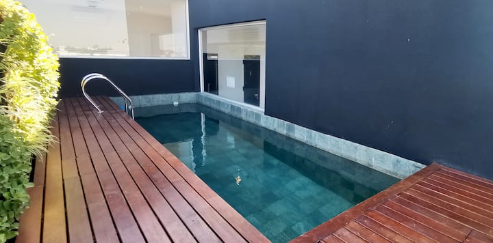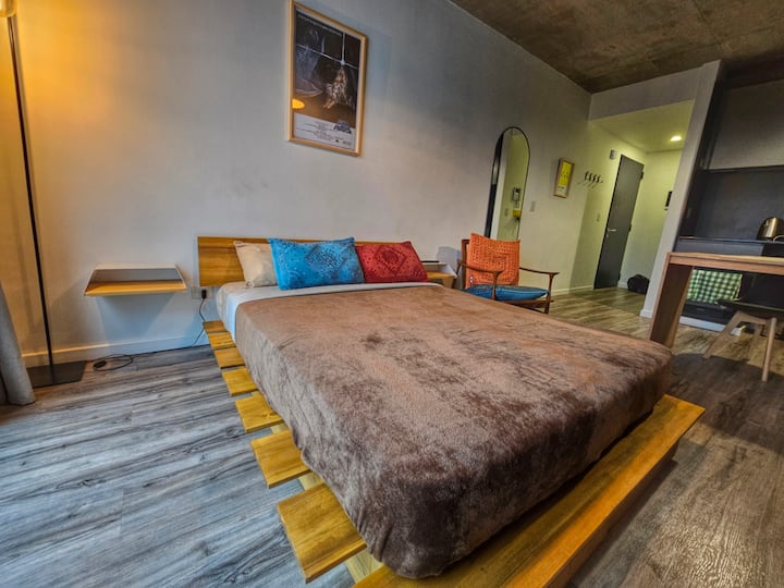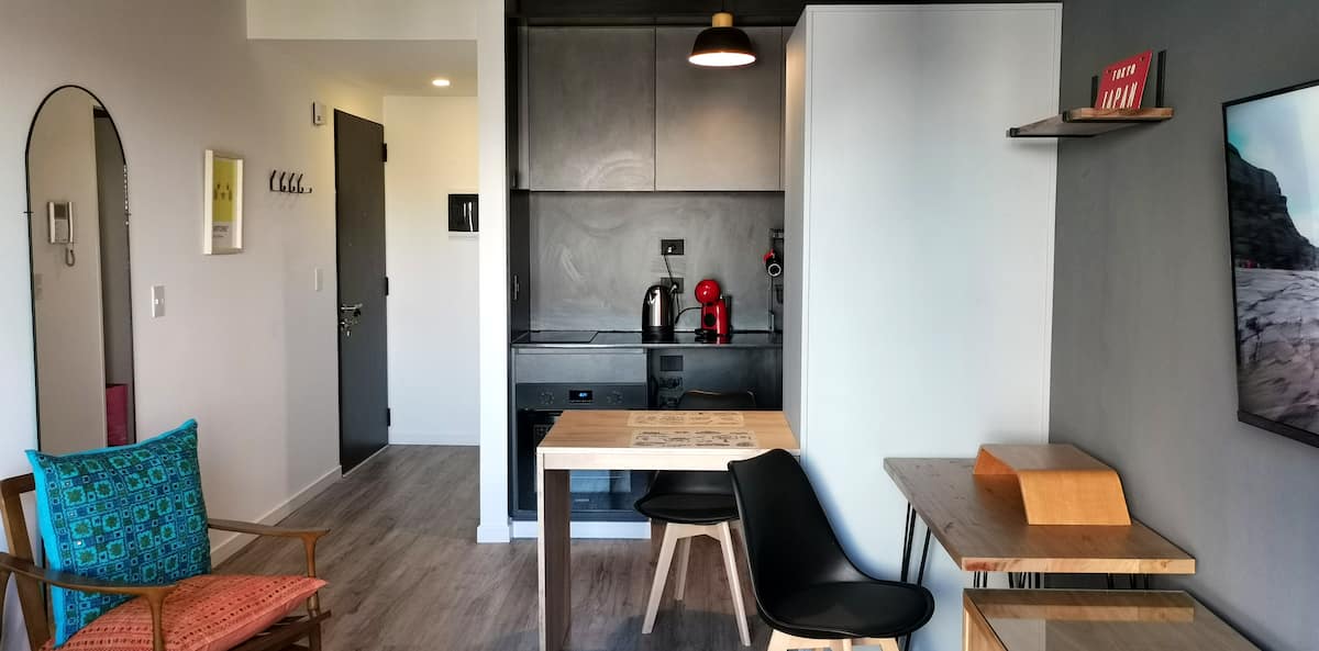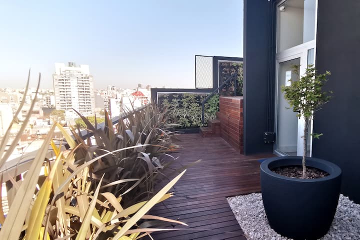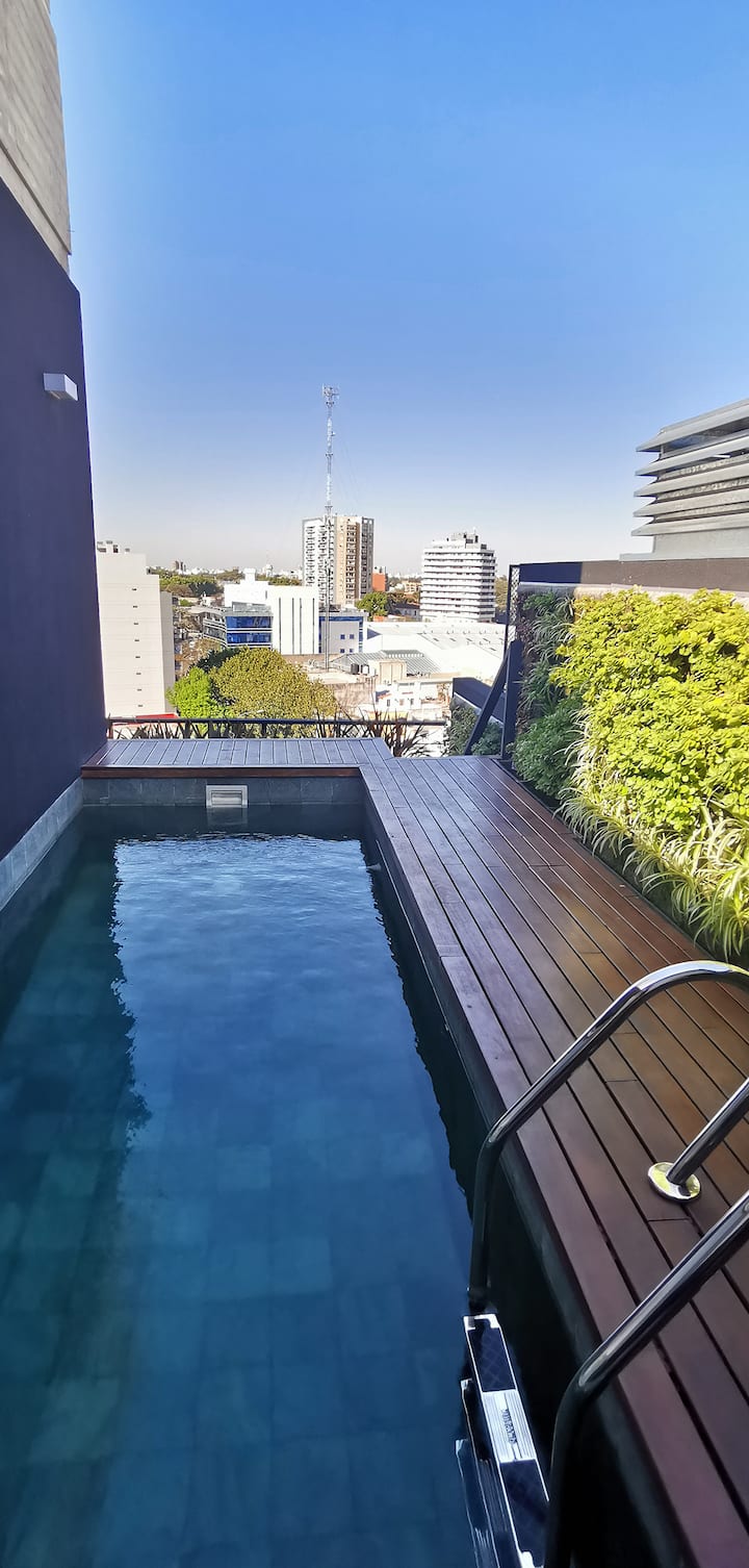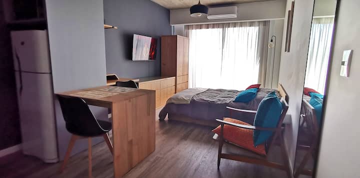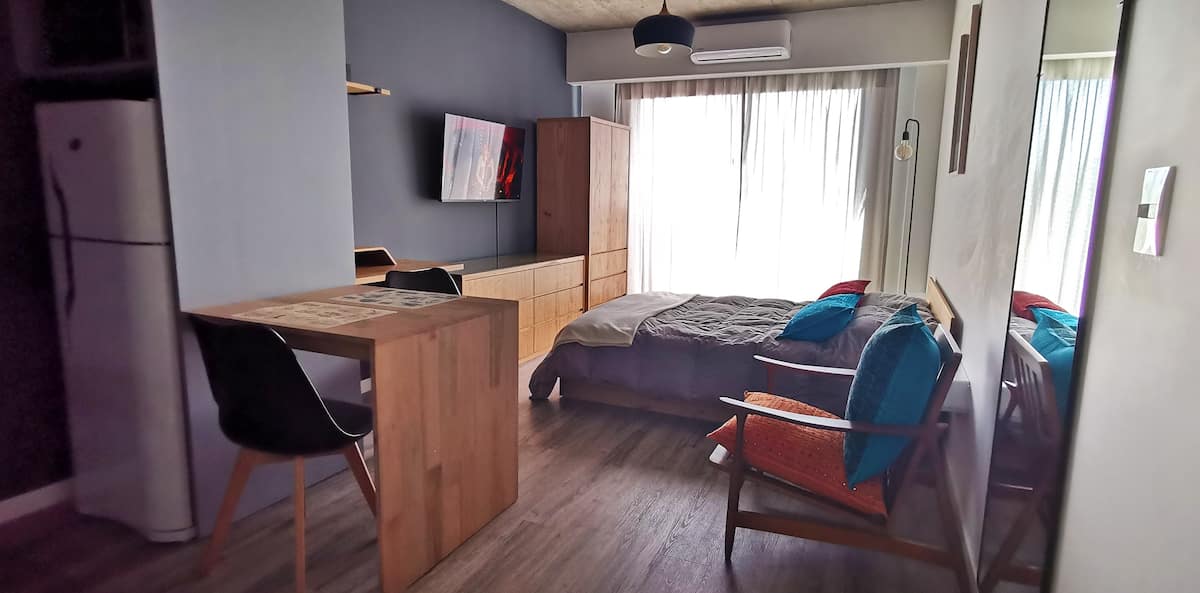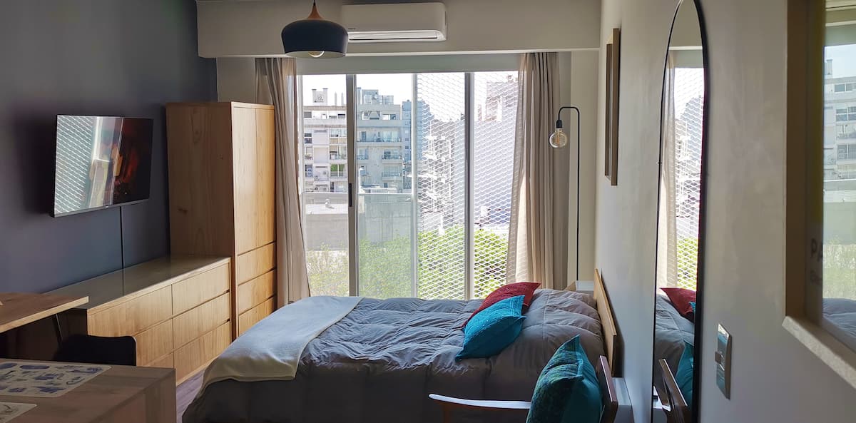 Monoambiente en Villa Ortúzar con cama queen, sector de trabajo e internet de alta velocidad. Cocina totalmente equipada. El edificio cuenta con pileta, solárium y espacio de cowork en el último piso. A 2 cuadras de la línea B de subte.