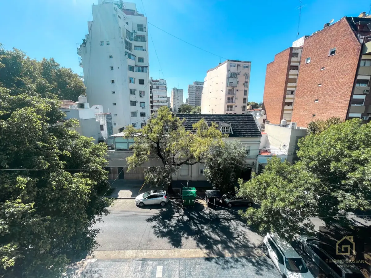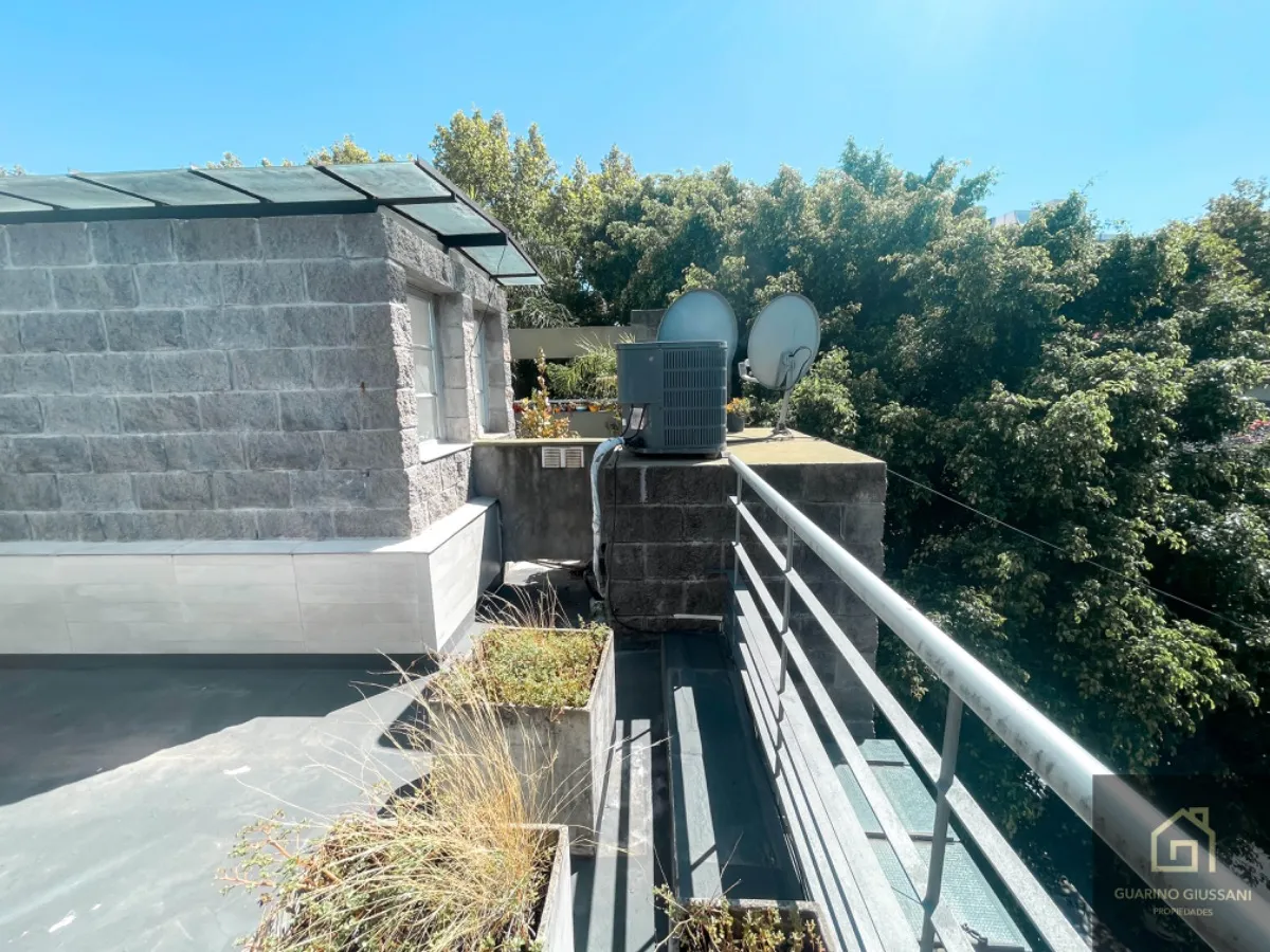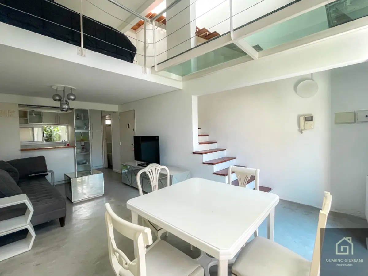 Departamento de 2 ambientes en dúplex, 1er piso por escalera. En la planta baja tiene living comedor con balcón corrido, cocina integrada remodelada a nuevo y toilette de recepción. En el entrepiso se encuentra el dormitorio con baño completo y placares en 2 sectores; en el último piso, terraza propia con vista abierta. Cuenta con calefacción por radiadores y split de aire acondicionado. Se alquila amoblado y equipado. El alquiler es de USD 900 por mes e incluye AYSA. No incluye EDENOR, Metrogas