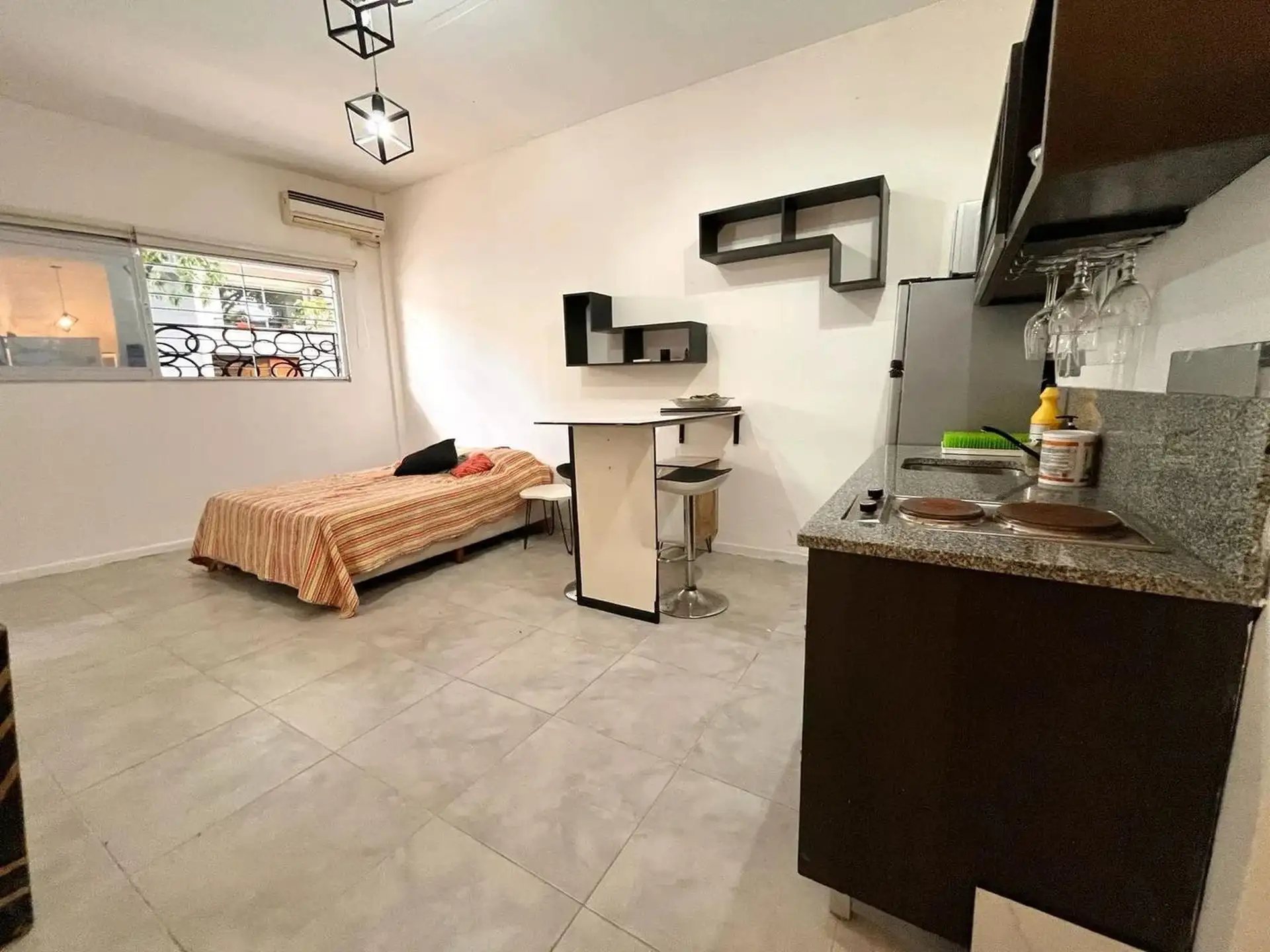 Monoambiente de 26 m² en planta baja al frente, apto profesional, con placard de interiores completos. Cuenta con cocina con hornallas por inducción y aire acondicionado instalado. El edificio dispone de terraza con parrilla y servicio de laundry. La modalidad paquete incluye agua, ABL y expensas; opción sin amoblar $700.000 por mes y opción amoblado $800.000 por mes, con seguro de caución y 1 mes de depósito.
