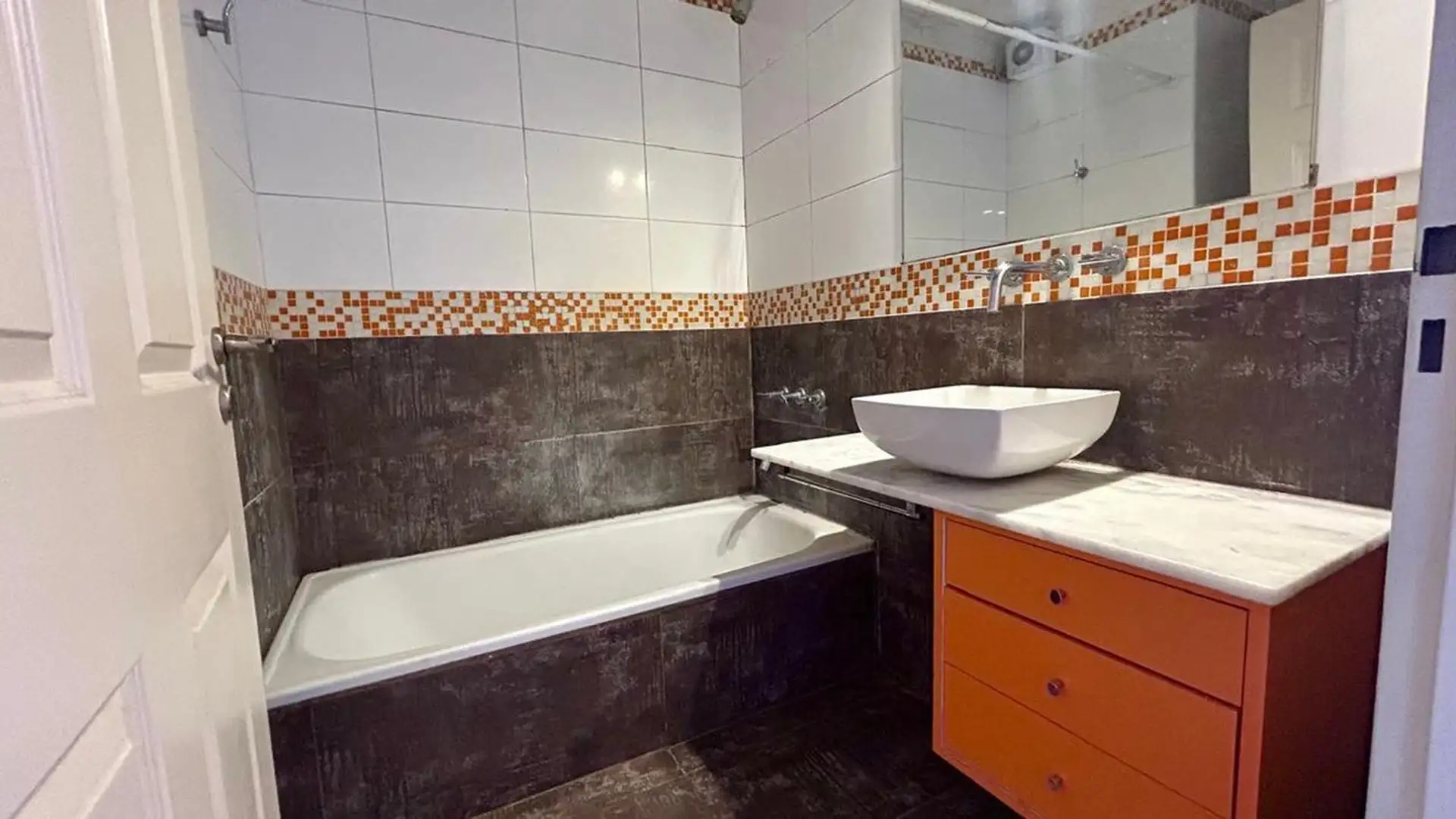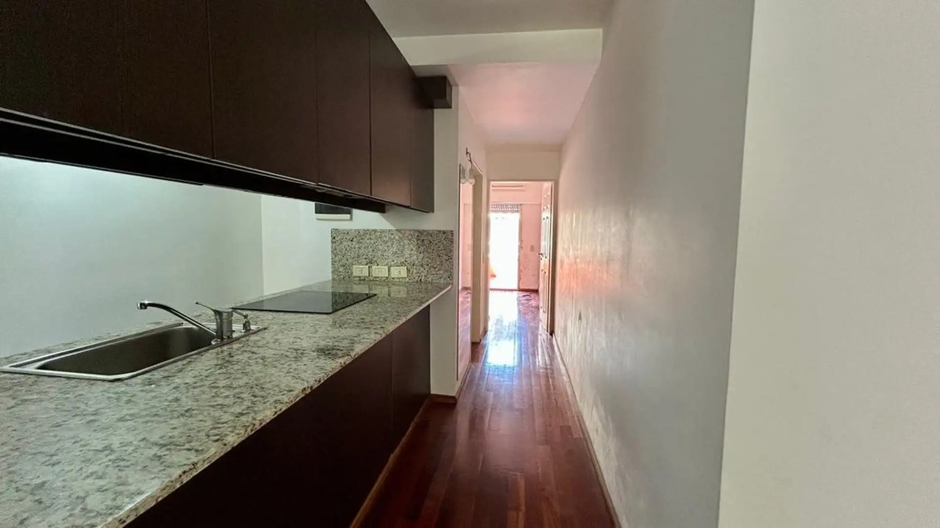 Departamento de 2 ambientes con 1 dormitorio, terraza y cochera (opcional). Cuenta con amplio living con balcón, dormitorio con placard y salida a la terraza, cocina integrada con lugar para instalar lavarropas y baño completo. Dispone de aire acondicionado en living y en dormitorio y puerta blindada. Cochera fija con acceso sencillo disponible por $ 100.000 adicionales. No se aceptan mascotas.