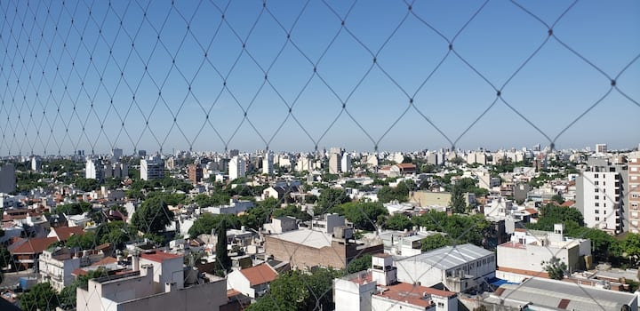 Departamento en Villa Pueyrredón, en el piso 13. El aviso menciona 45 minutos al centro en subte. El departamento tiene vista.