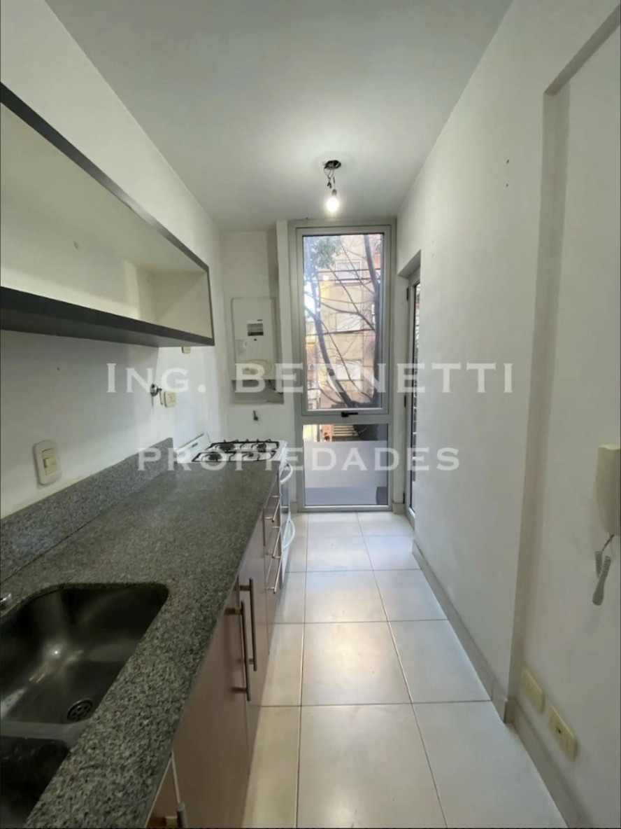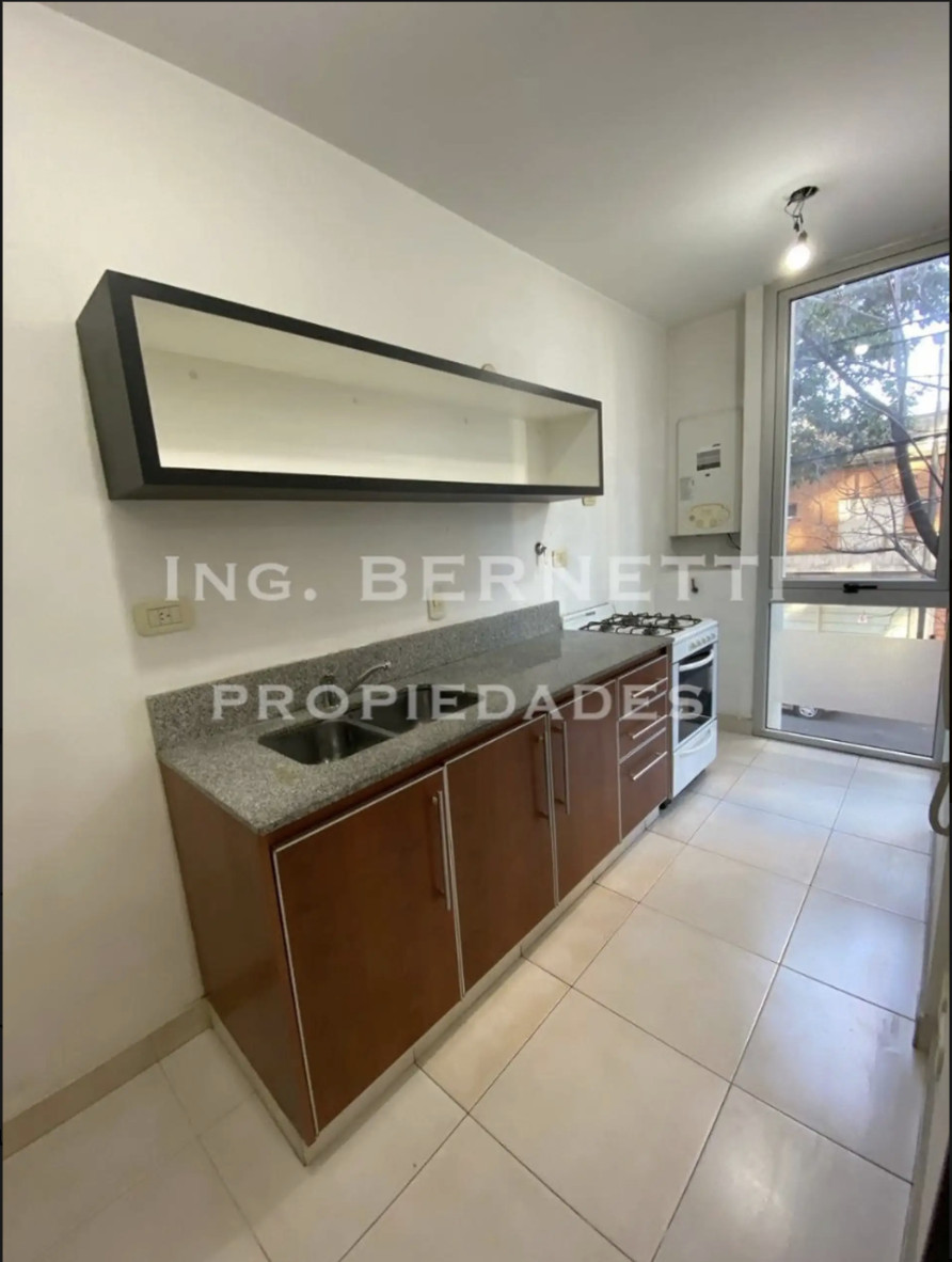 Departamento de 2 ambientes al frente, semipiso. Cuenta con 1 dormitorio, 2 baños y amplio balcón. Tiene losa radiante individual; estar-comedor con pisos de madera y ventanal hacia el balcón; toilette de recepción; cocina separada con muebles completos y conexión para lavarropas; dormitorio con placard empotrado y baño completo en suite. Edificio moderno; a metros de Av. Mosconi. Contrato por 2 años con actualización trimestral por IPC. Requiere garantía CABA o seguro de caución y demostración