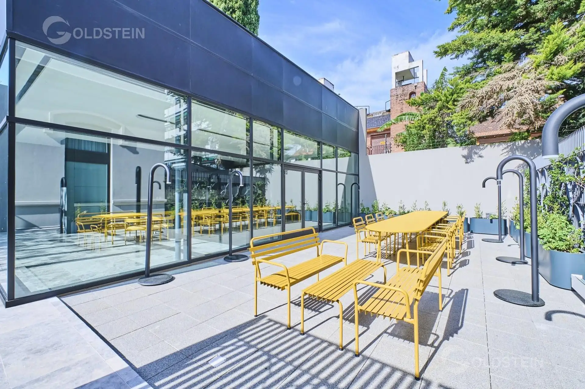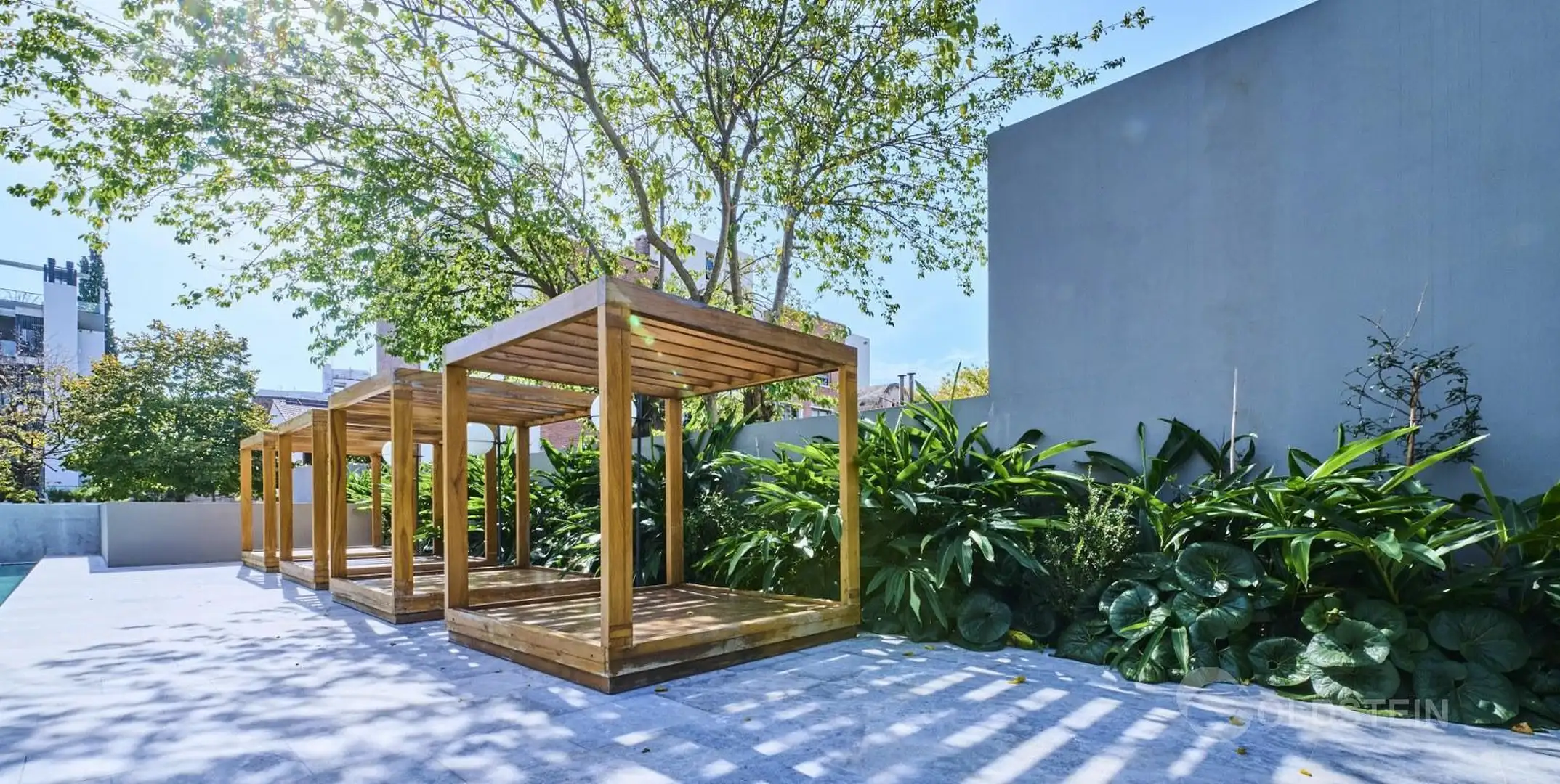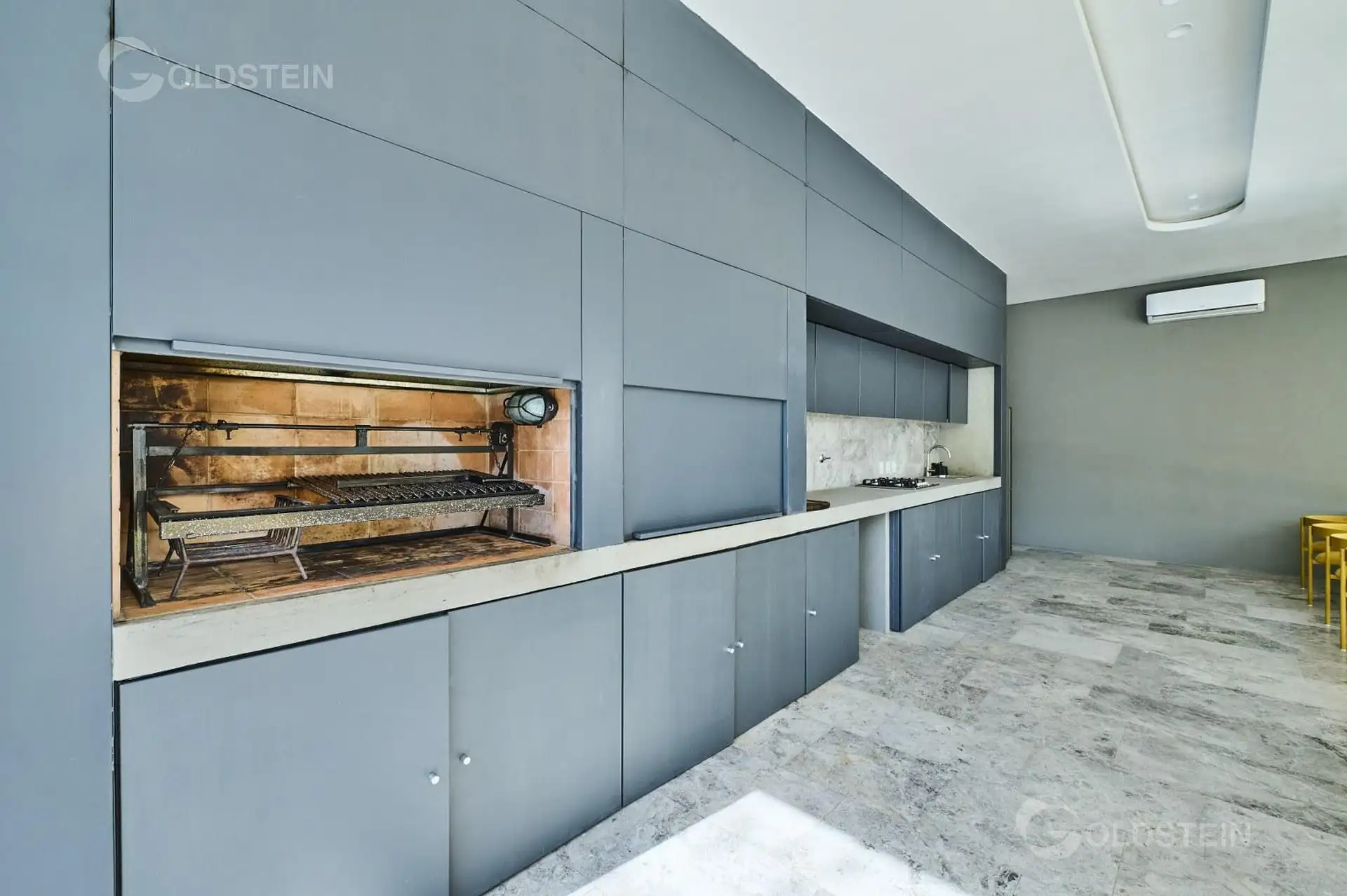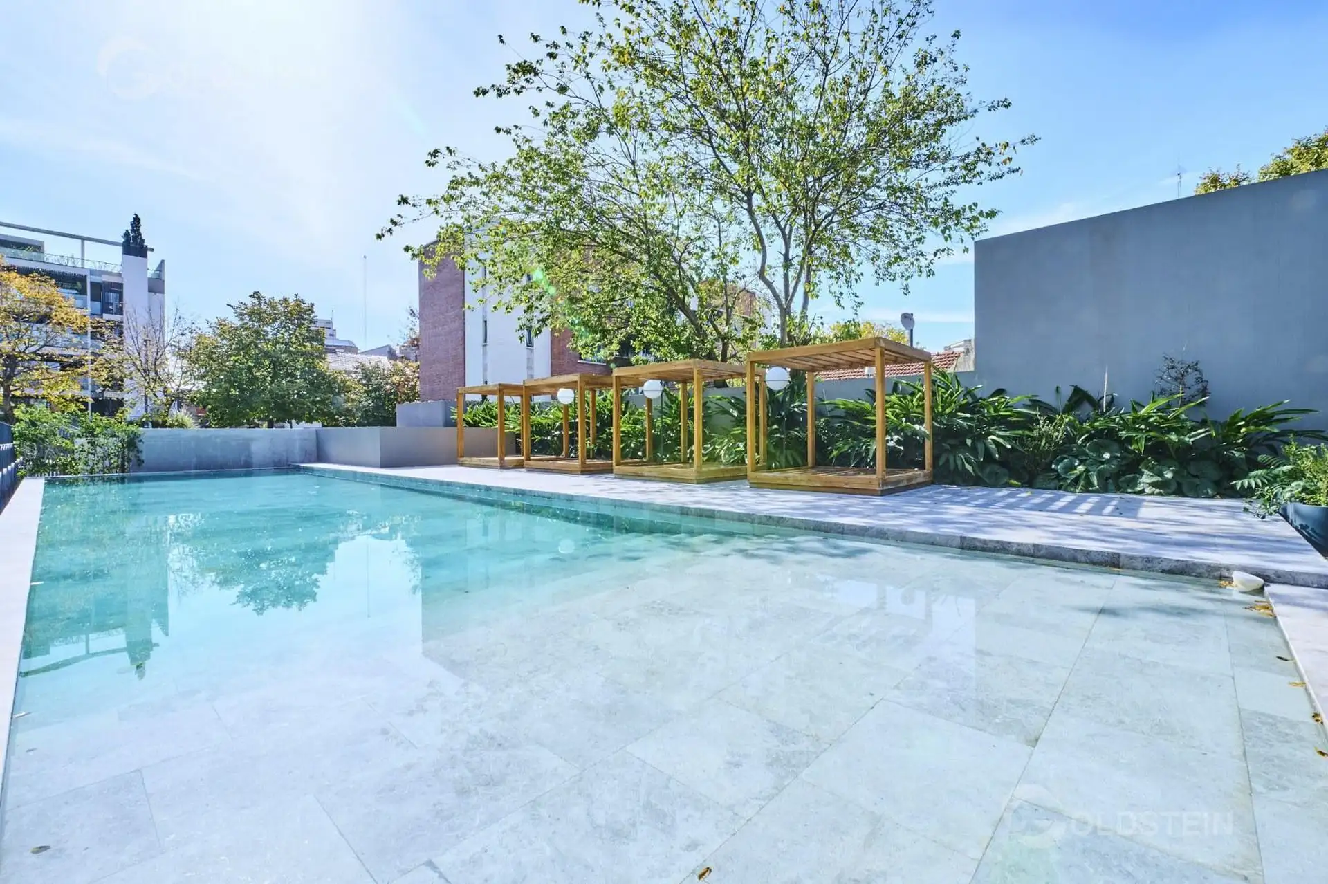 Departamento de 2 ambientes en alquiler con jardín privado y parrilla propia. Cuenta con 1 baño completo y 1 toilette; aire frío/calor y calefacción por piso radiante alimentada por caldera central a gas con colector propio, bypass y caudalímetro. La cocina tiene mesada de Corian, muebles bajo mesada y alacena, y portero visor. El edificio dispone de pileta descubierta con solárium, sector de parrillas, SUM, espacio para gimnasio, pileta cubierta climatizada, sauna y ducha escocesa, además de ba