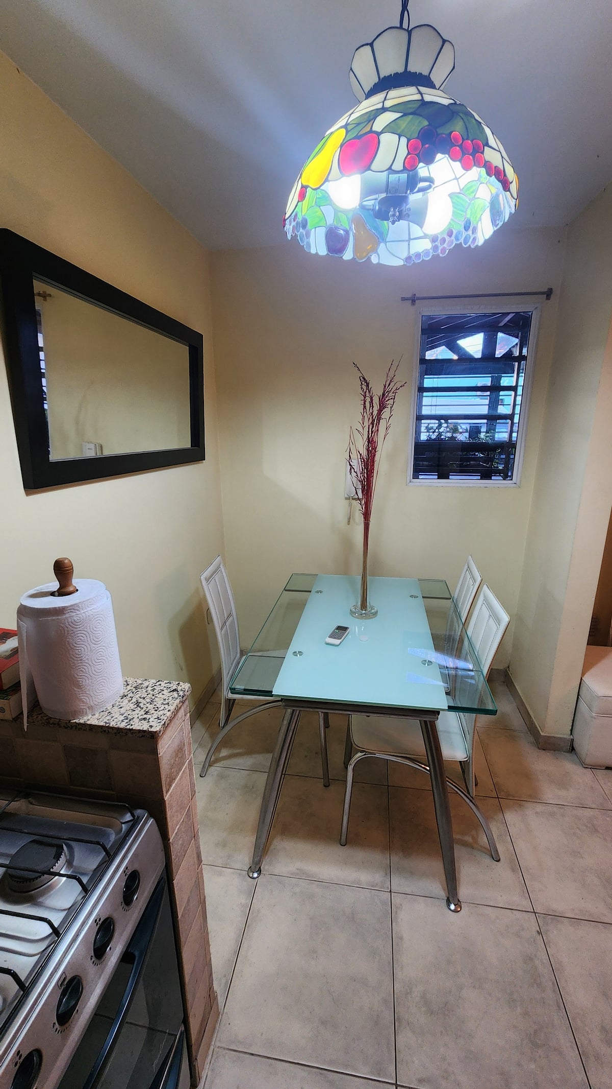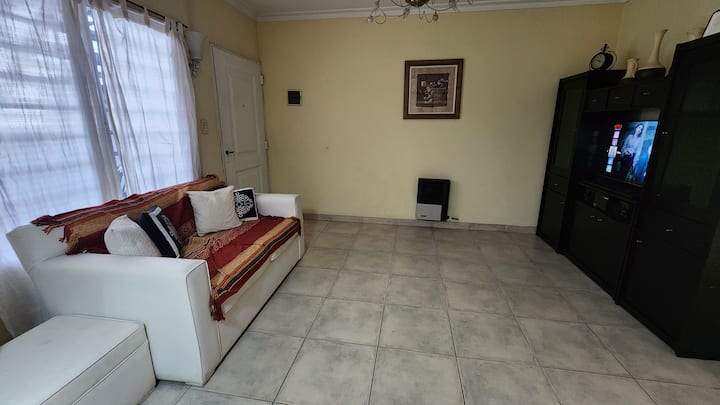 PH de 1 dormitorio con living y cocina integrada, 1 baño y un sector tipo quinchito. Incluye patio con parrilla y cochera en la entrada. Se indica espacio para el ingreso de un auto chico o mediano.