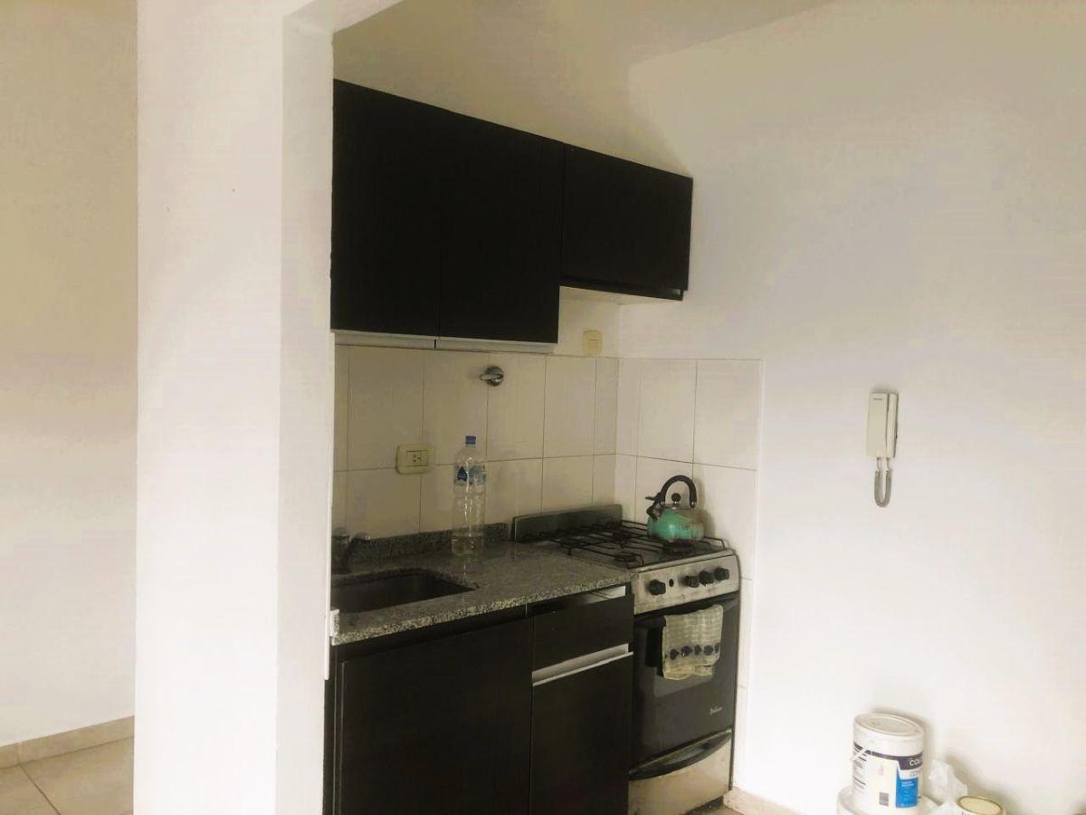 Departamento de 2 ambientes de primer piso por escalera, con balcón al frente. Dispone de vista abierta desde living comedor y dormitorio, con disposición al frente y balcón corrido. Cocina integrada con artefacto a gas y calefón; el dormitorio tiene vestidor y el living comedor cuenta con estufa de tiro balanceado. Baño completo. El edificio tiene piscina, solarium, jardín y parrilla en planta baja.