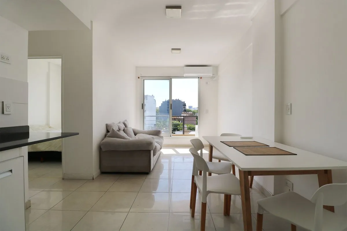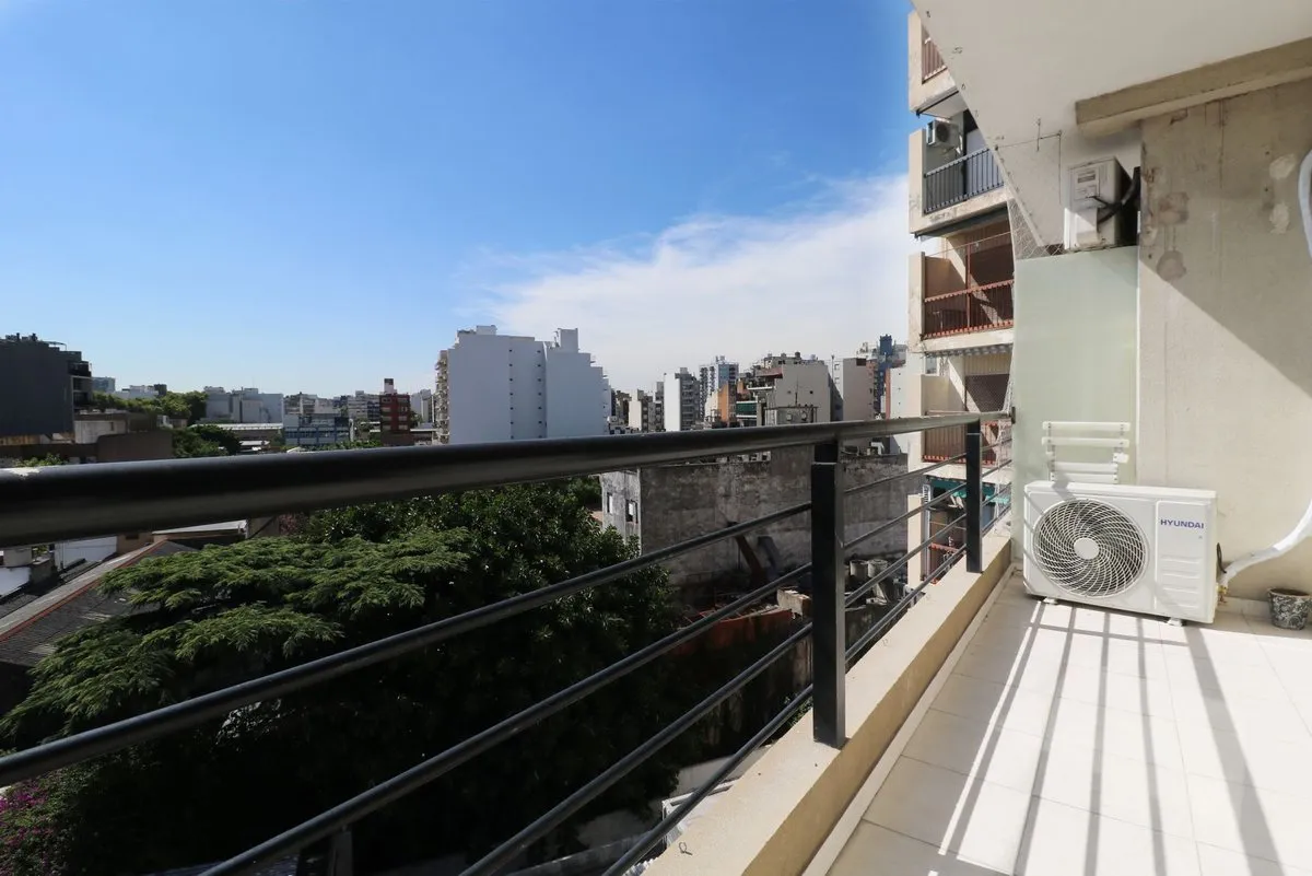 Departamento de 2 ambientes en 6° piso con vista abierta y arbolada sobre Av. Juan B. Justo, frente al Metrobus. Cuenta con living comedor con cocina integrada, dormitorio con buena ventilación y baño completo con bañadera. Dispone de balcón propio con vista despejada y el edificio tiene terraza de uso común. Se menciona que el inmueble tiene aproximadamente 13 años de antigüedad, es apto profesional y apto mascotas, y existe la posibilidad de alquilarlo amoblado.