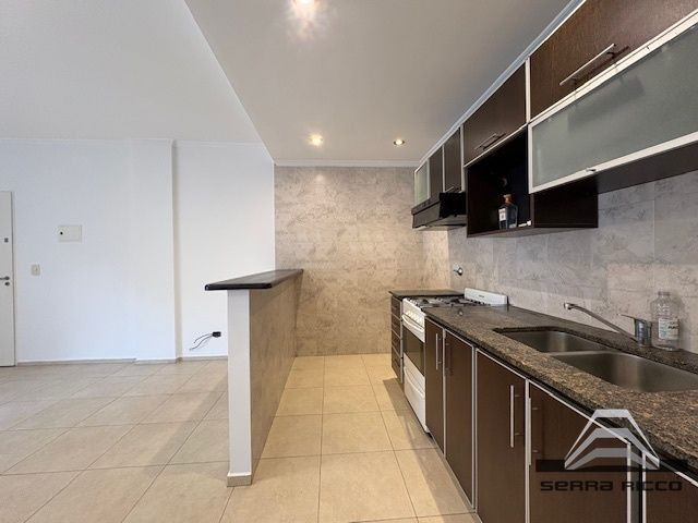 Departamento de 2 ambientes de 44 m² en un cuarto piso lateral, con orientación norte. Incluye cocina con amoblamientos, lavadero incorporado y barra desayunadora. Cuenta con baño completo con placard, dormitorio con placard y estufa tiro balanceado, además de aire acondicionado y calefacción. Tiene portero visor, servicios de agua corriente, desagüe cloacal y gas natural, y cochera semicubierta. Expensas: AR$133.000; antigüedad: 10 años.