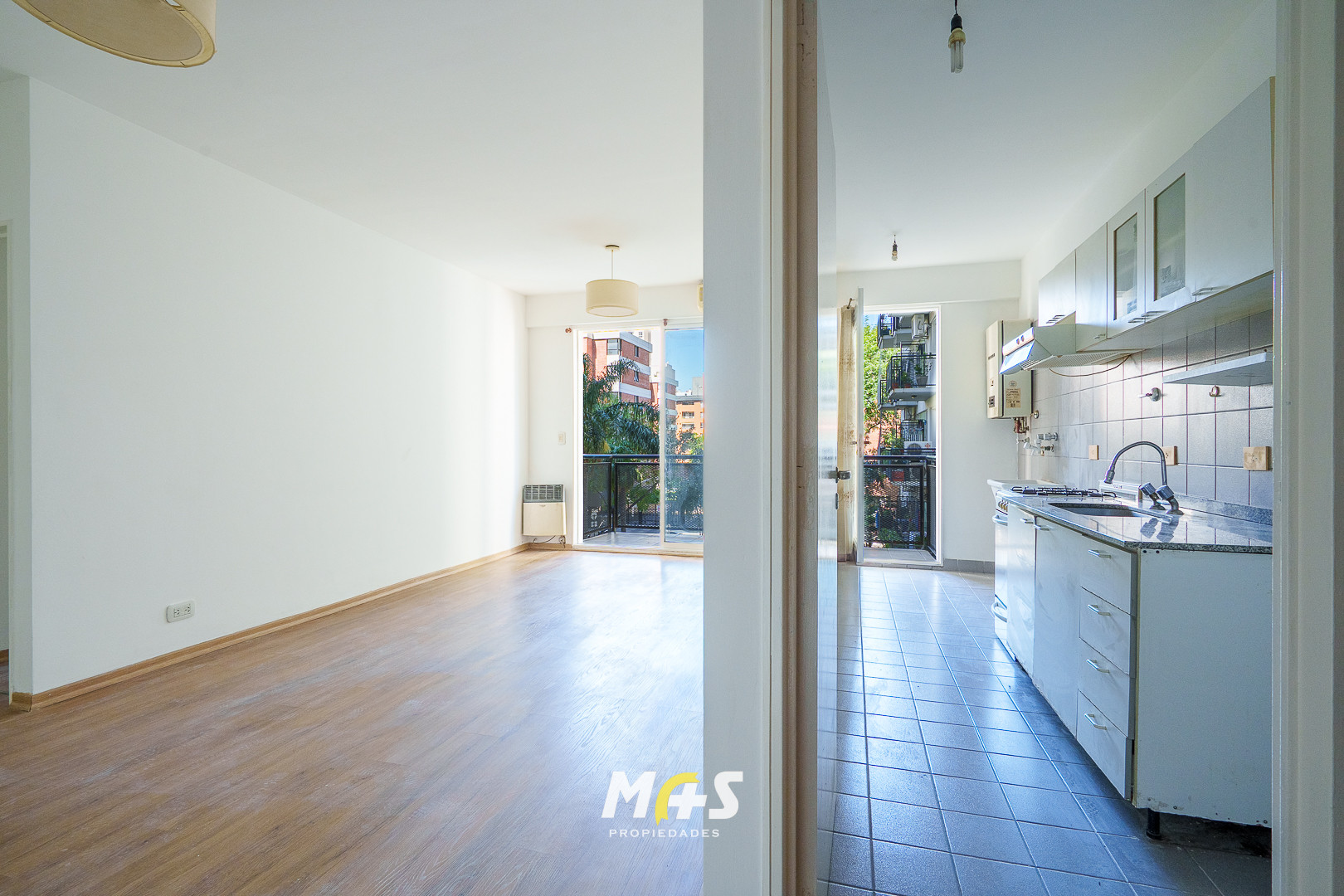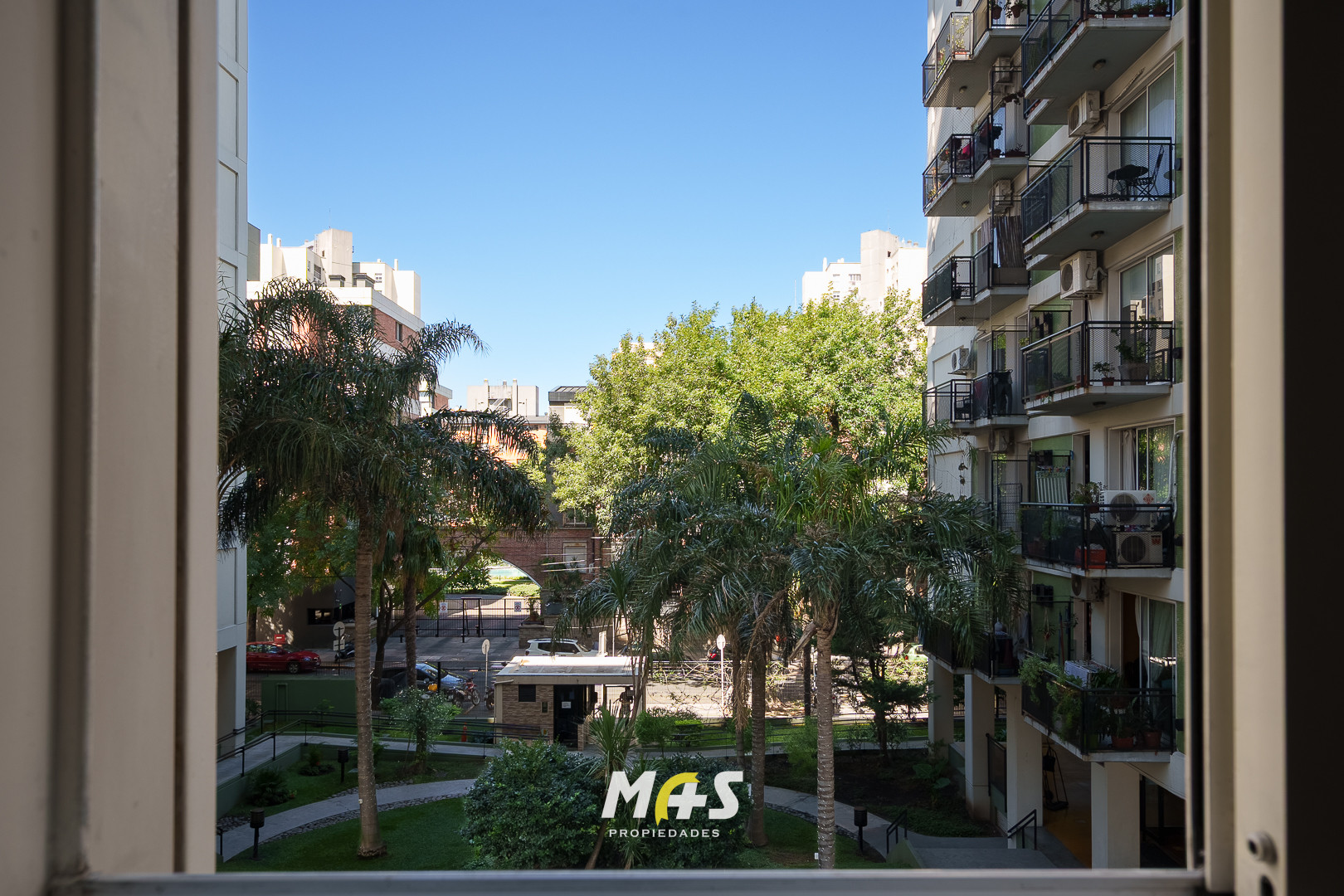 Departamento de 2 ambientes en el Complejo Los Naranjos, en un segundo piso. Cuenta con living de 6 x 3, dormitorio con placard de 3 x 3.3 y balcón con vista abierta; cocina independiente de 4.5 x 1.5 con conexión para lavarropas integrada. El baño es completo. El complejo ofrece vigilancia 24 horas con acceso controlado, SUM, solarium, sector de juegos, canchita de fútbol y grupo electrógeno. Expensas $ 160.000 aprox. y Aysa $ 25.000 aprox.; se requiere garantía propietaria o seguro de caución,