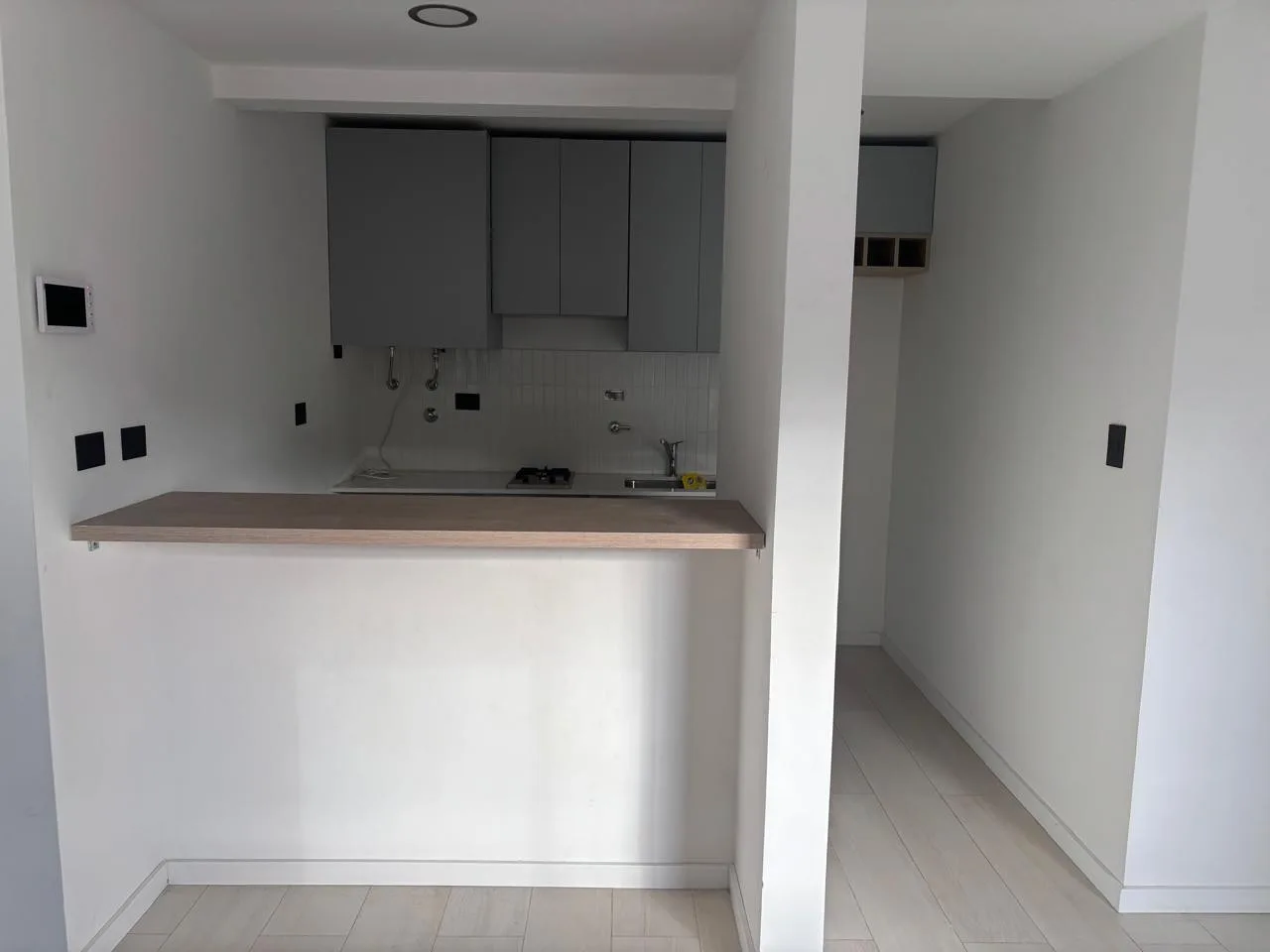Departamento monoambiente de 1 ambiente en Villa Santa Rita, con muebles bajo mesada y alacena, anafe, termotanque eléctrico y estufa tiro balanceado. Cuenta con baño completo, balcón y preinstalación para aire acondicionado. El edificio tiene 2 SUM, solárium, pileta y gimnasio, con expensas bajas.