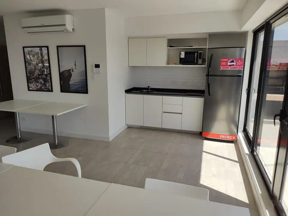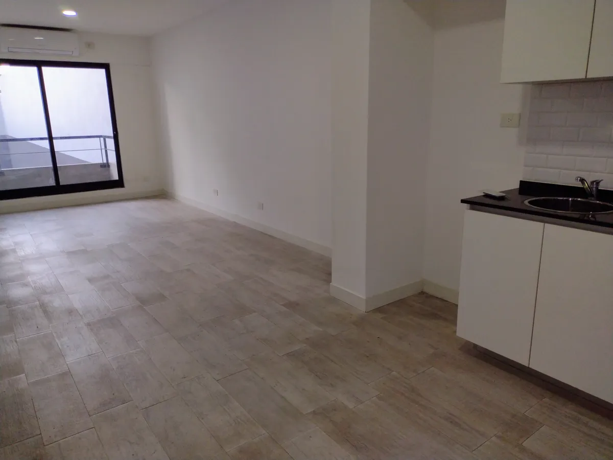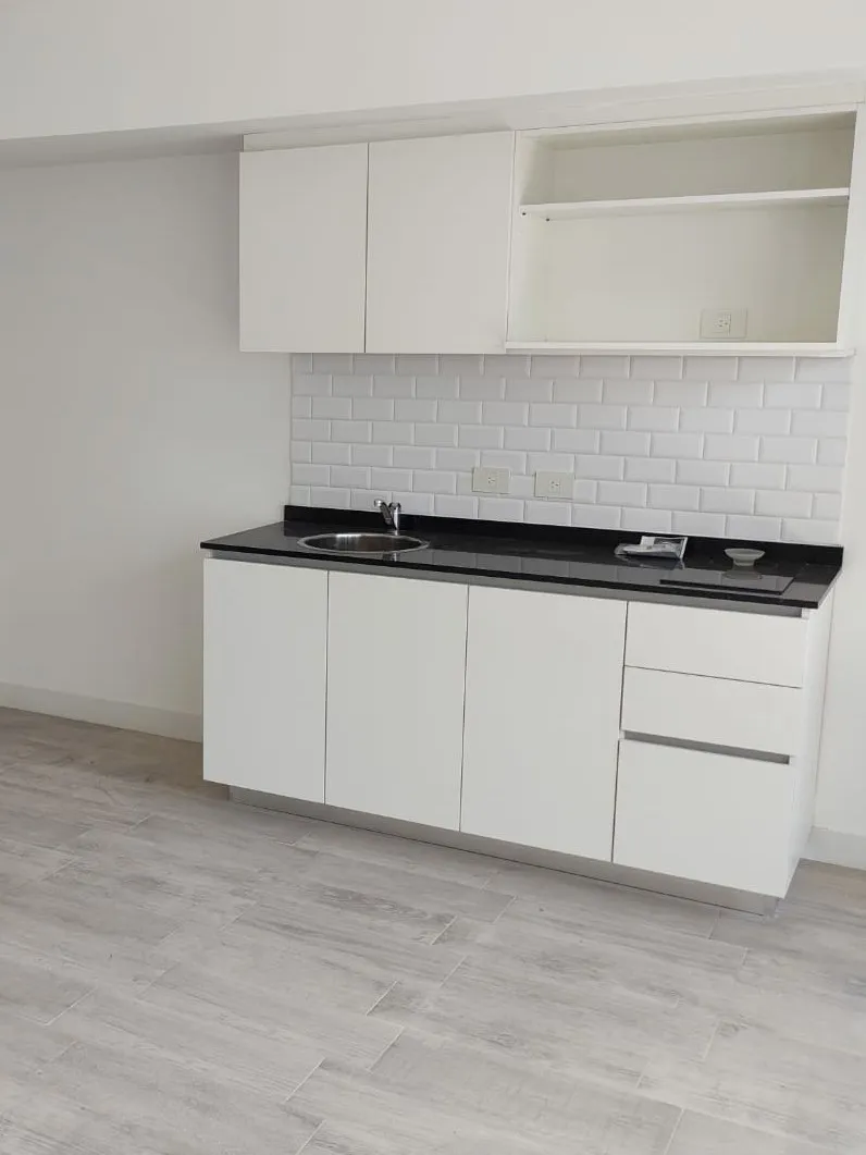 Monoambiente de 1 ambiente en Villa Santa Rita, en 1er piso contrafrente, con balcón. Recién pintado, con aire frío/calor, ventanas con cortinas black-out y cocina kitchenette con espacio de guardado, además de baño completo. El edificio tiene ascensor, solárium, terraza con parrilla, SUM, vigilancia y laundry con máquina de lavado y secado automático. El alquiler es de $600.000 con ajuste trimestral por IPC; expensas aproximadas de $140.000 e incluye el resto de los servicios, excepto la luz. P
