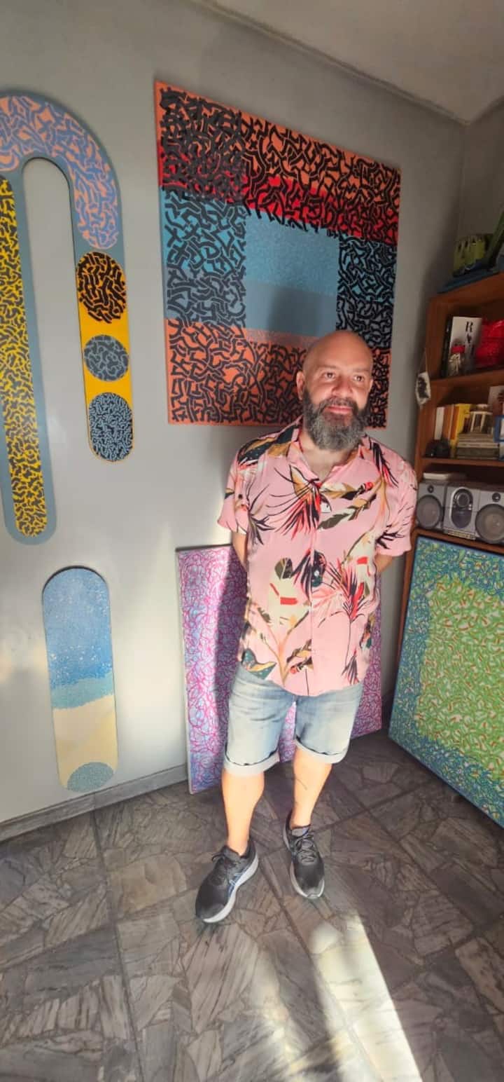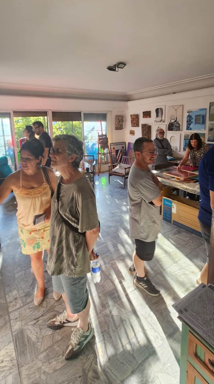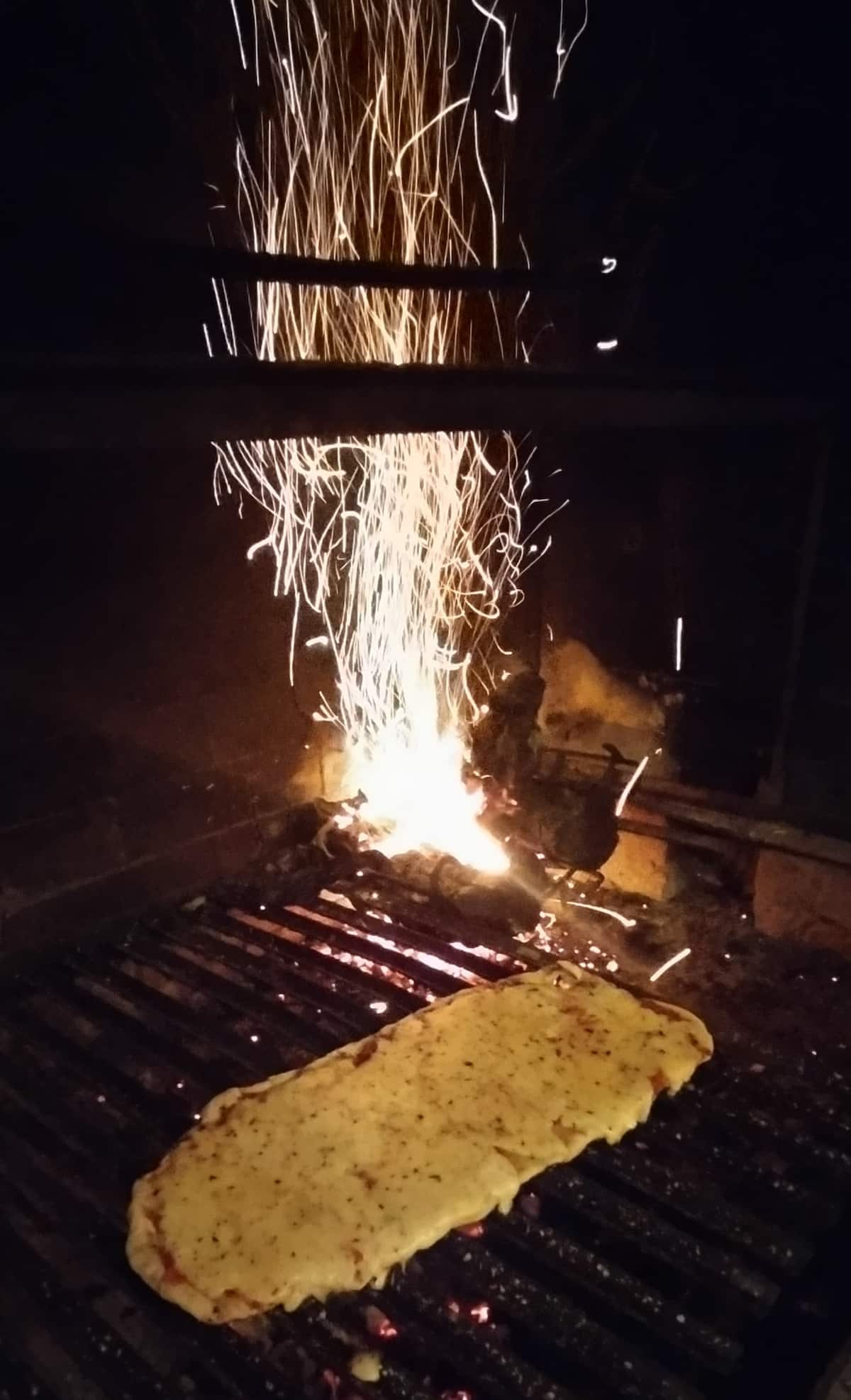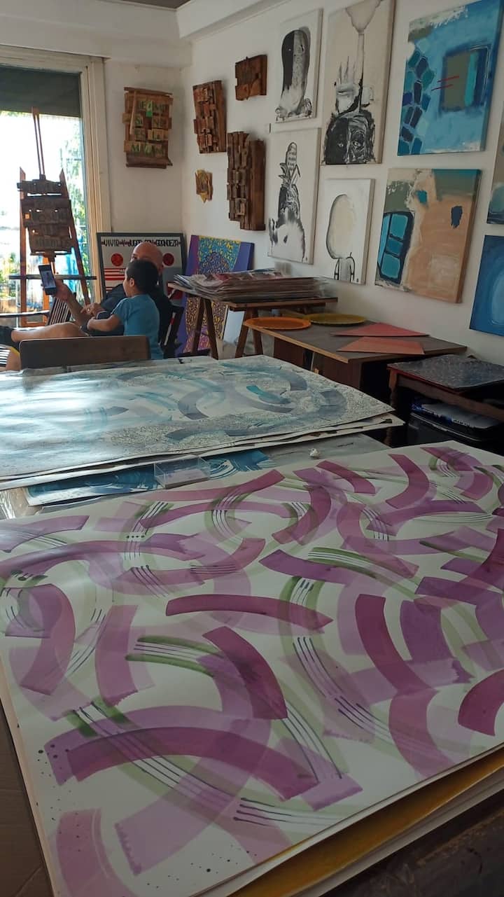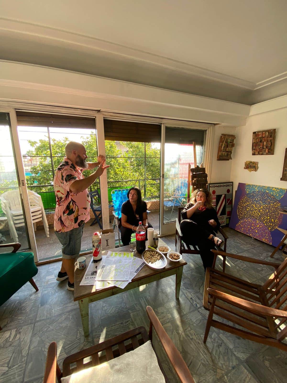 El aviso describe un espacio para experiencias de arte y gastronomía en Villa Santa Rita. Se menciona la oferta de pizzas a la parrilla y cerveza, con música y un entorno con obras de arte.