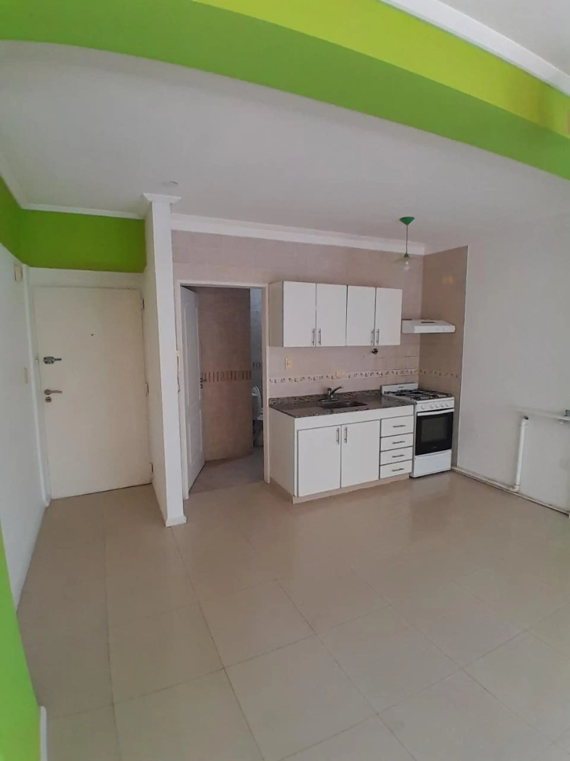 Departamento monoambiente al frente. Cuenta con ambiente con aire acondicionado, balcón a la calle con reja, cocina integrada con conexión para lavarropas y baño completo. Expensas bajas. Servicios: cloacas y gas.