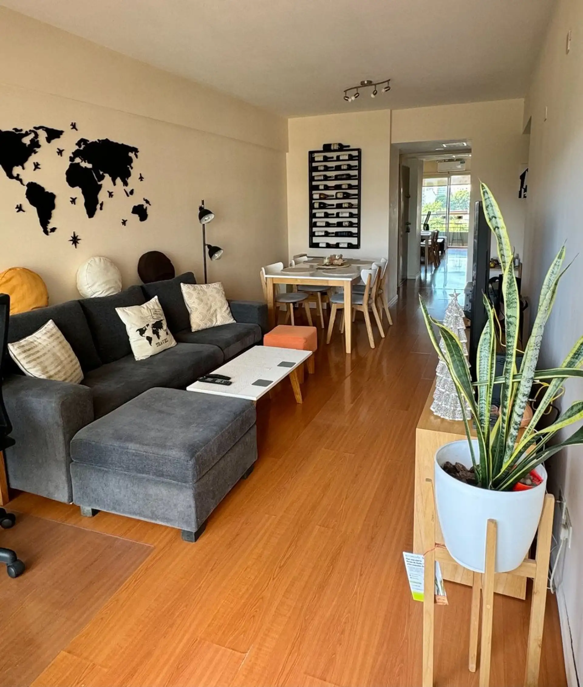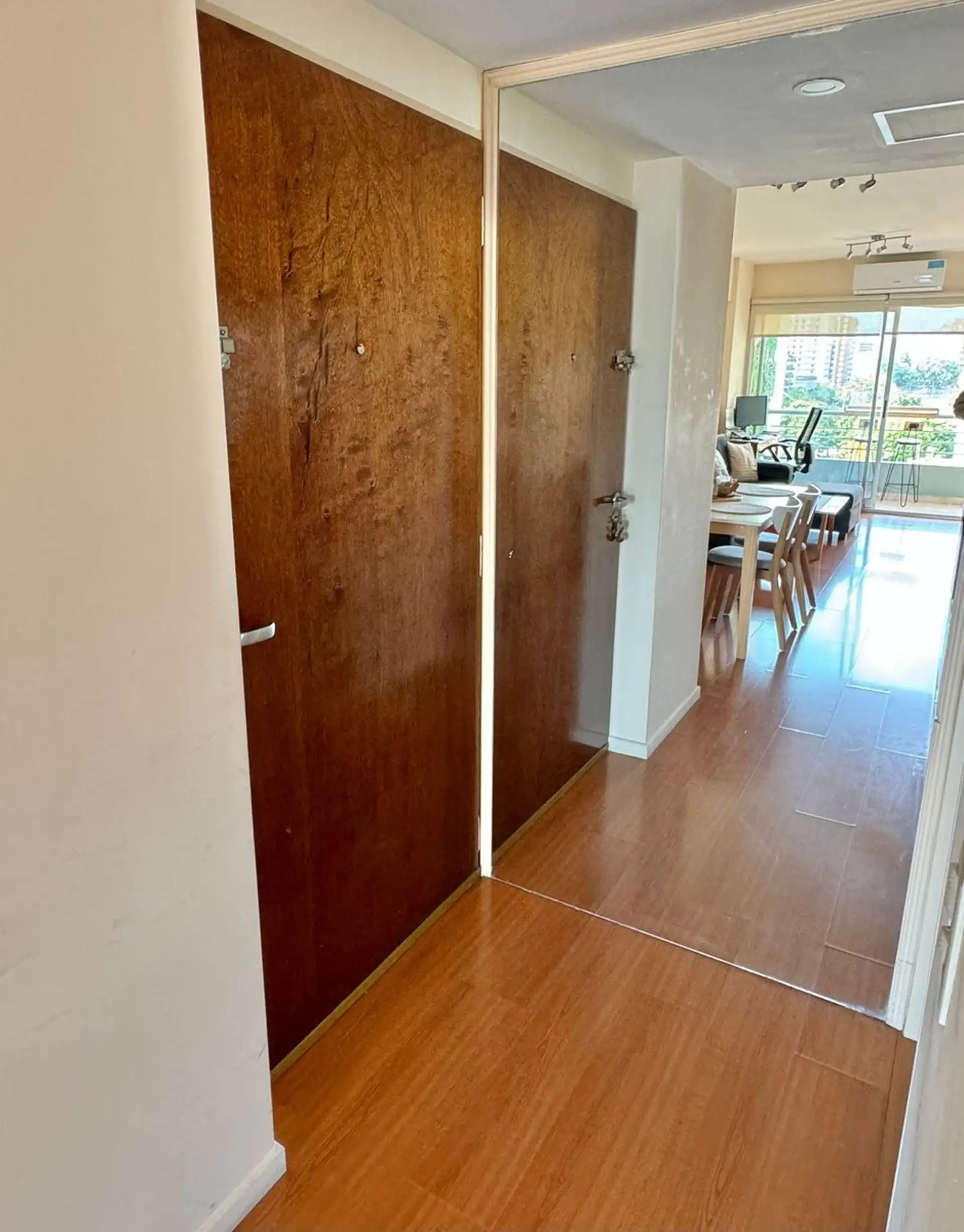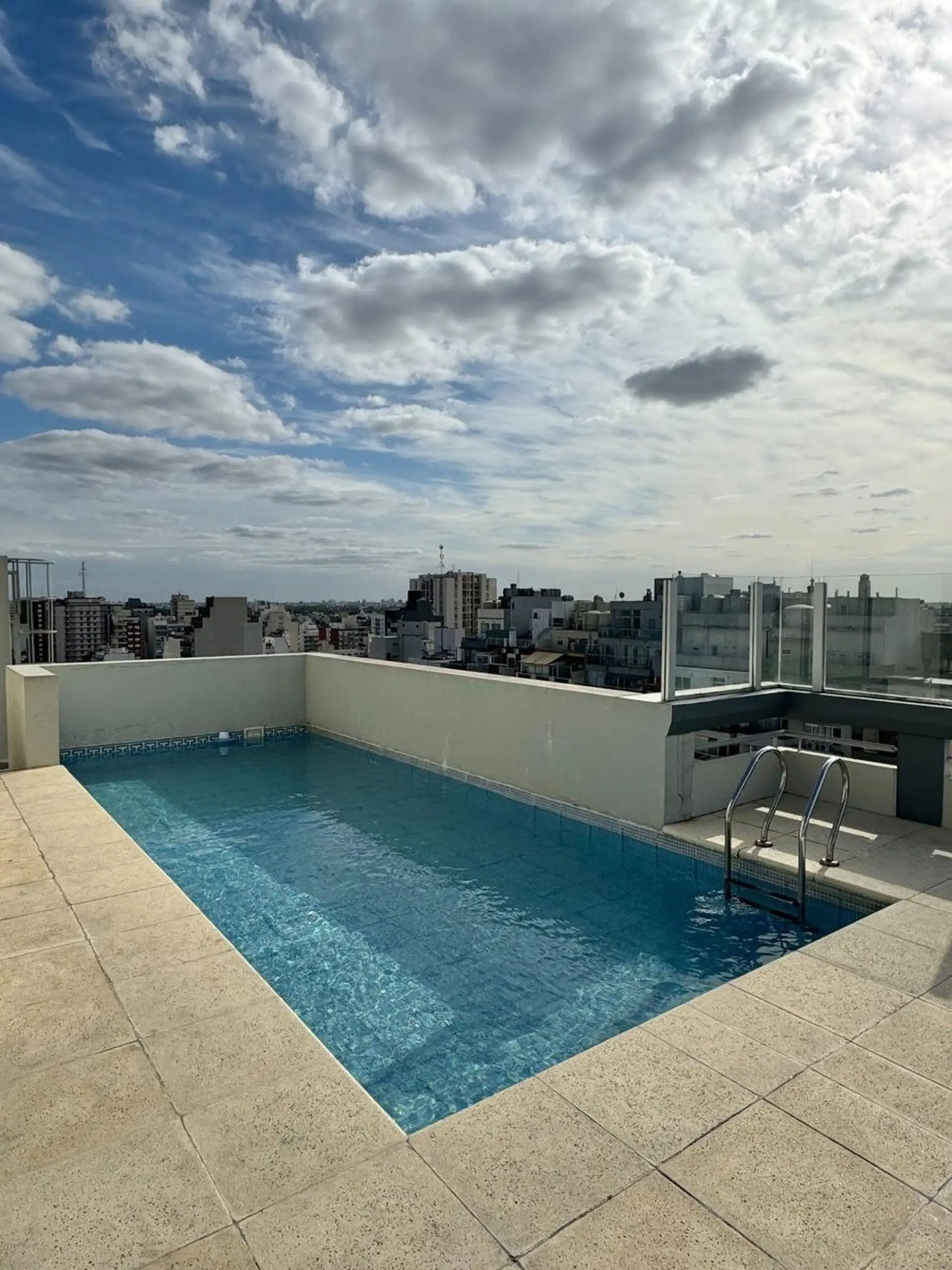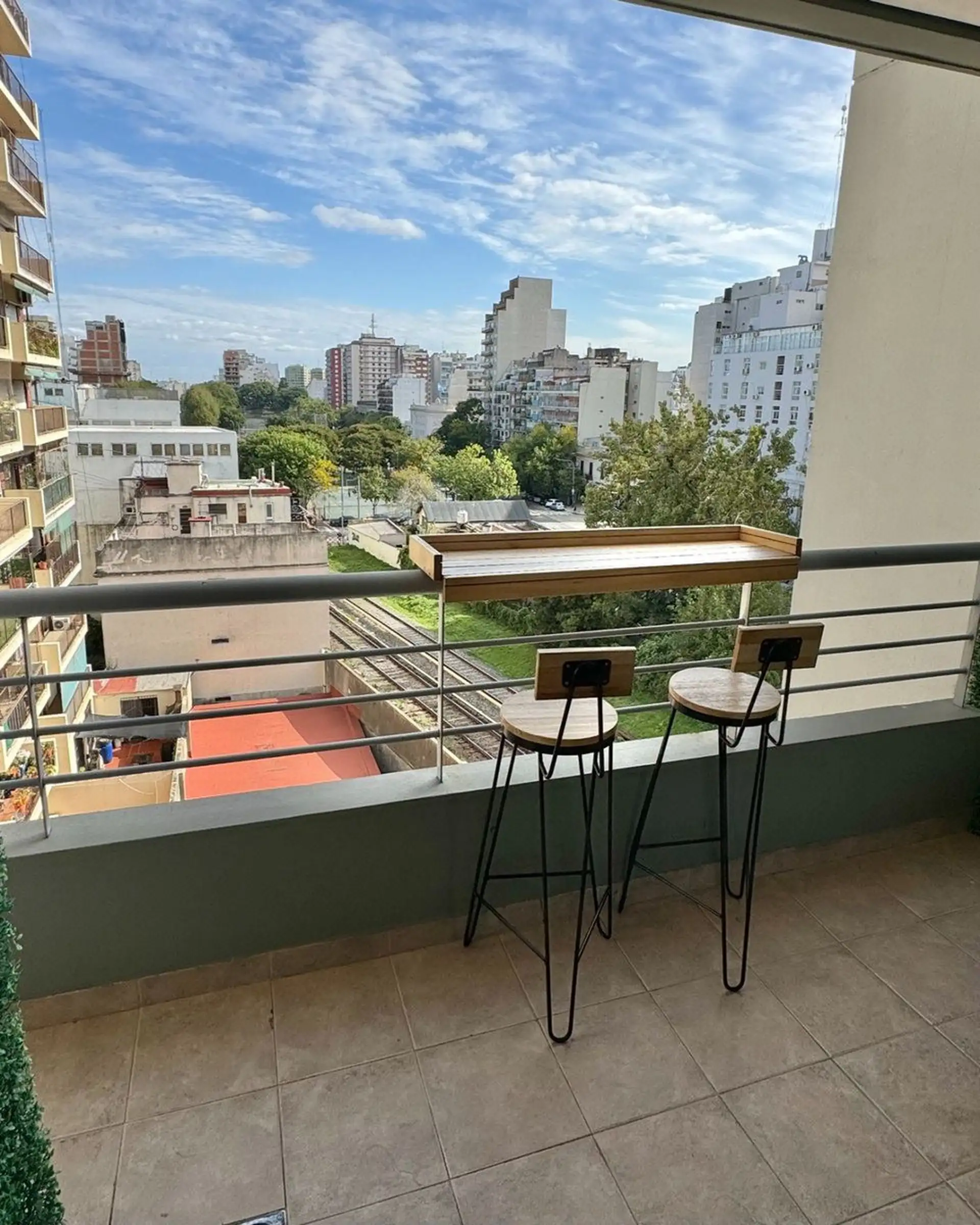 Departamento de 2 ambientes de 54,38 m² totales, con 49,35 m² cubiertos y 5 m² semicubiertos de balcón, en el 6to piso contra frente. Orientación oeste y 100% amoblado. Living/comedor con aire acondicionado F/C; dormitorio con balcón, placar completo y aire acondicionado F/C. Cocina completa con lavadero independiente, baño completo con ventilación, calefacción por losa radiante y caldera dual. El edificio (15 años de antigüedad) cuenta con pileta, SUM, parrilla y 2 ascensores.